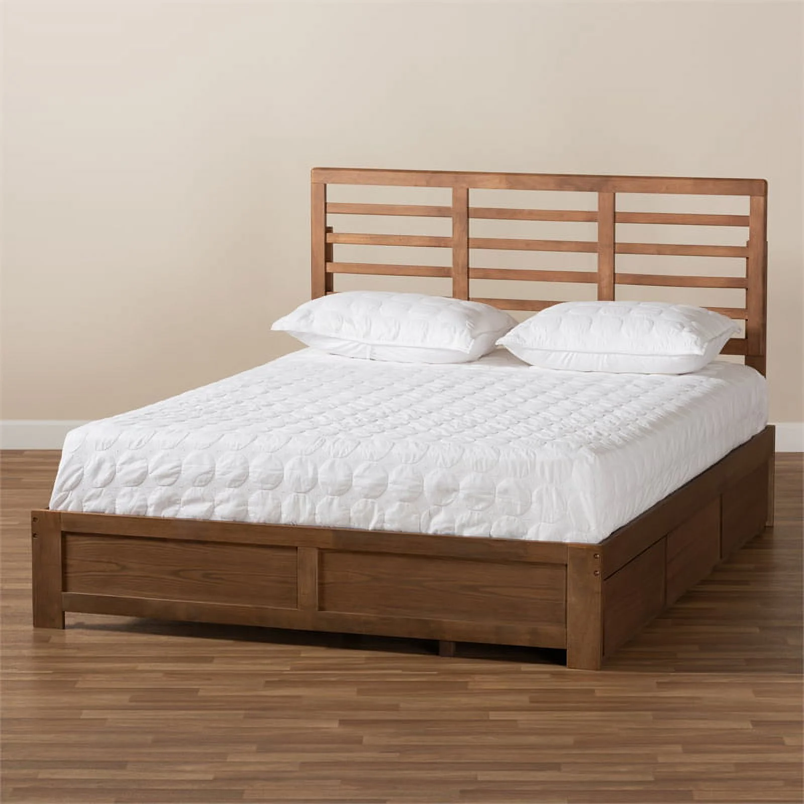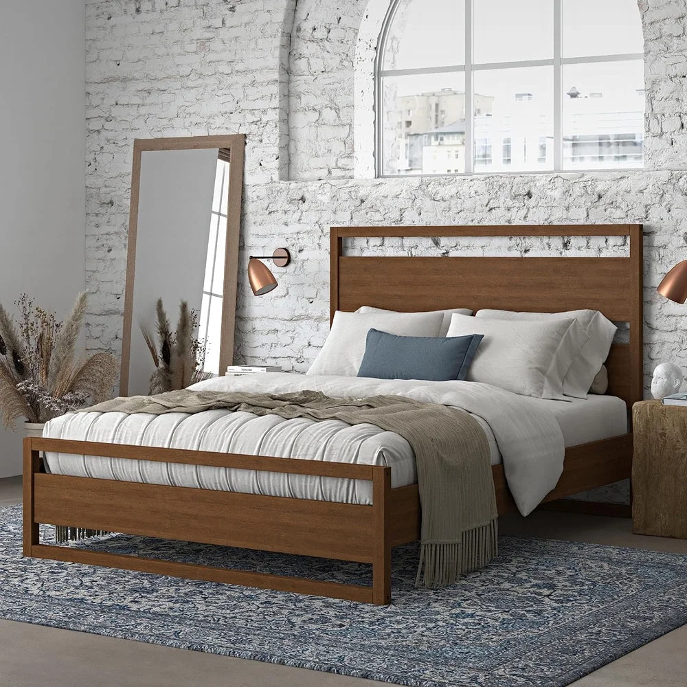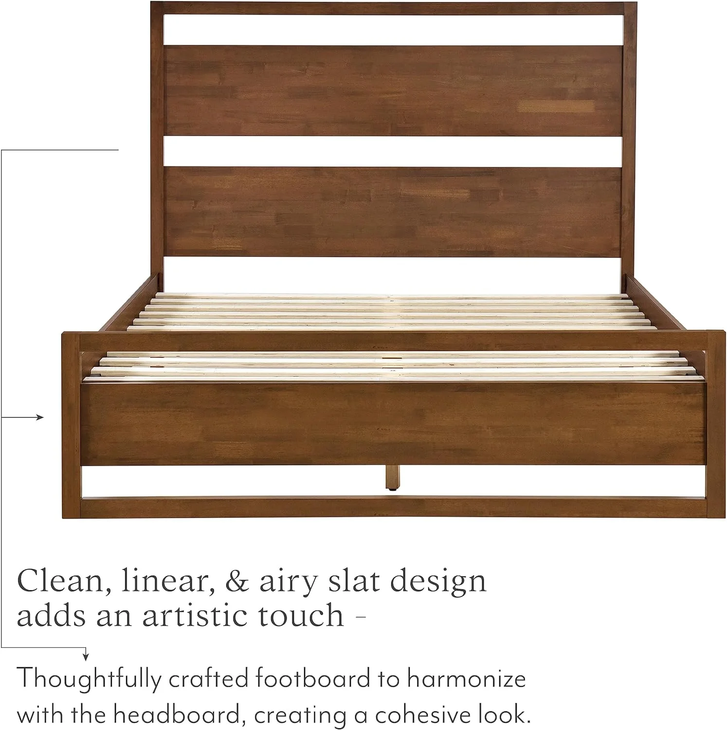 78.5" Minimalistic Solid Pine Construction Wood Platform Bed with Headboard Walnut