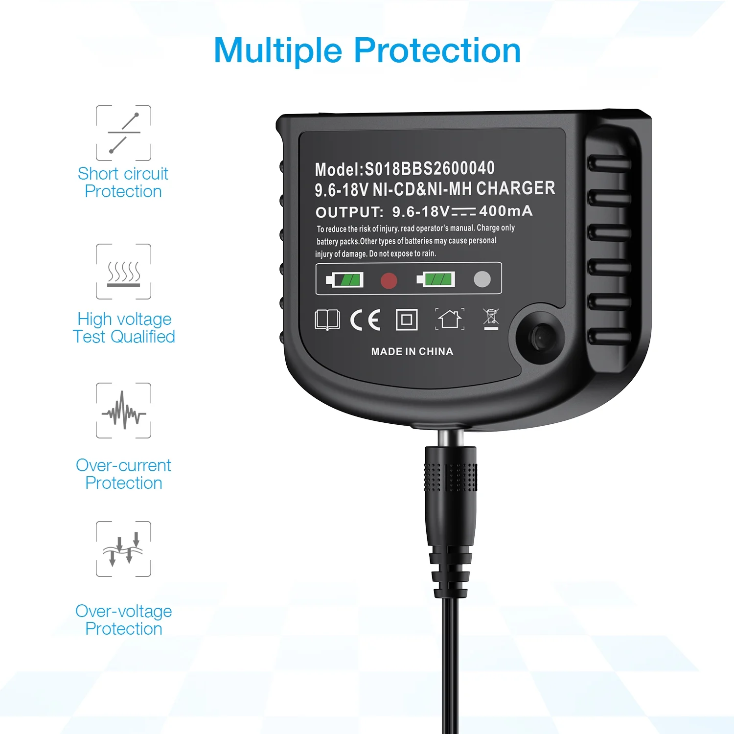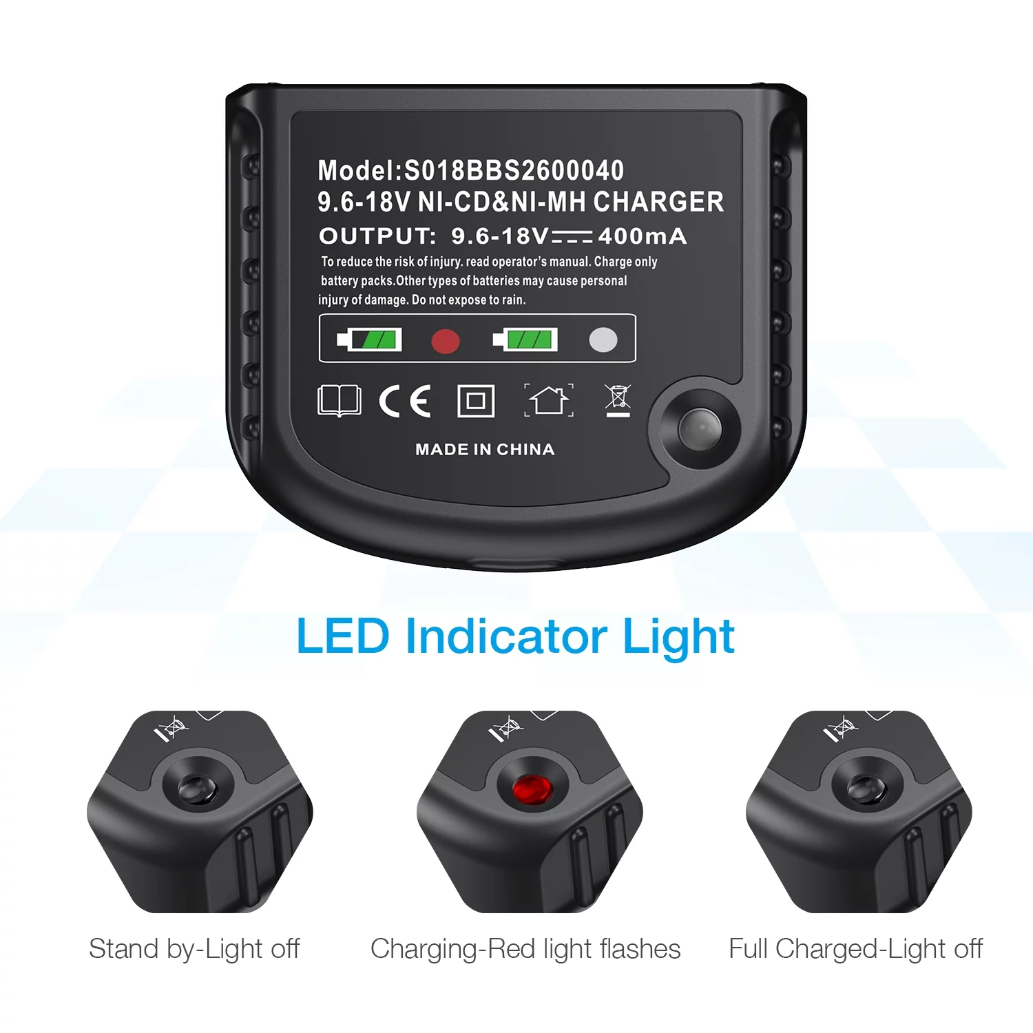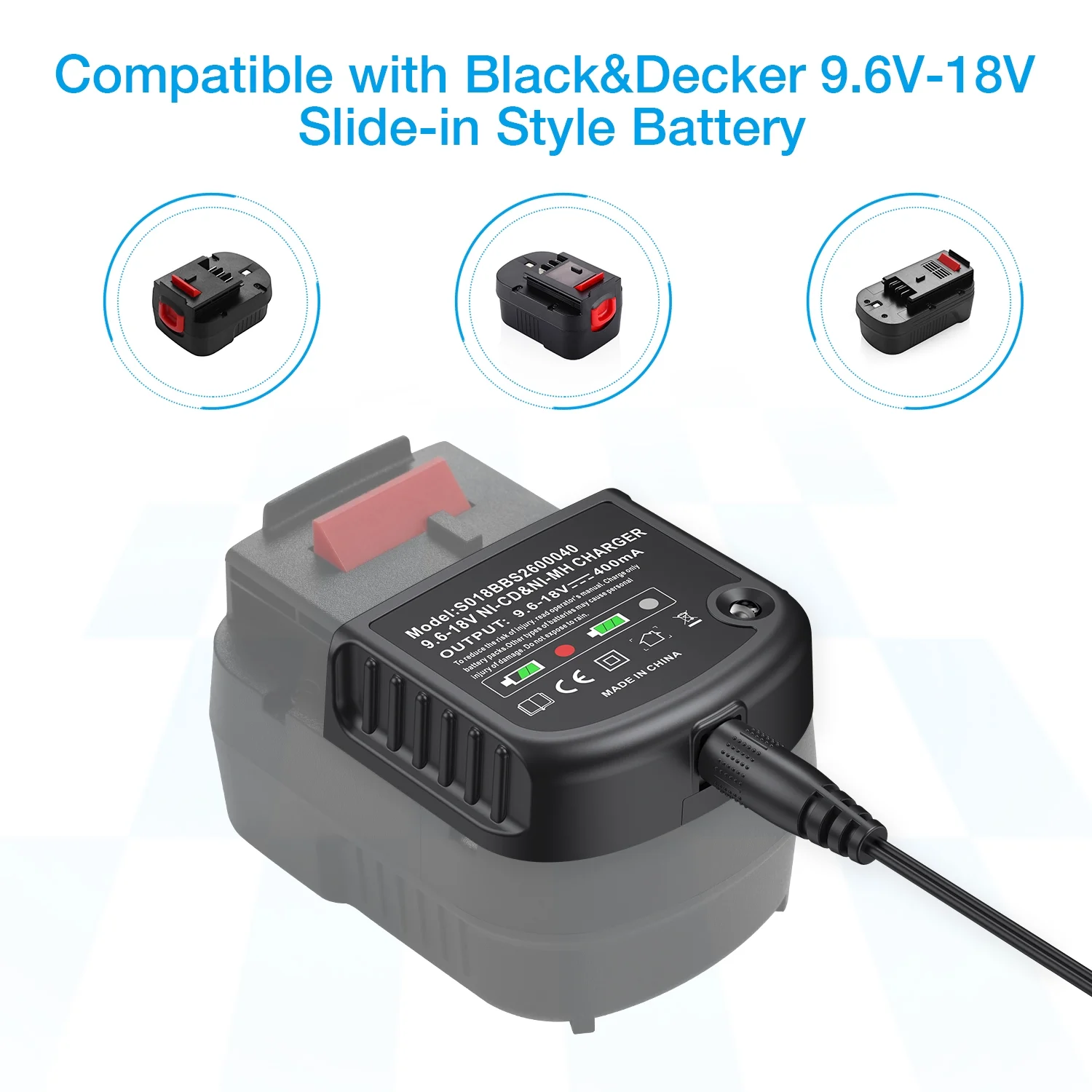 Battery Charger for Black & Decker 9.6V-18V Power Tools Ni-CD & Ni-Mh Battery