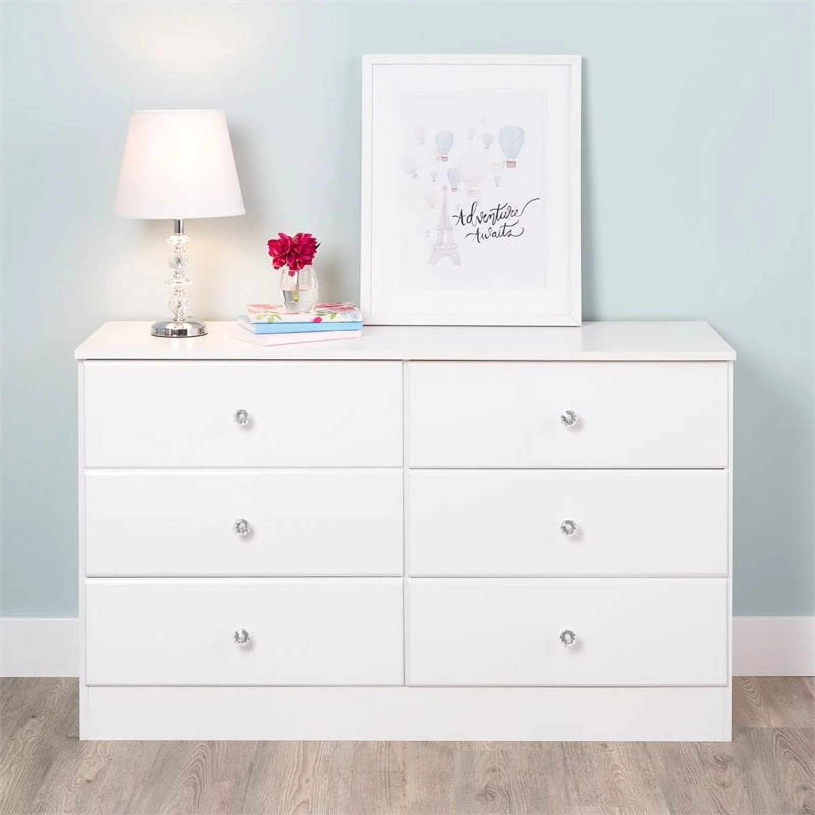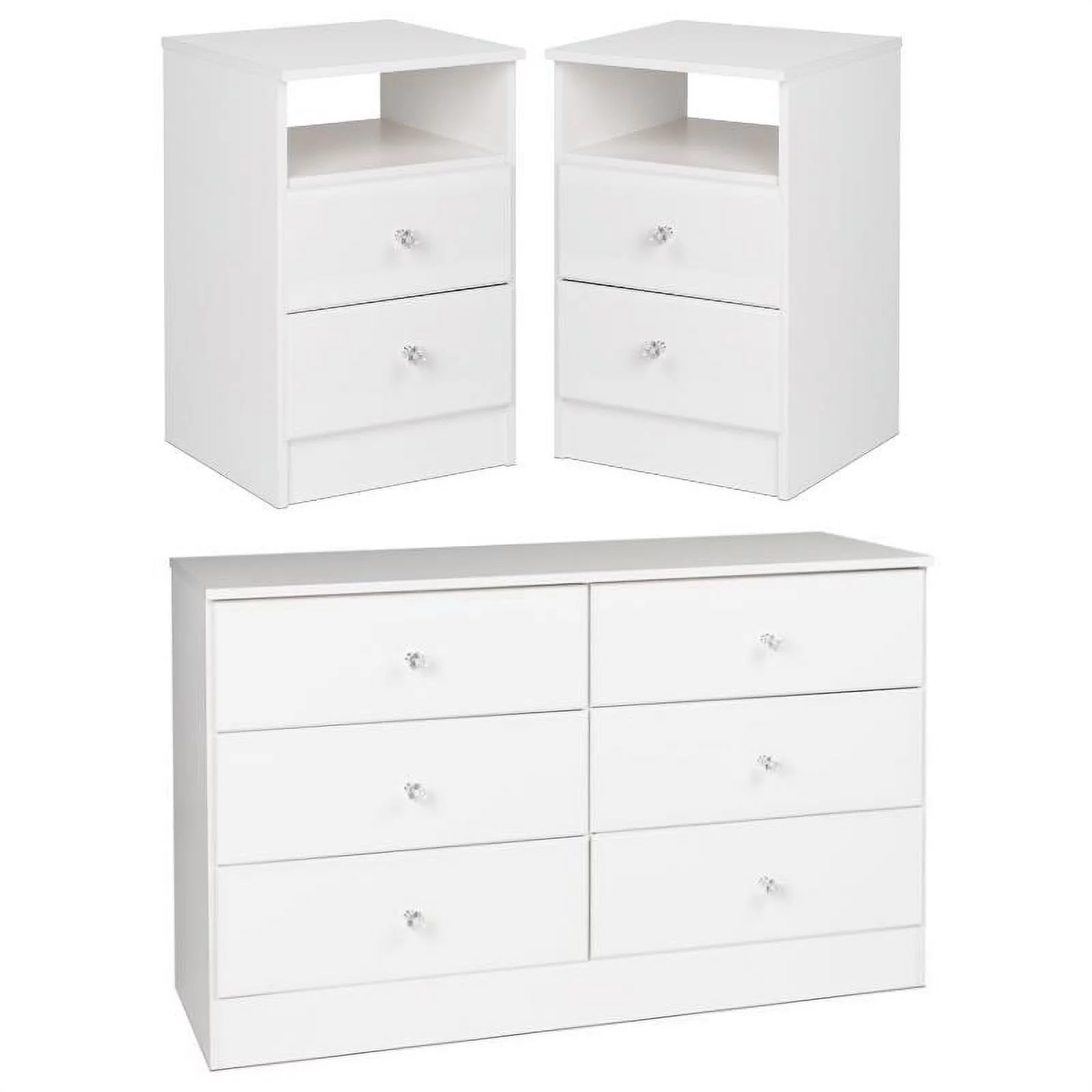 Home Square 3-Piece Set with 2 Nightstands and 6 Drawer Double Dresser in White