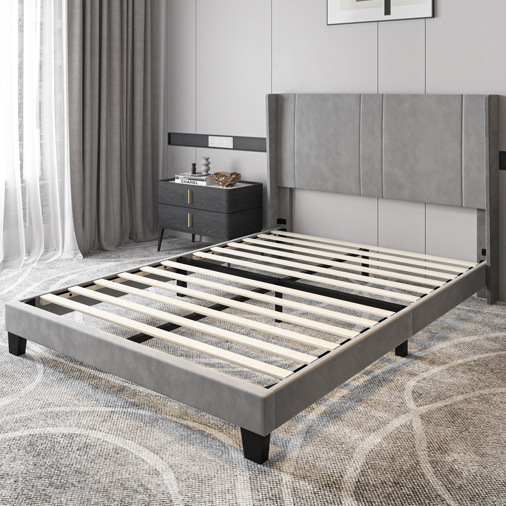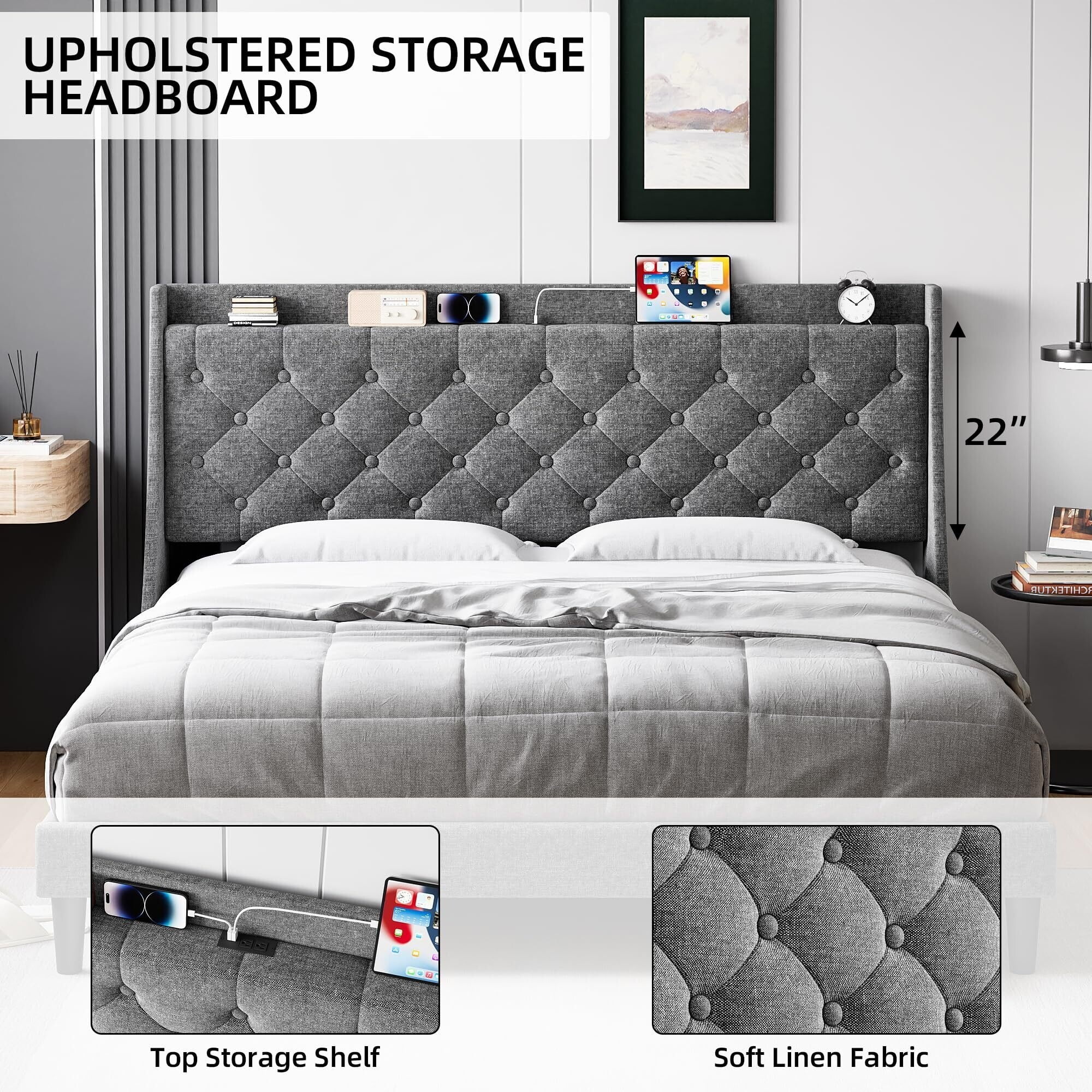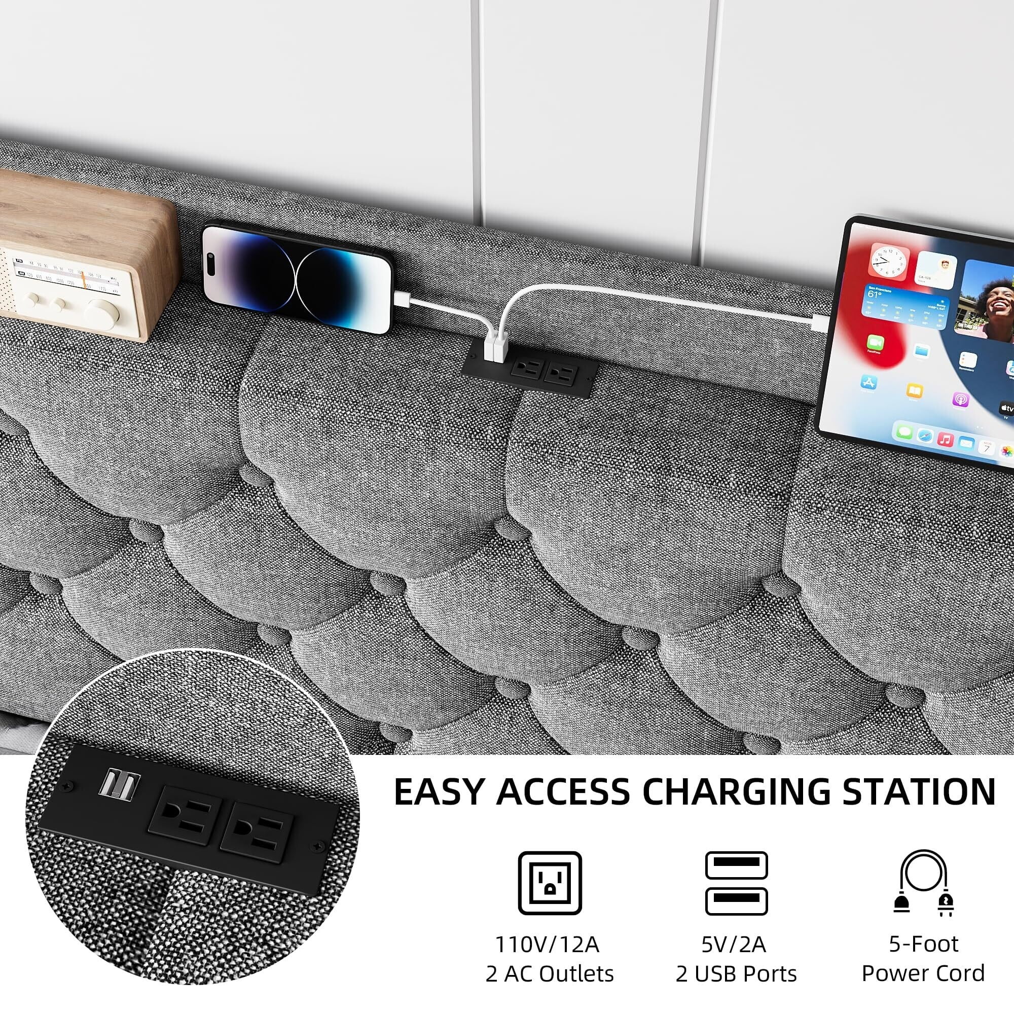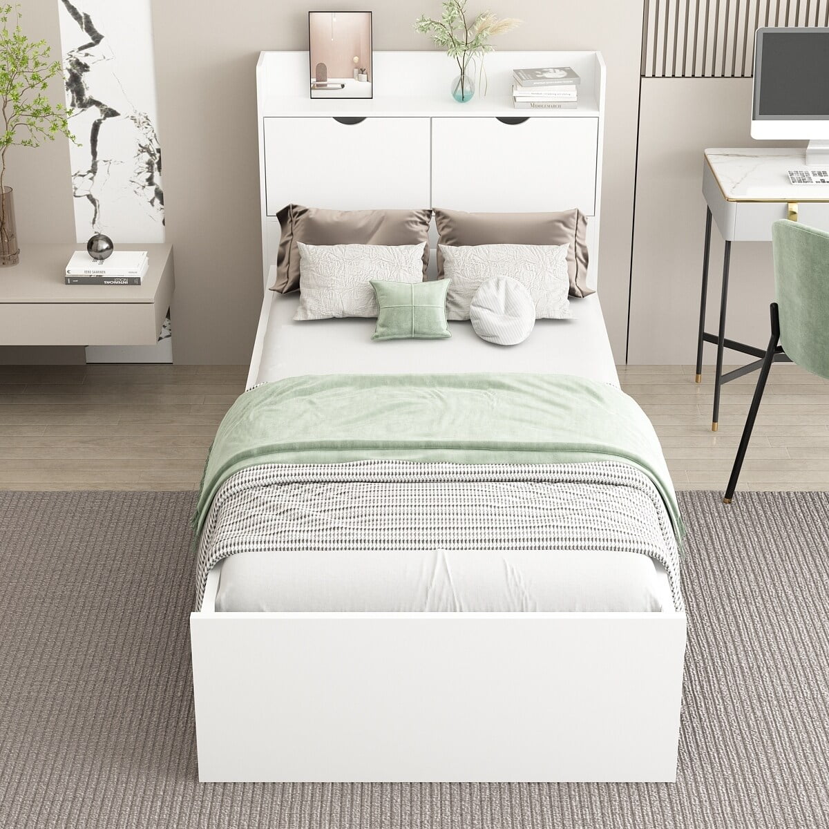 Metal Platform Bed Frame with Wooden Headboard, Storage Drawers, Sockets, USB Ports White - Queen