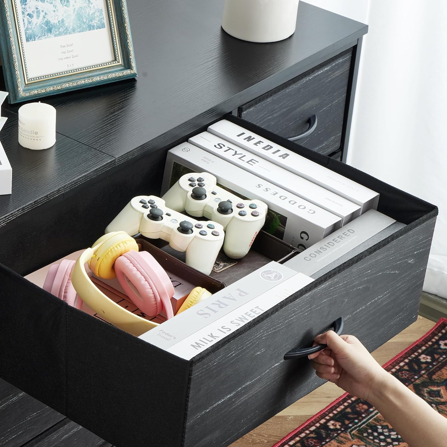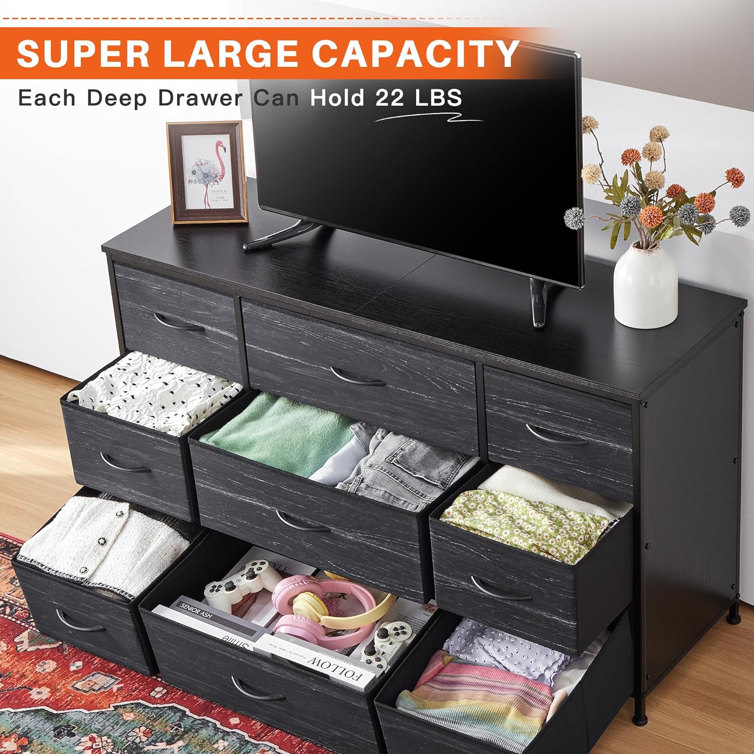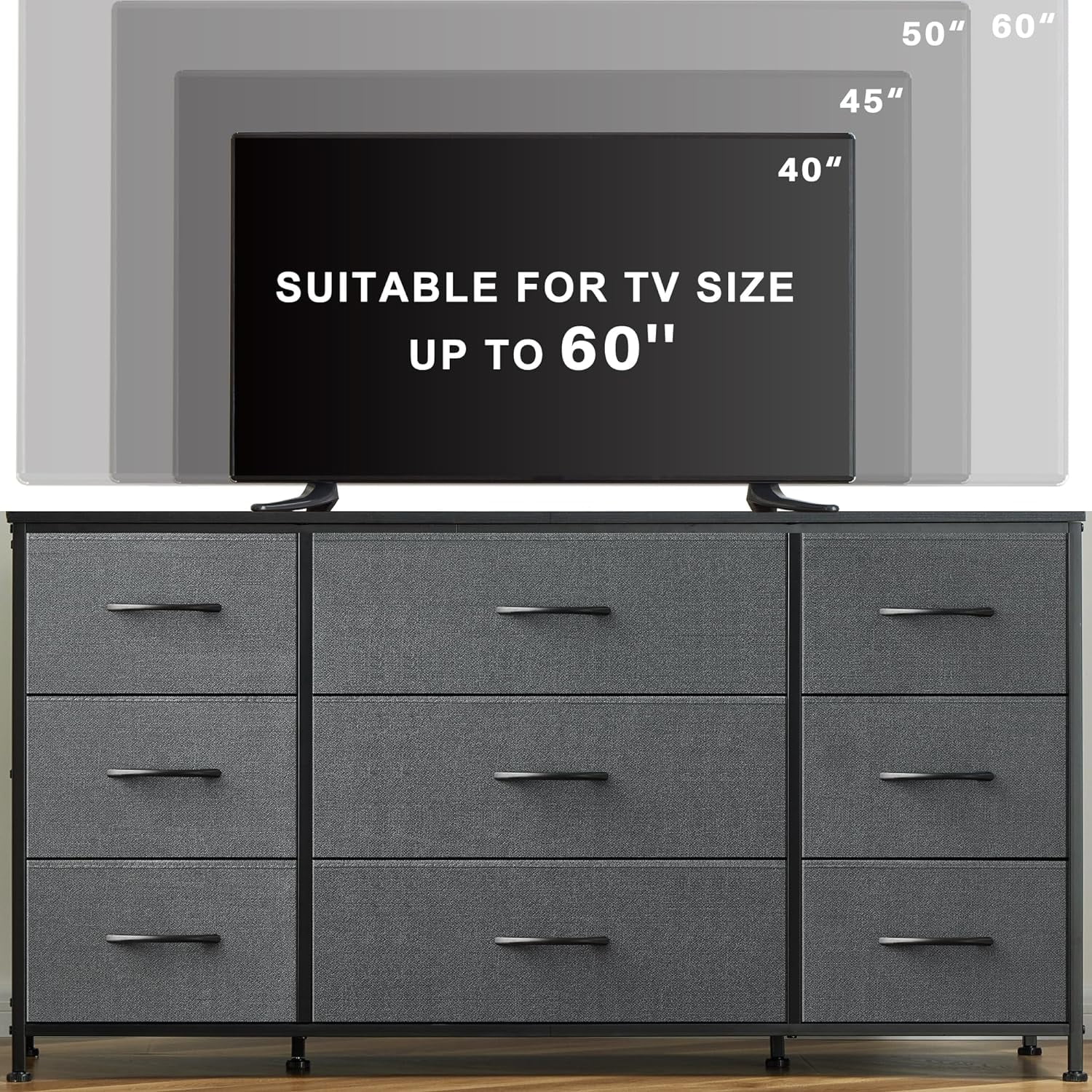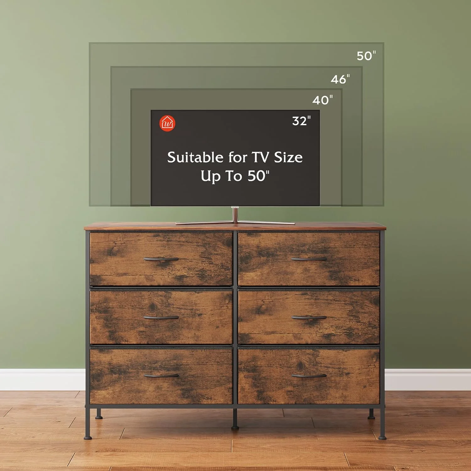 Dresser with 6 Drawers, TV Stand for 50" TV, Entertainment Center with Metal Frame, Wooden Top, Fabric Storage Dresser