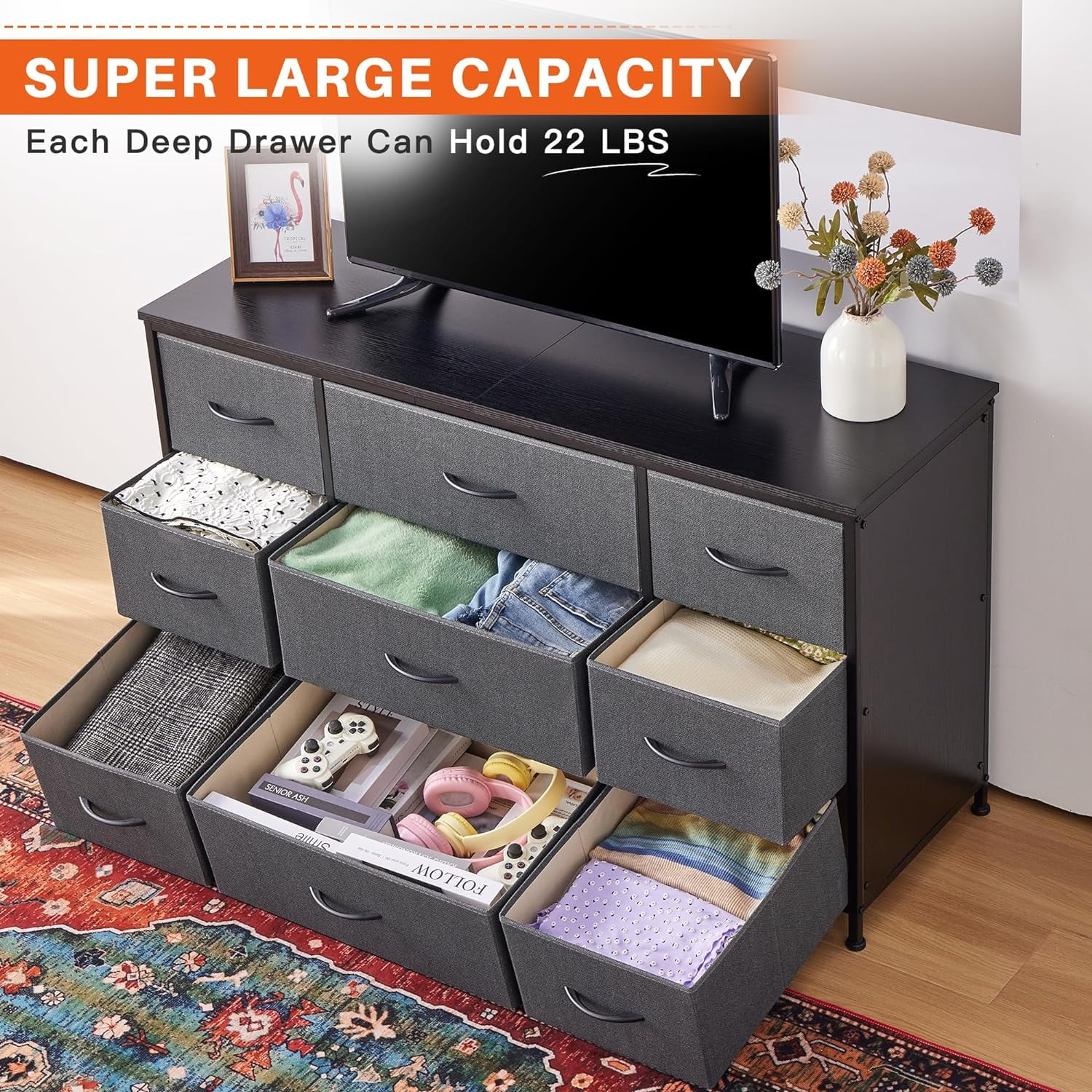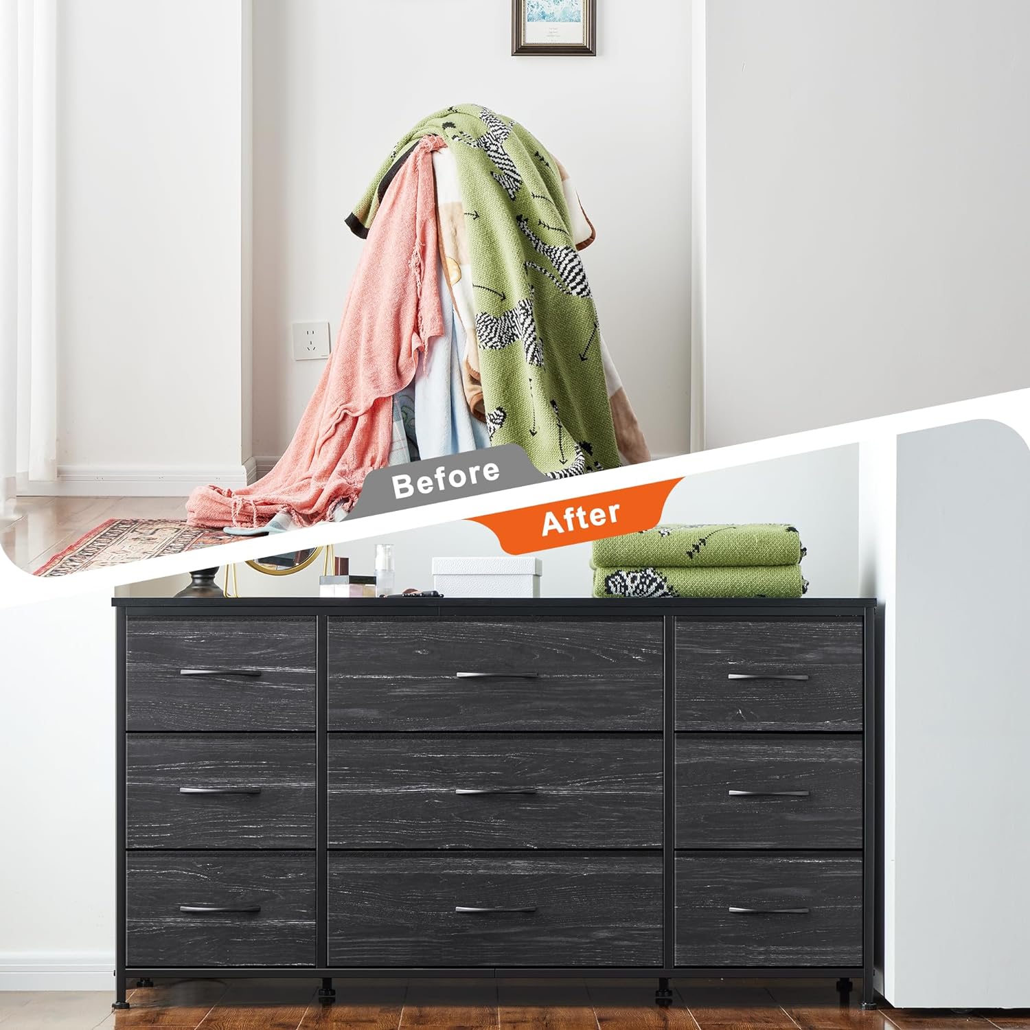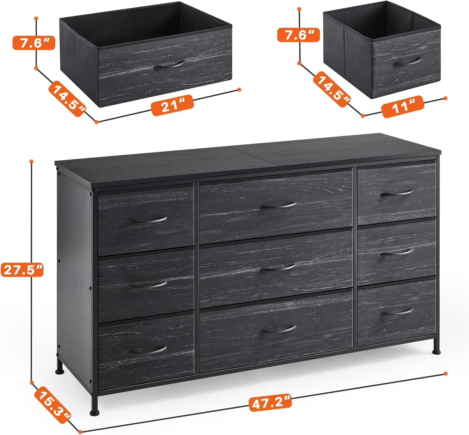 Dresser with 6 Drawers, TV Stand for 50" TV, Entertainment Center with Metal Frame, Wooden Top, Fabric Storage Dresser