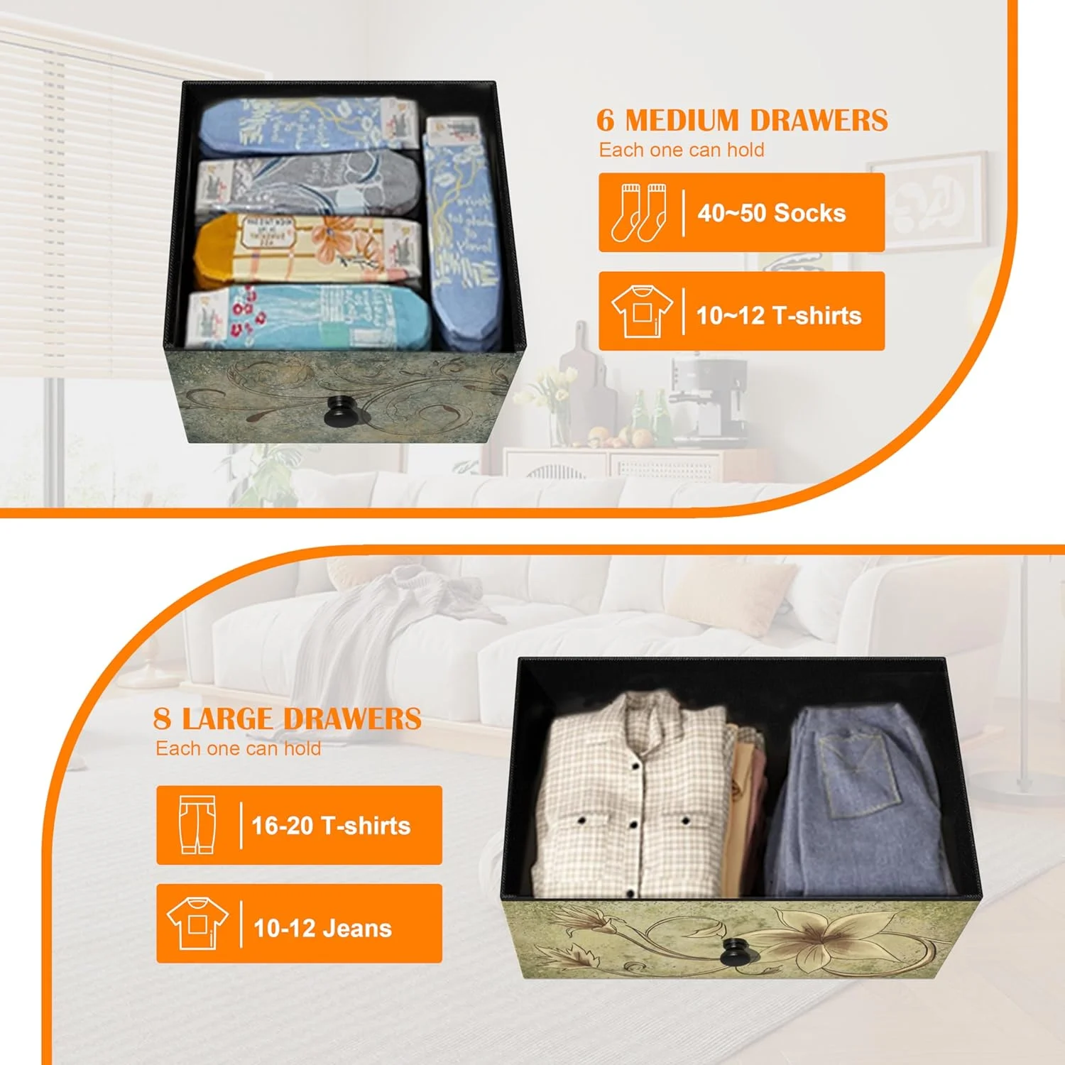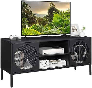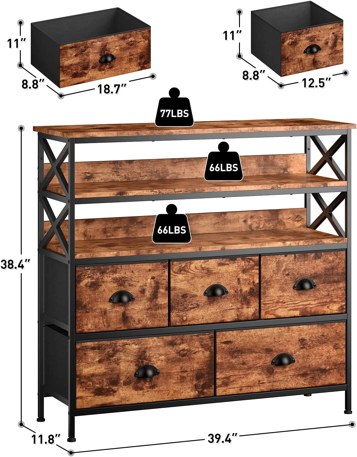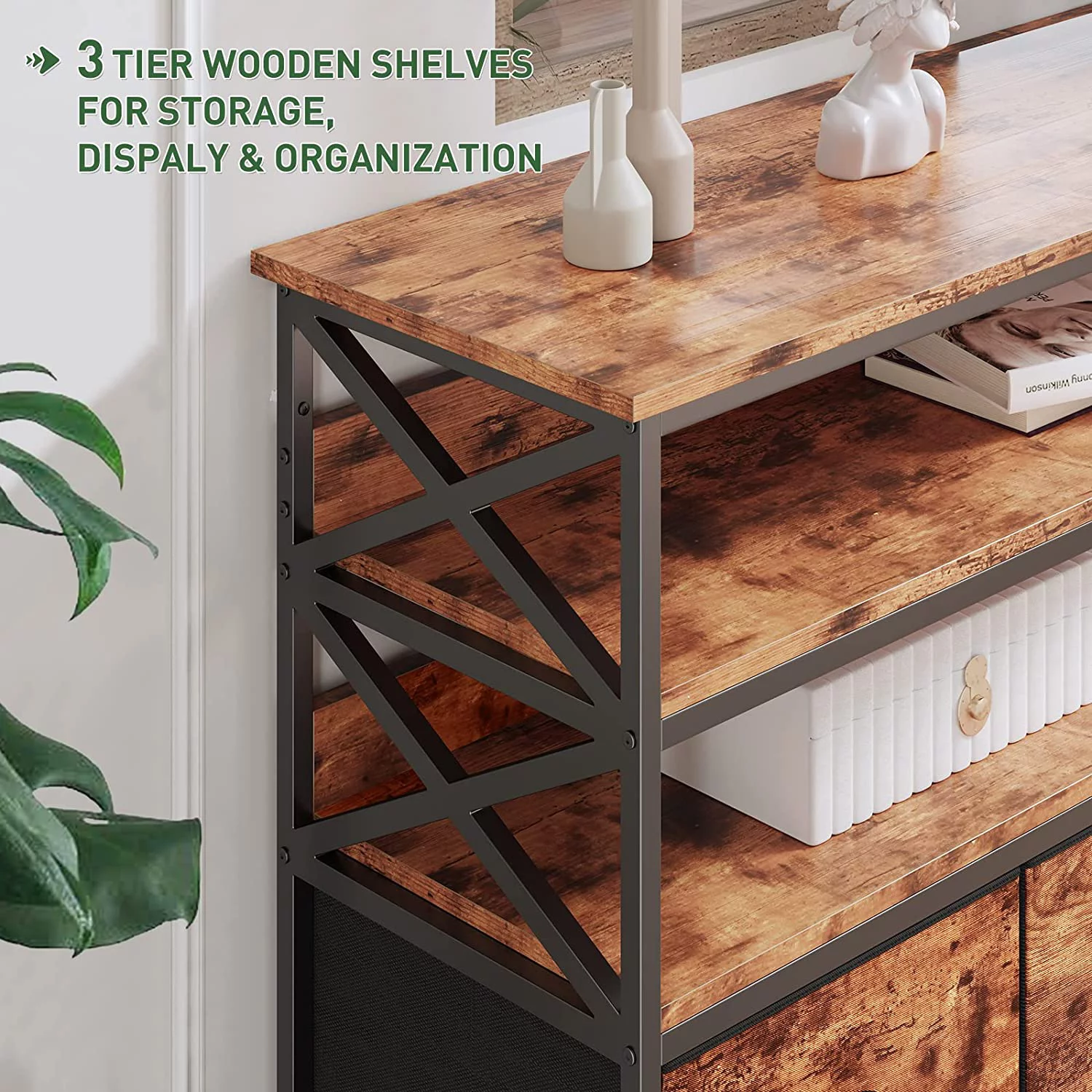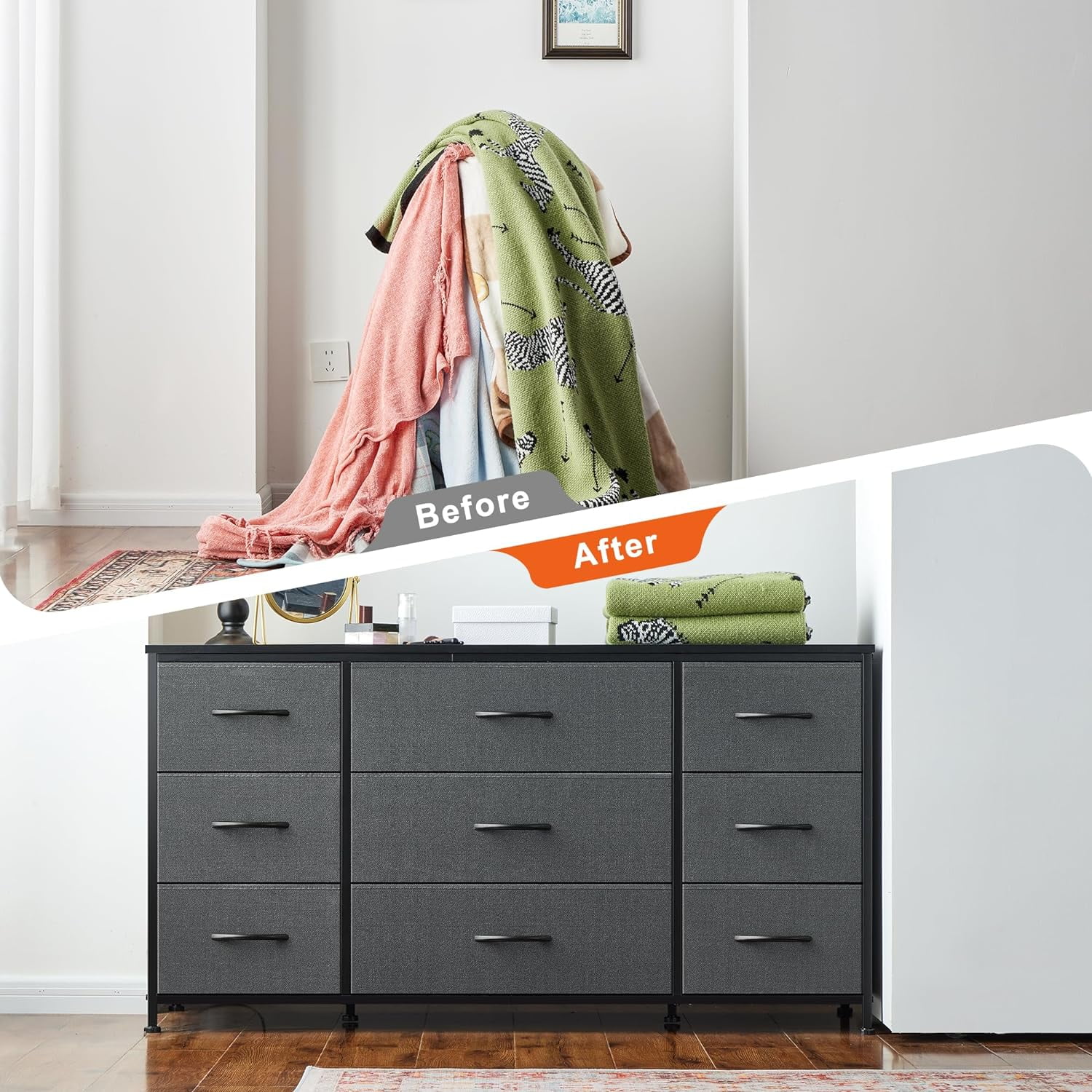 Dresser with 6 Drawers, TV Stand for 50" TV, Entertainment Center with Metal Frame, Wooden Top, Fabric Storage Dresser