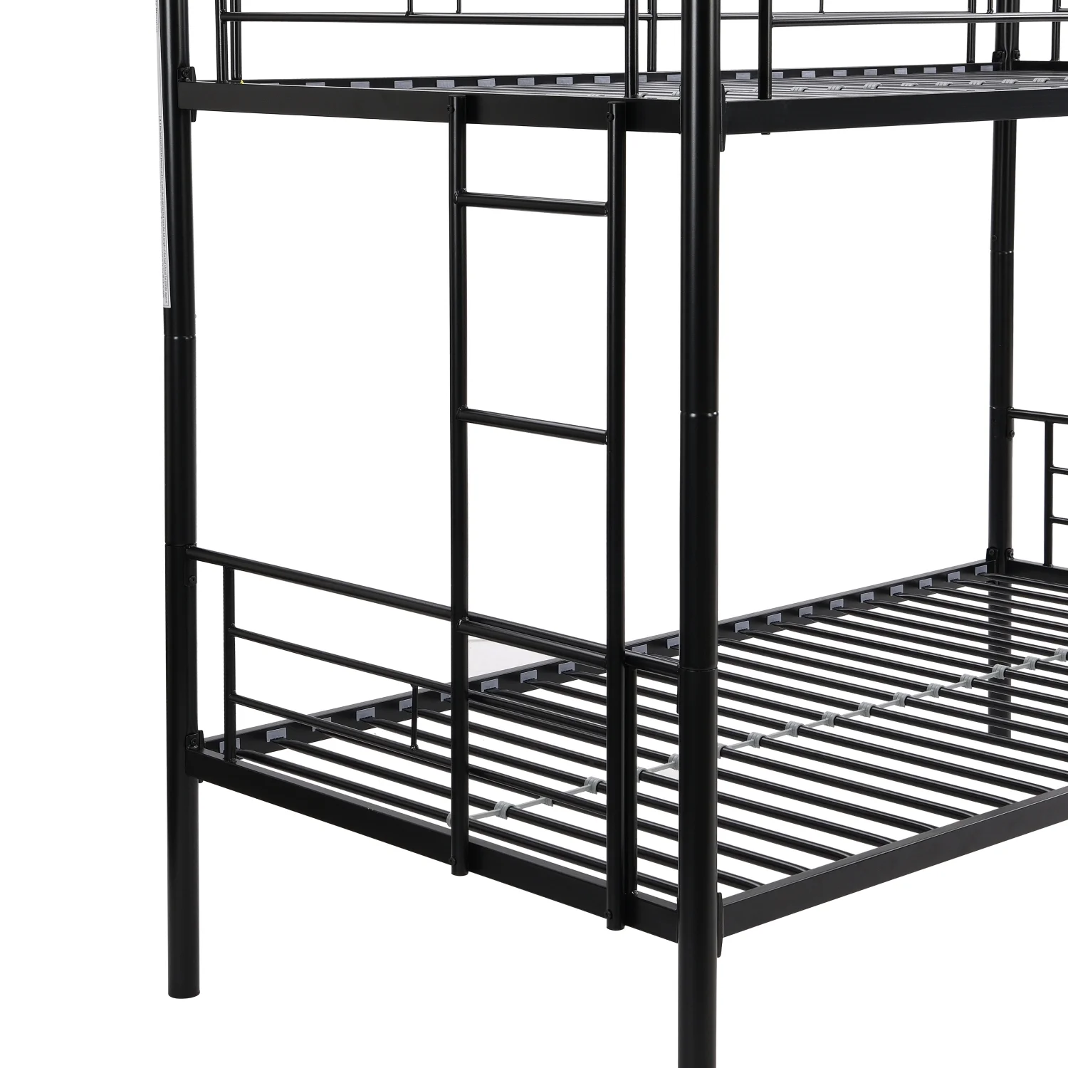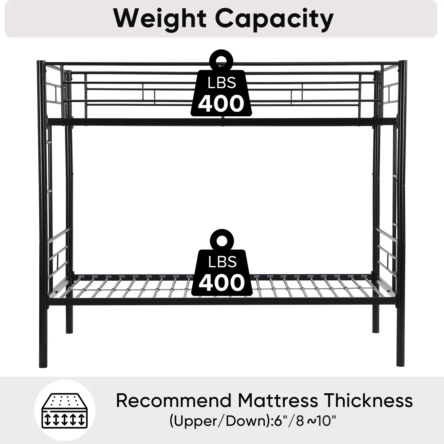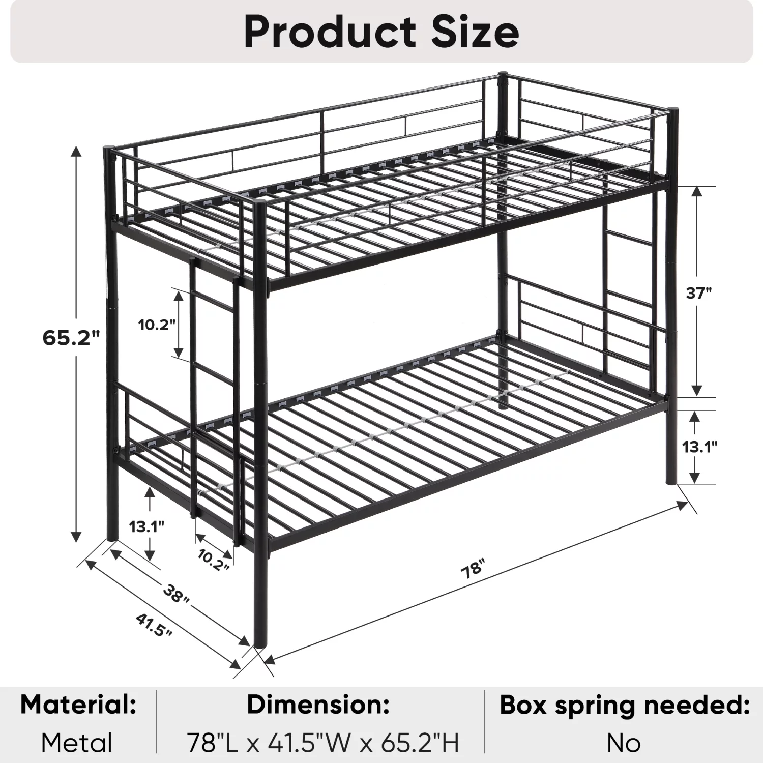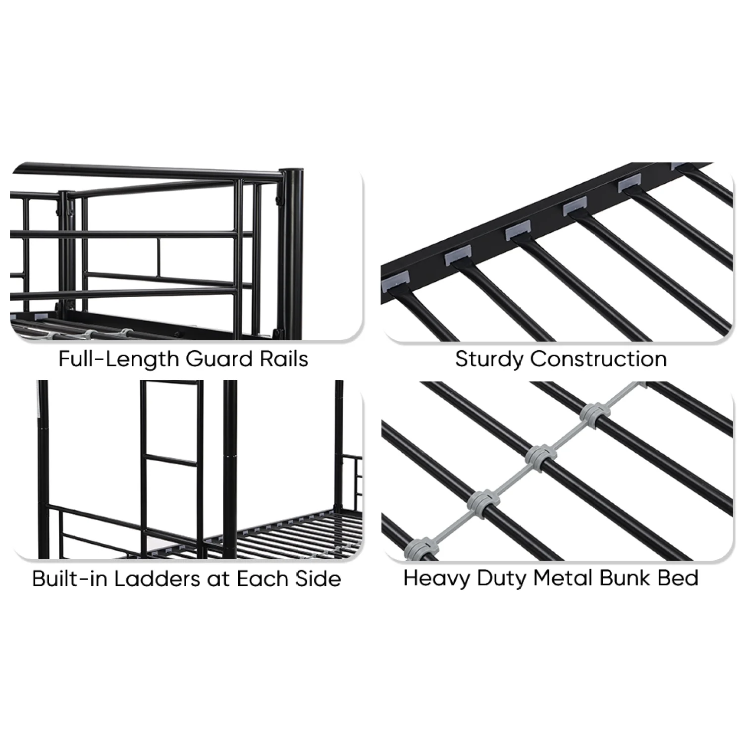 Momspeace Metal Bunk Bed Twin Over Full with Ladder and Safety Guardrail CPC Certified Low Bunk Beds for Kids, Black