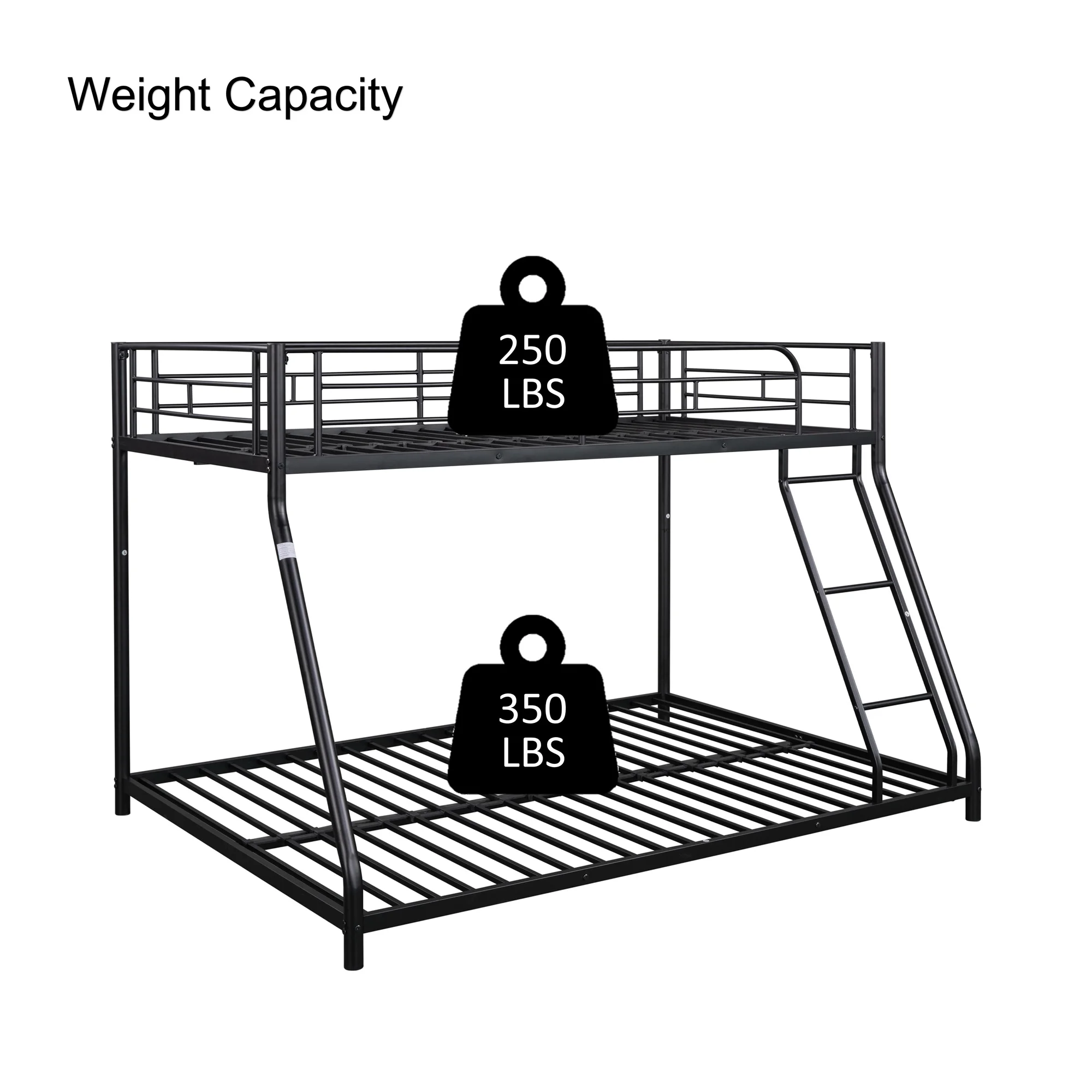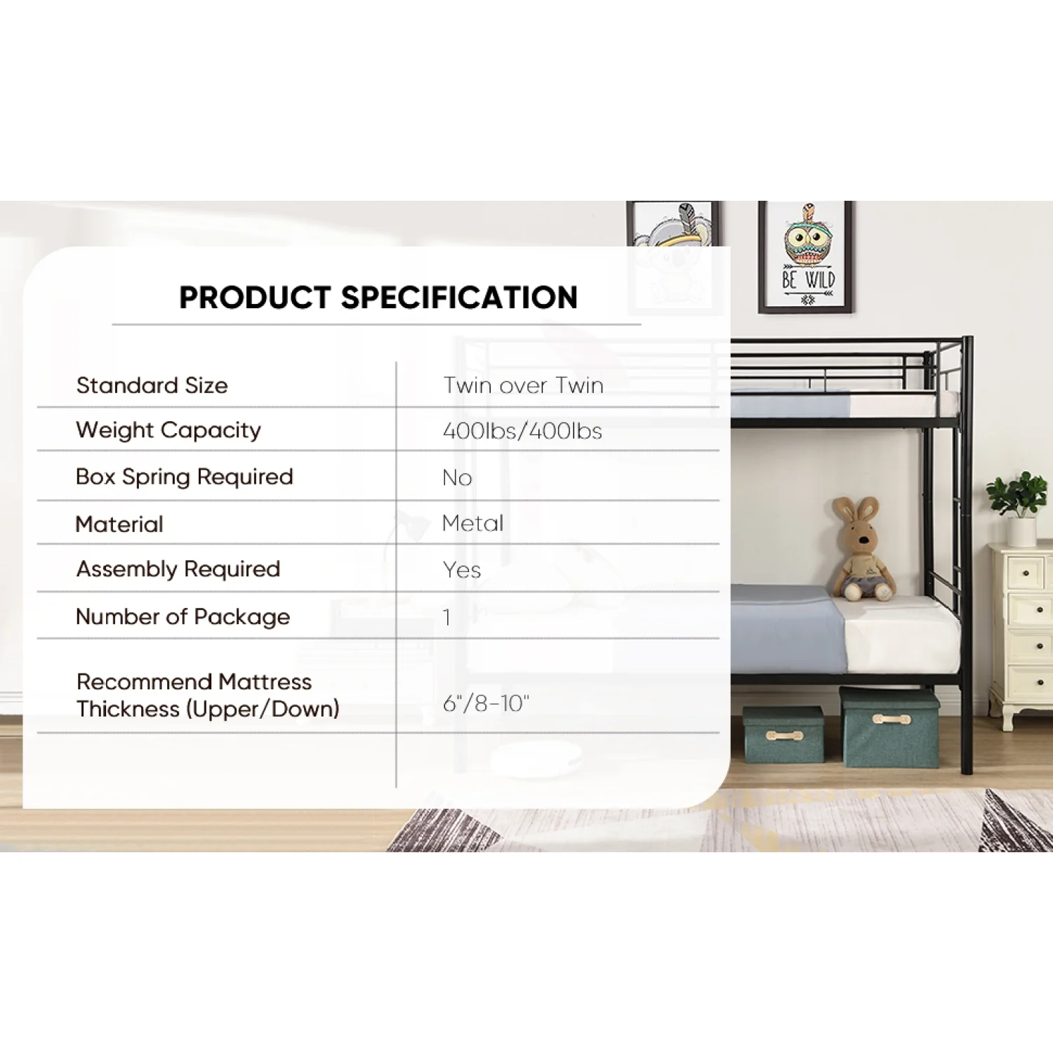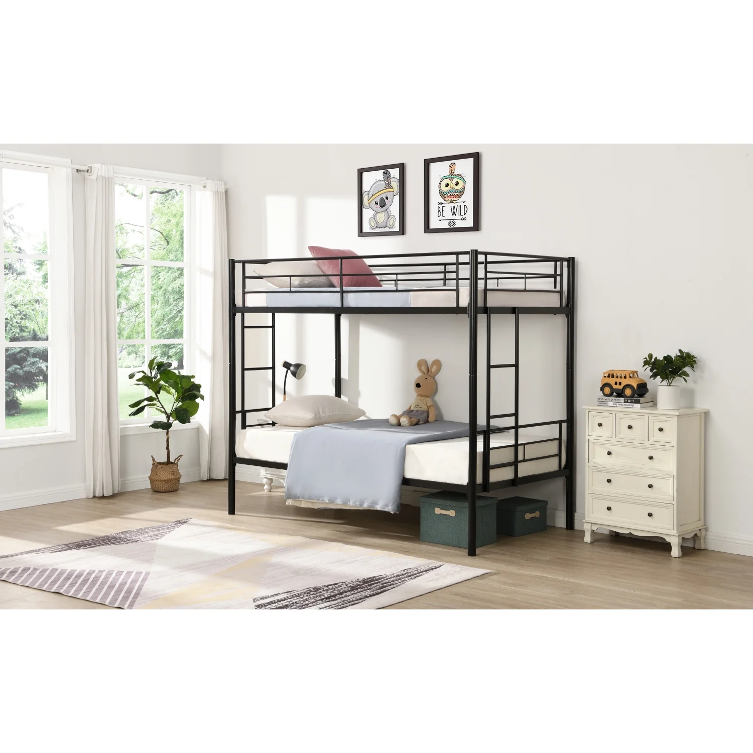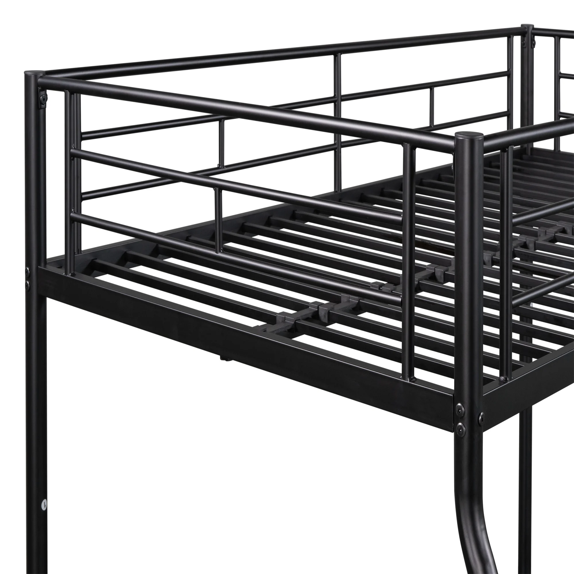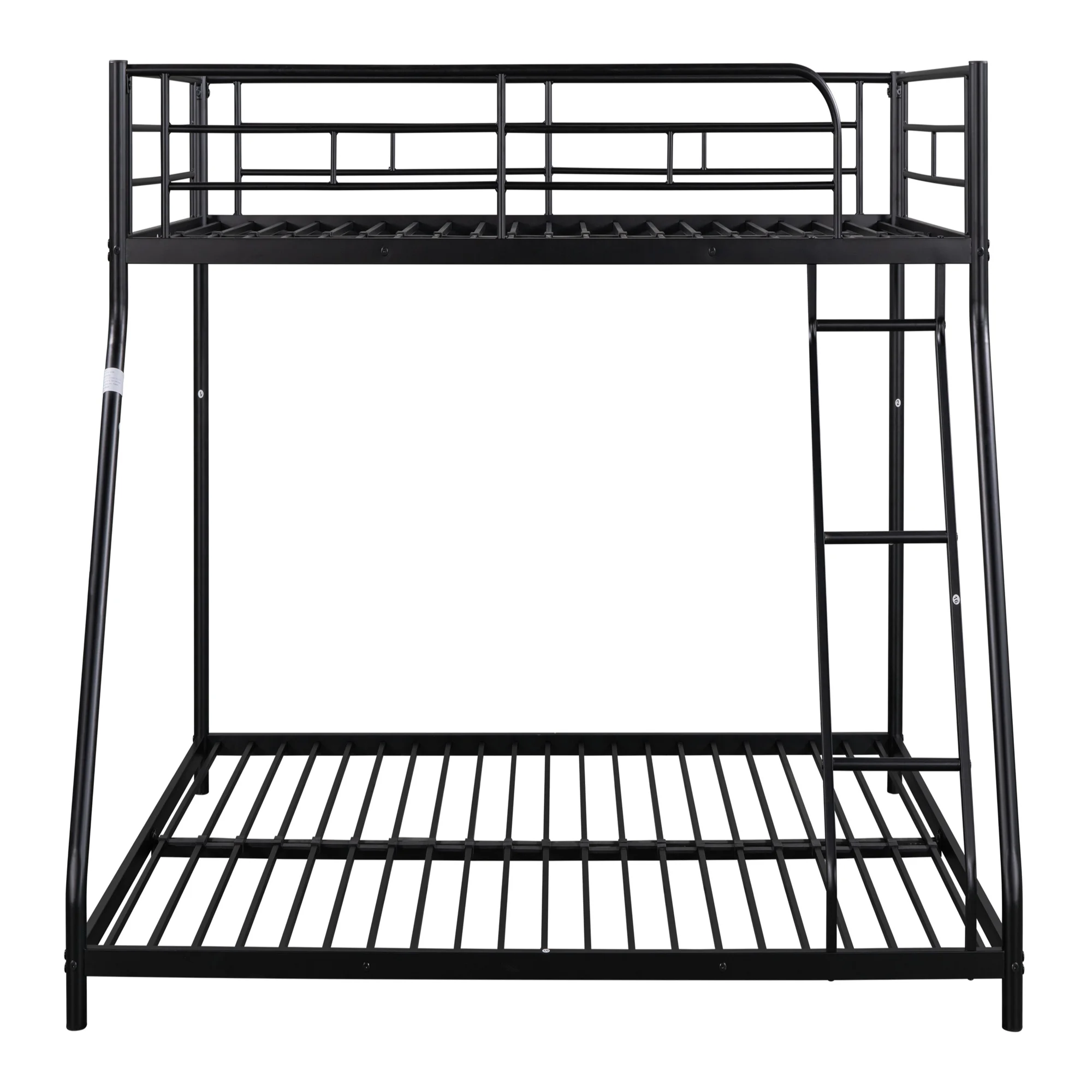 Momspeace Metal Bunk Bed Twin Over Full with Ladder and Safety Guardrail CPC Certified Low Bunk Beds for Kids, Black