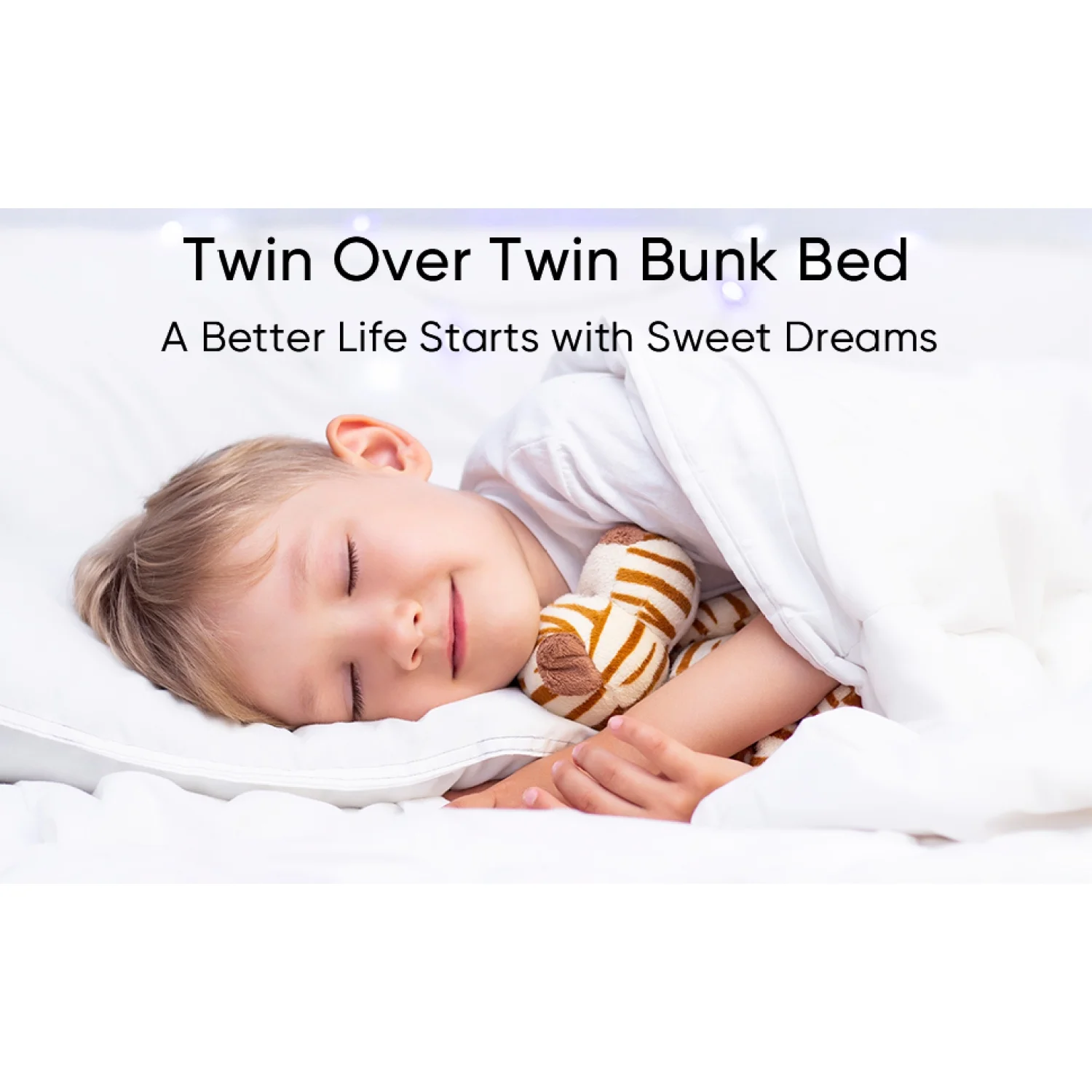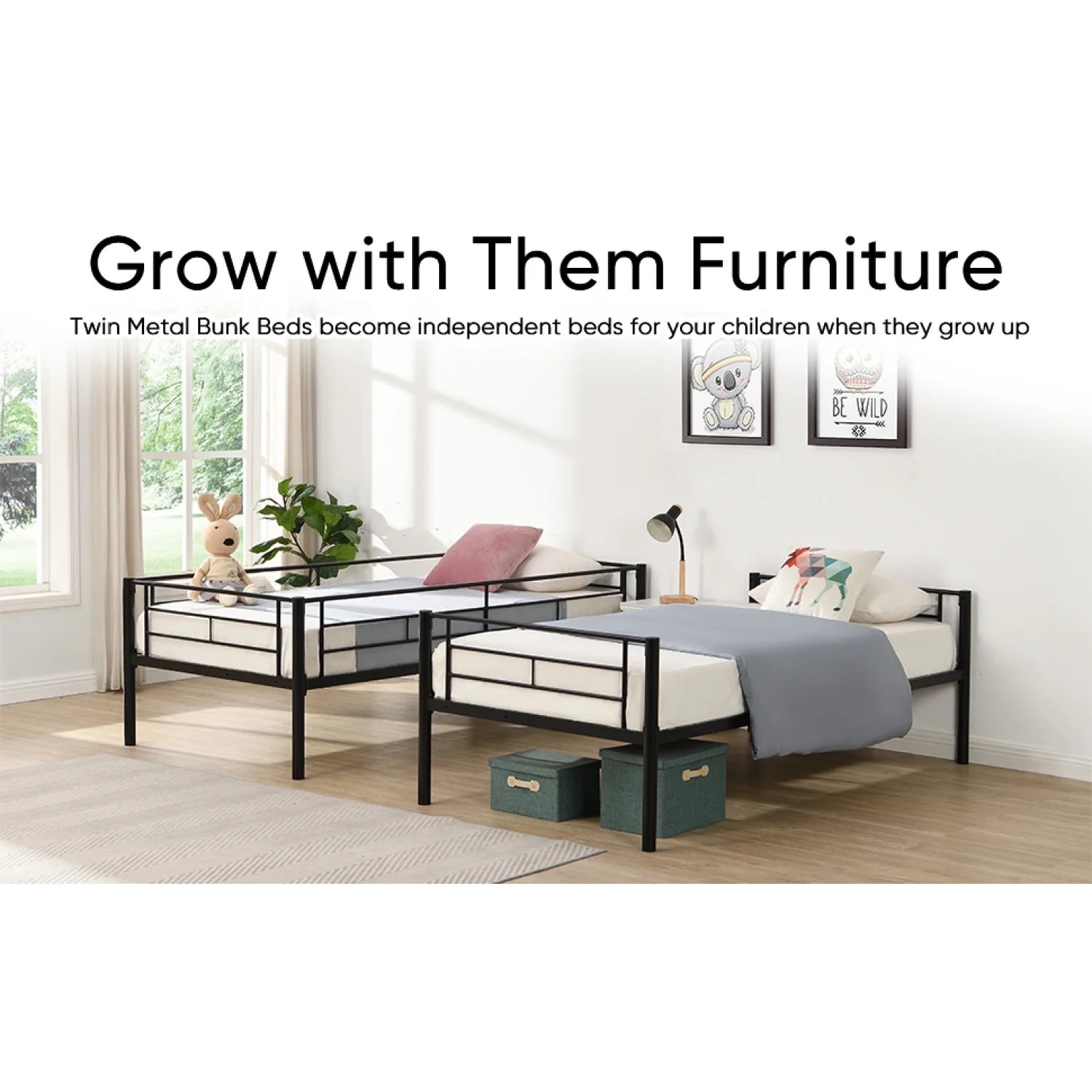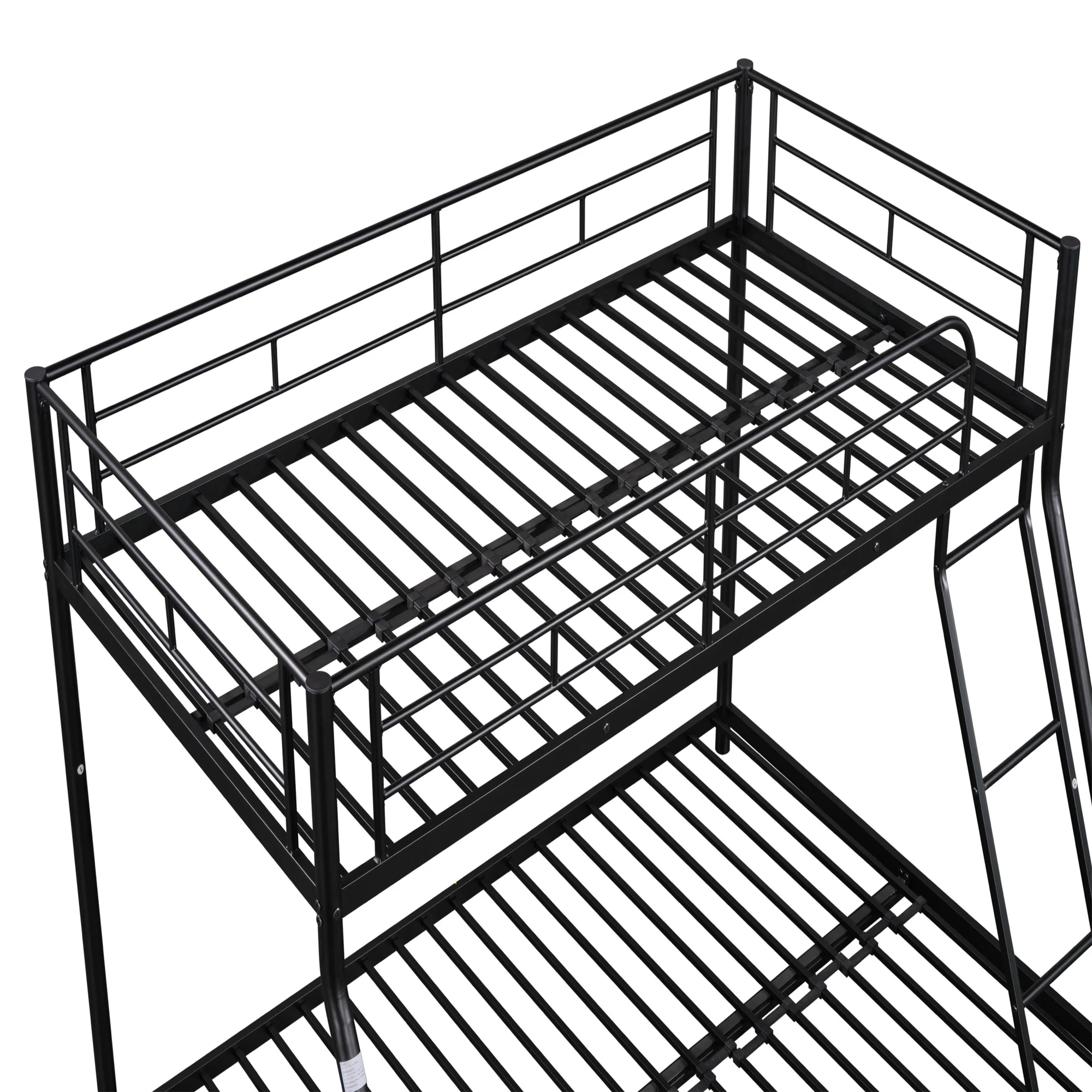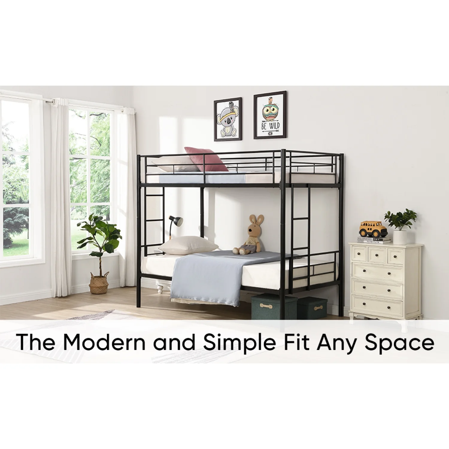 Momspeace Metal Bunk Bed Twin Over Full with Ladder and Safety Guardrail CPC Certified Low Bunk Beds for Kids, Black