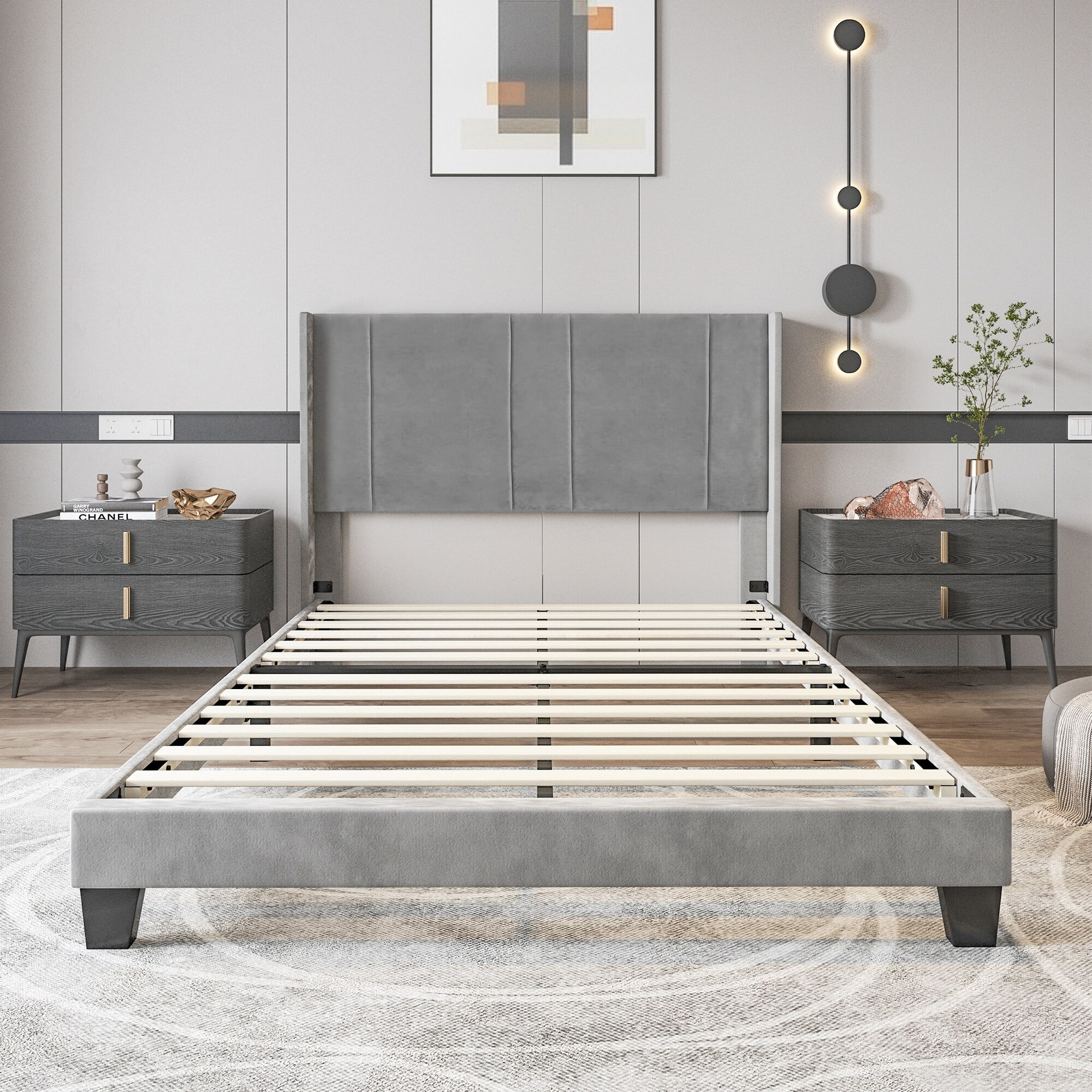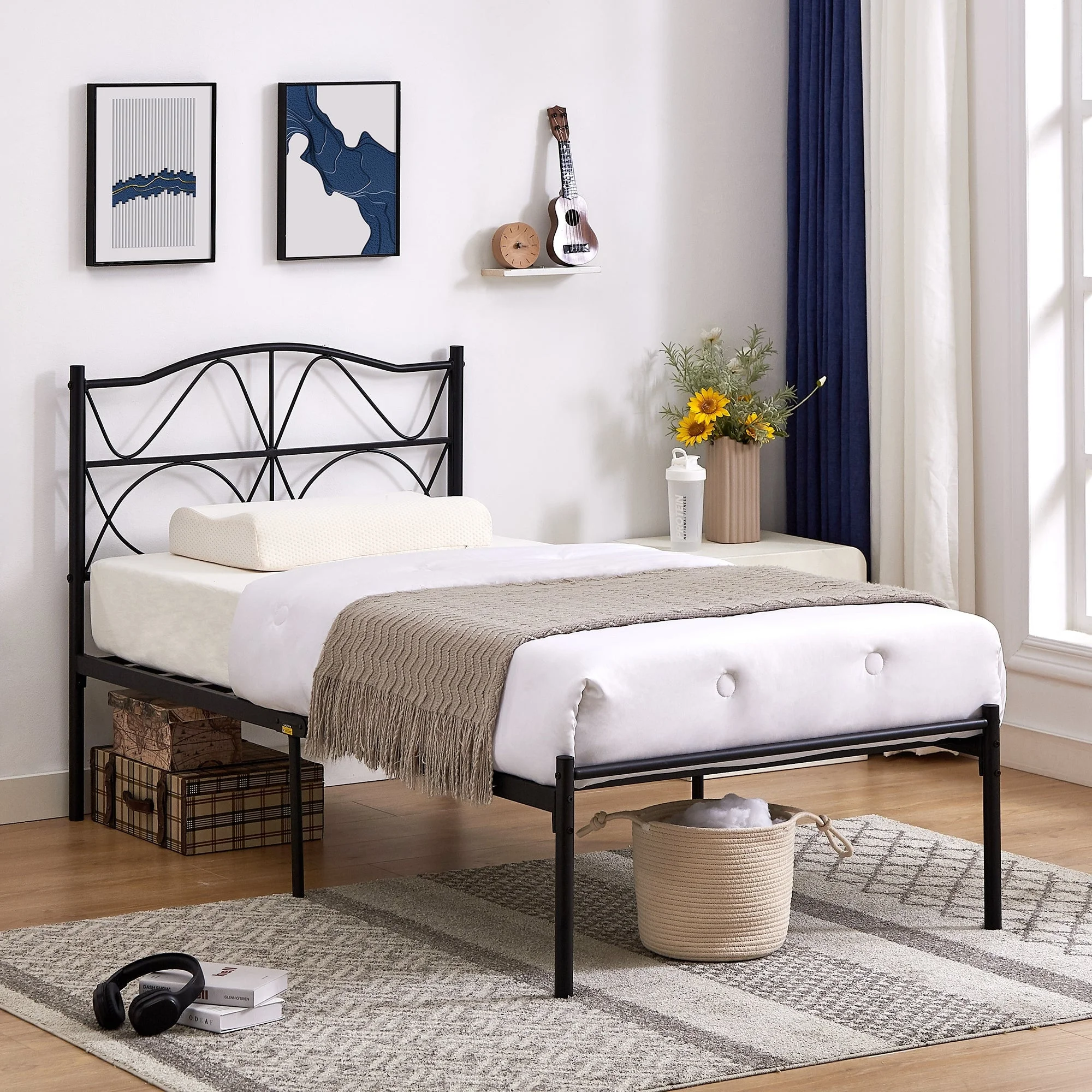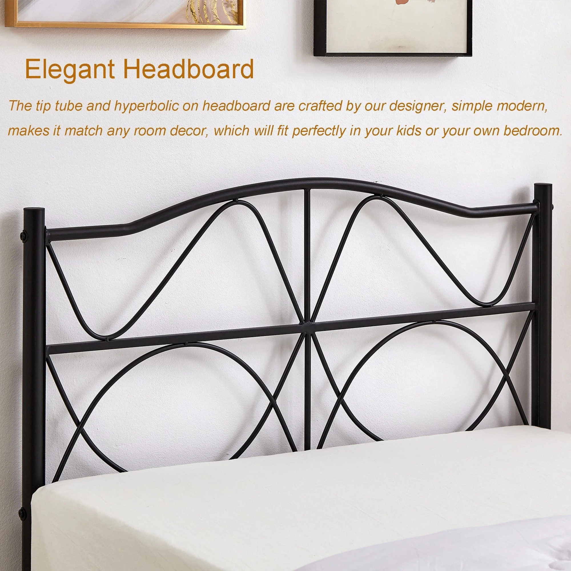 Javlergo Metal Platform Bed Frame with Elegant Headboard, No Box Spring Needed Twin