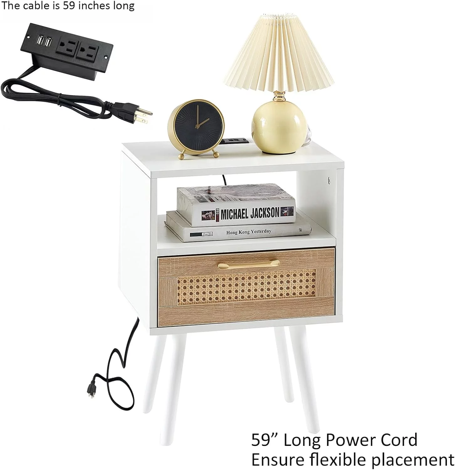 Glavbiku Nightstand Dresser with Charging Station,Bedside Table for Bedroom,White,Adult