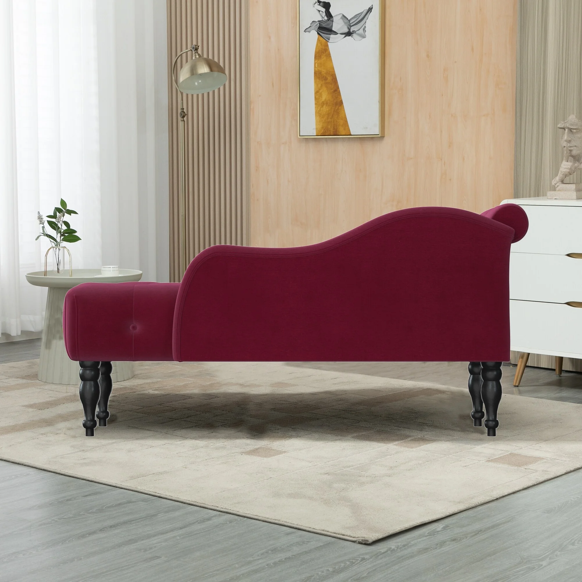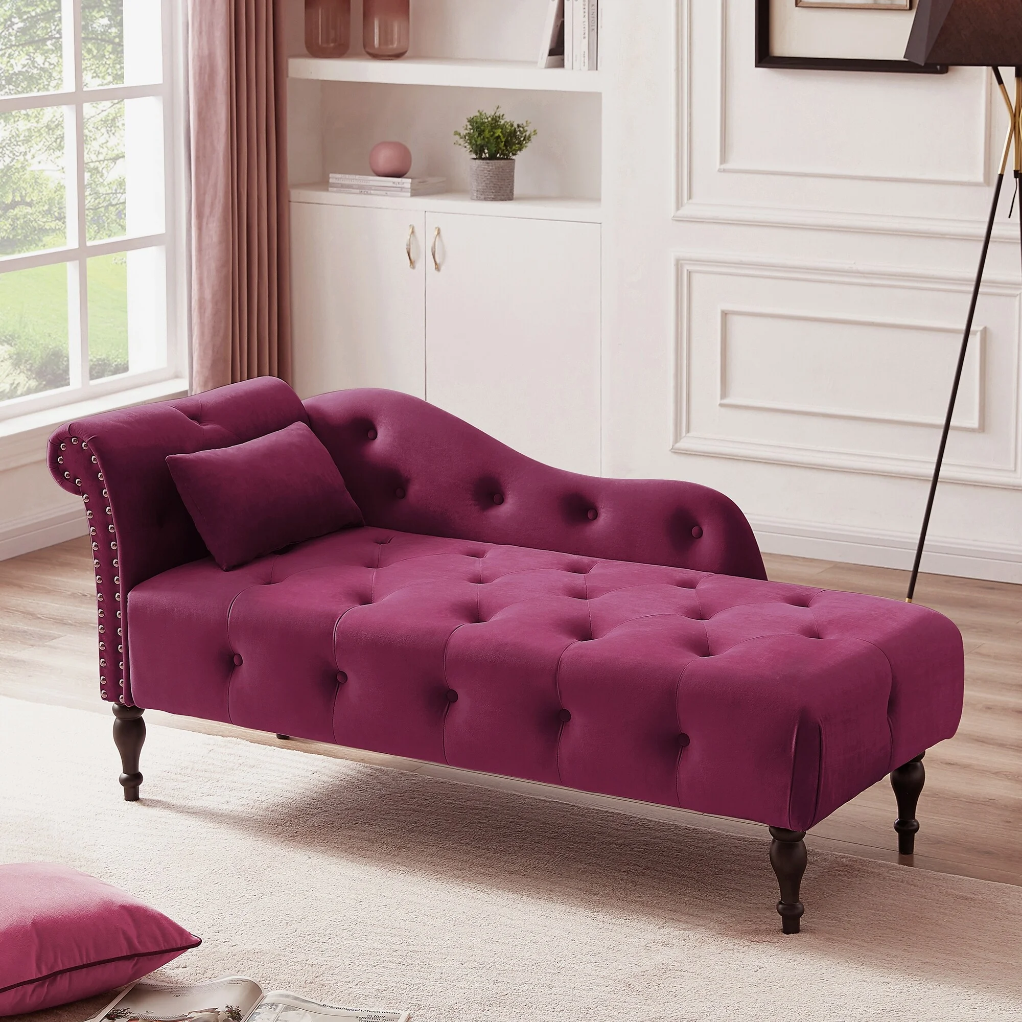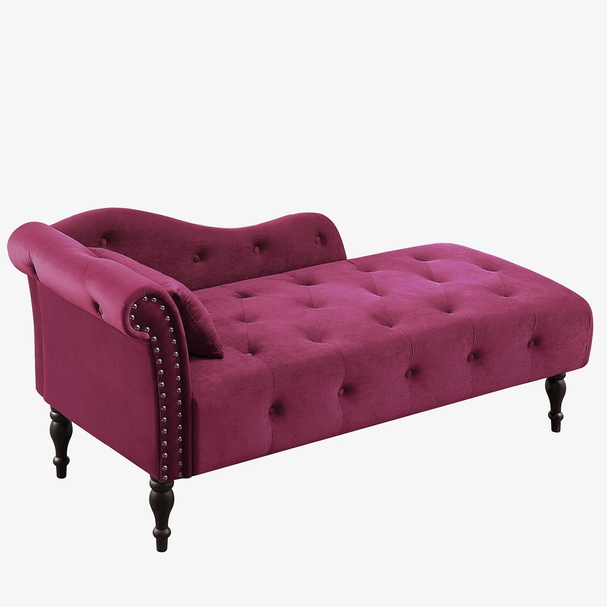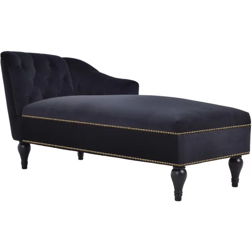 Velvet Chaise Lounge Button Tufted with Arm Lounge Chair with Nailhead Trim & Solid Wood Legs for Living Room or Office