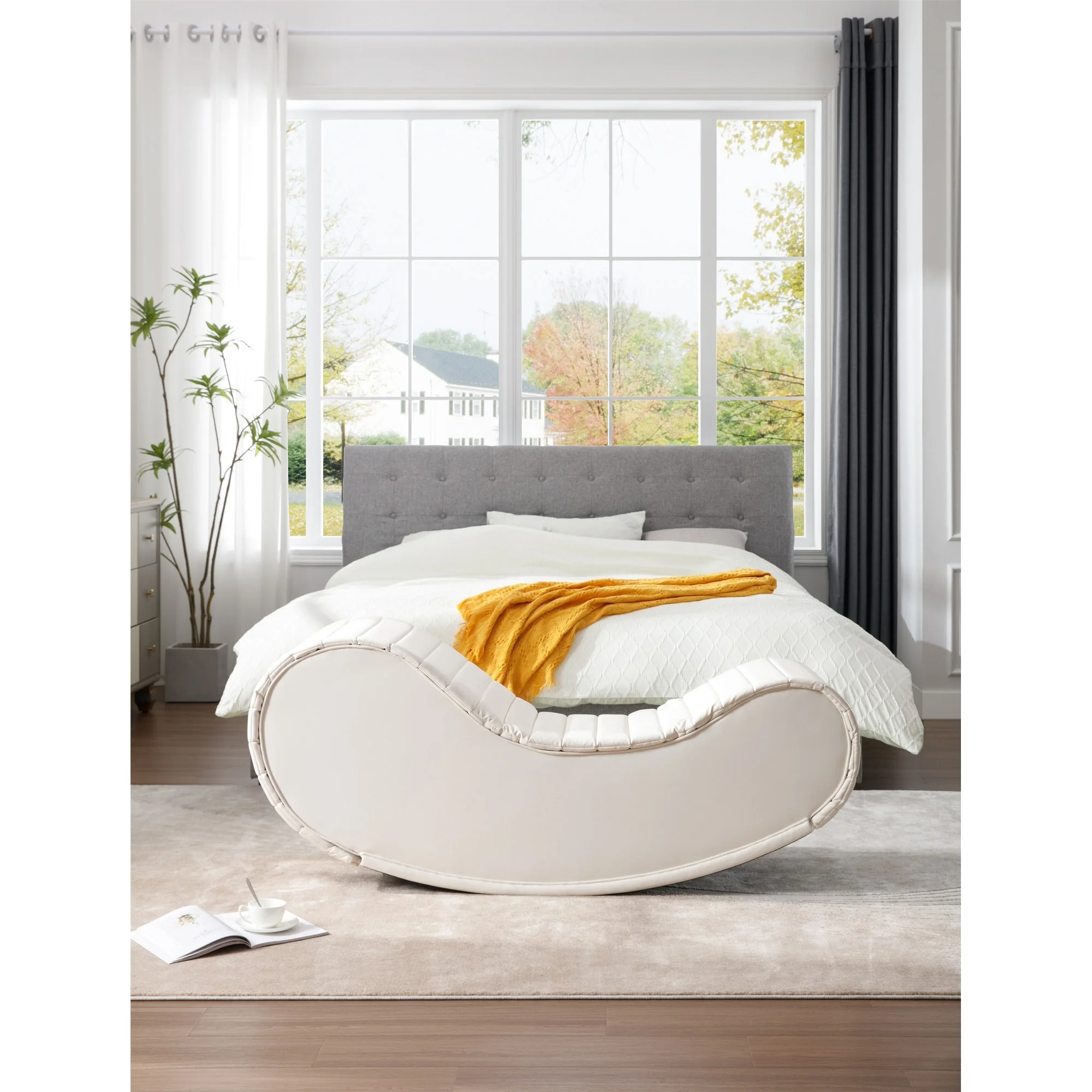 Contemporary Look White Finish 1pc Queen Size bed Tufted Upholstered HB Bedroom Wooden Furniture