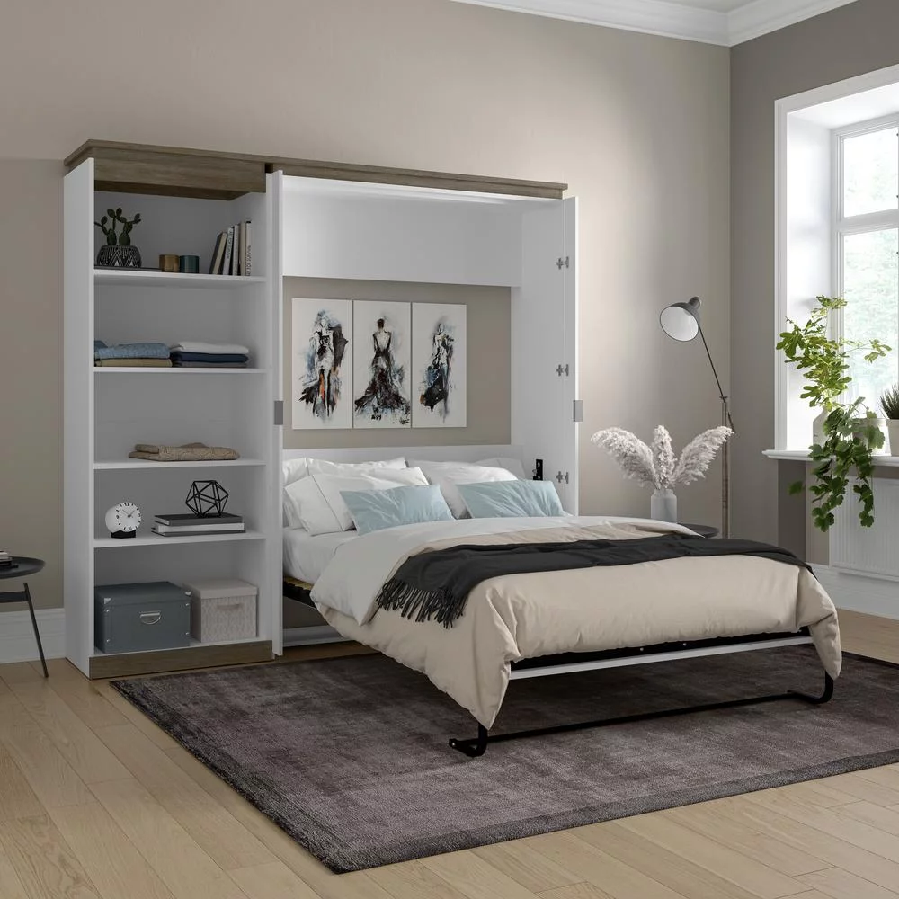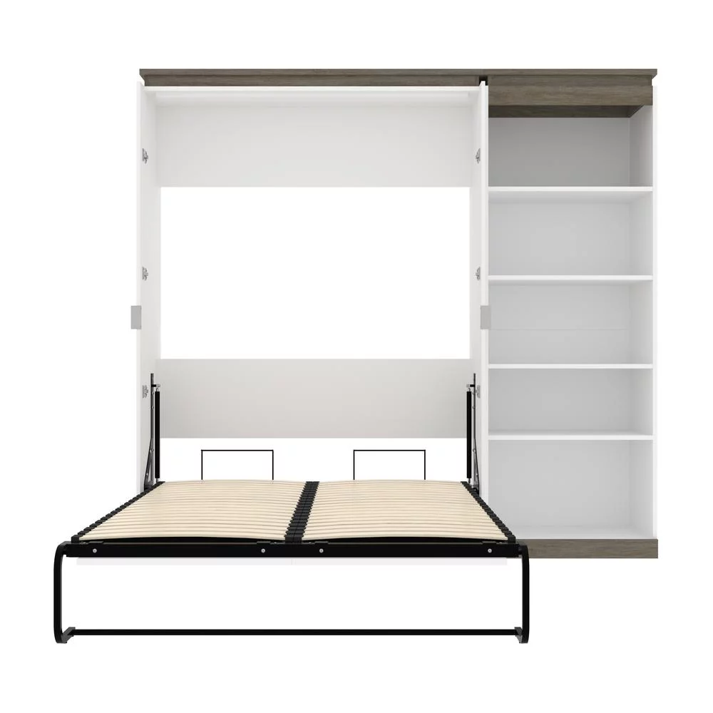 1pc Queen Size Storage Platform Bed Wooden Bedroom Furniture Gray Color Finish