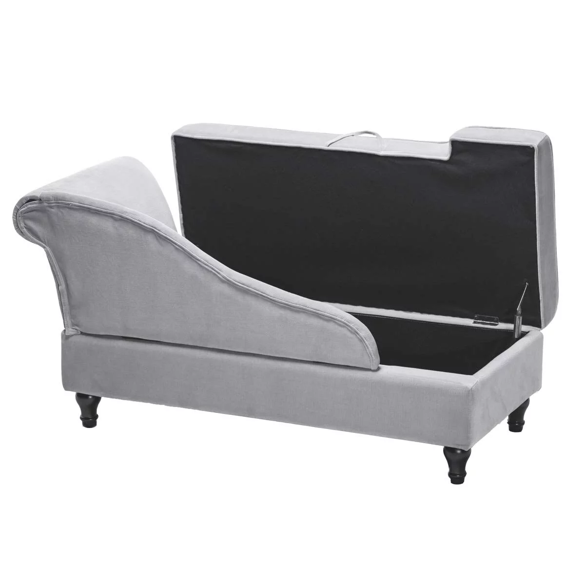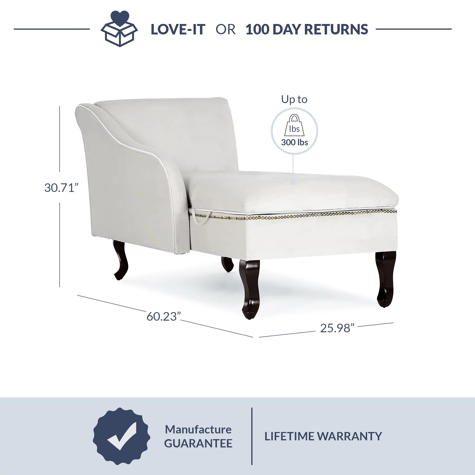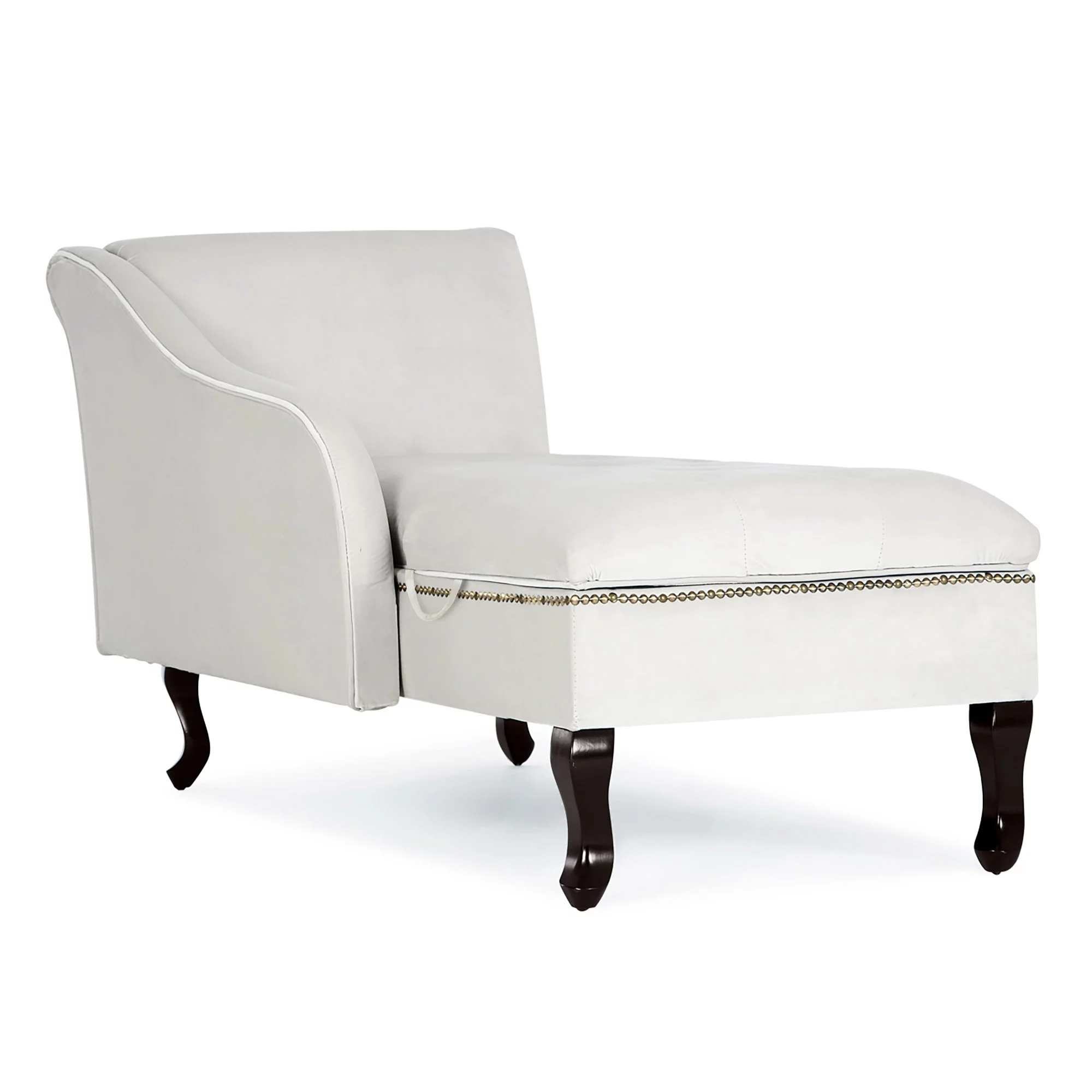 Belleze Nailhead Trim Velveteen Storage Chaise Lounge Chair Tufted Couch for Bedroom Living Room Fold Open Lid, Beige