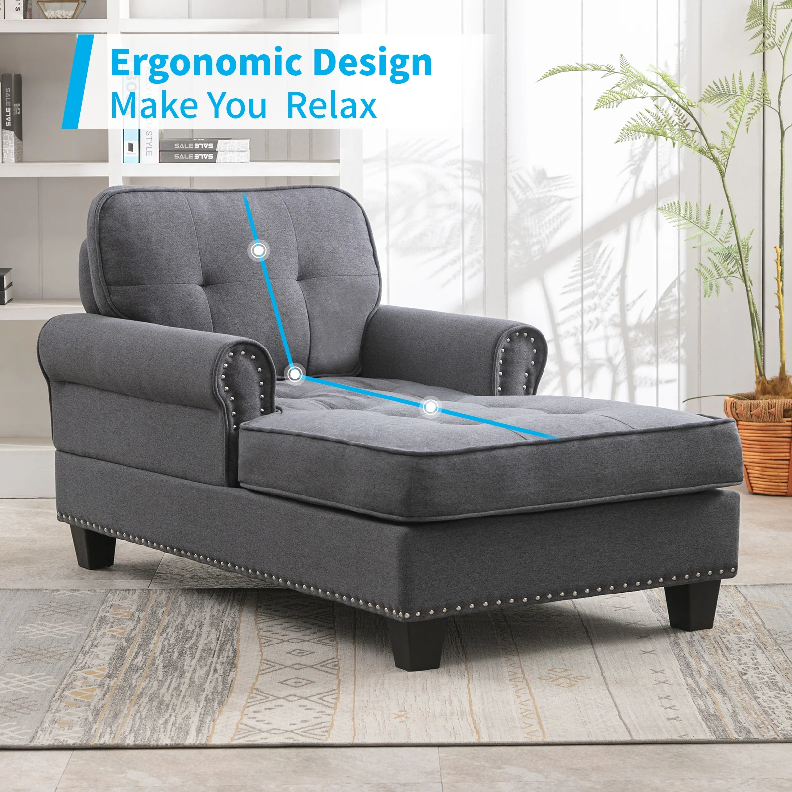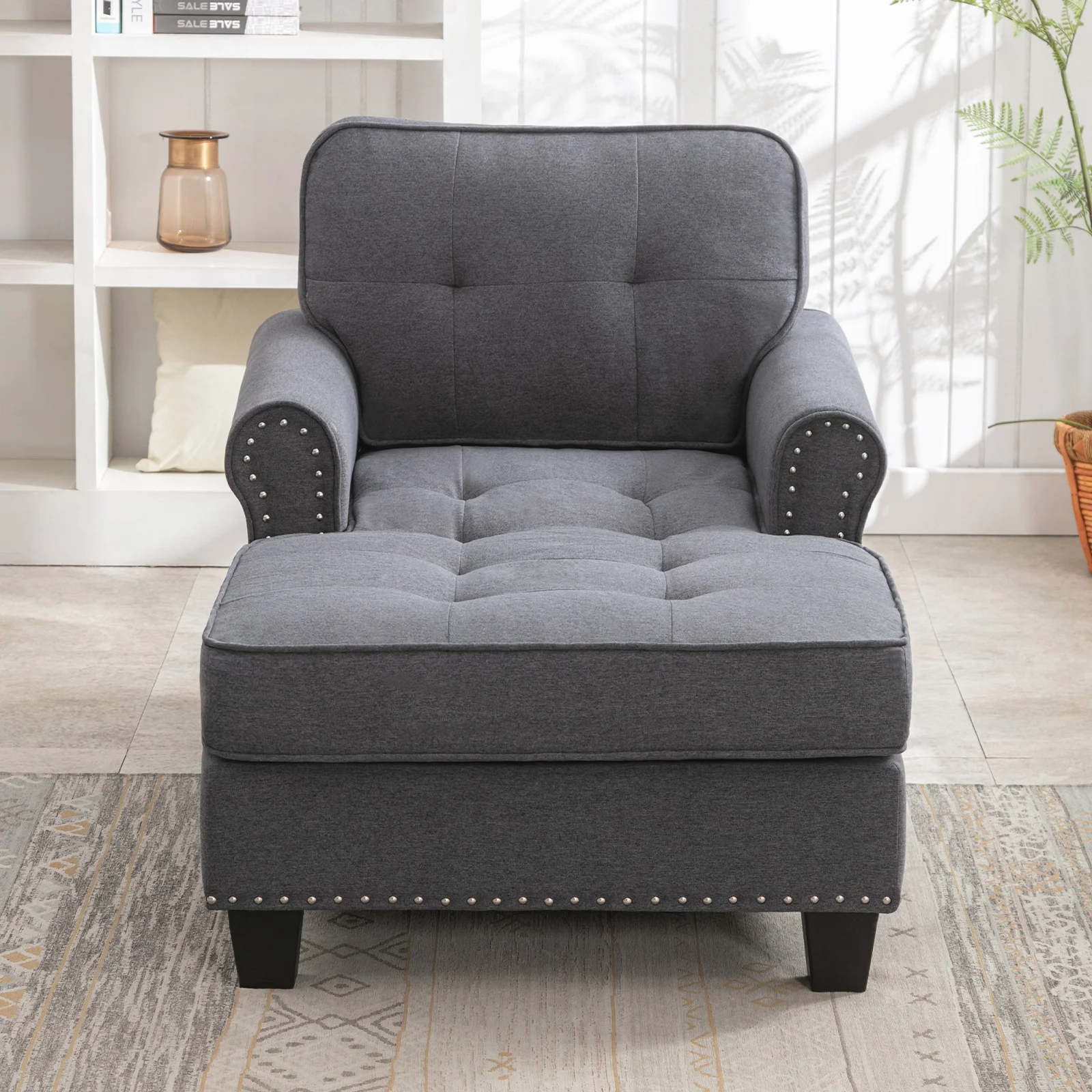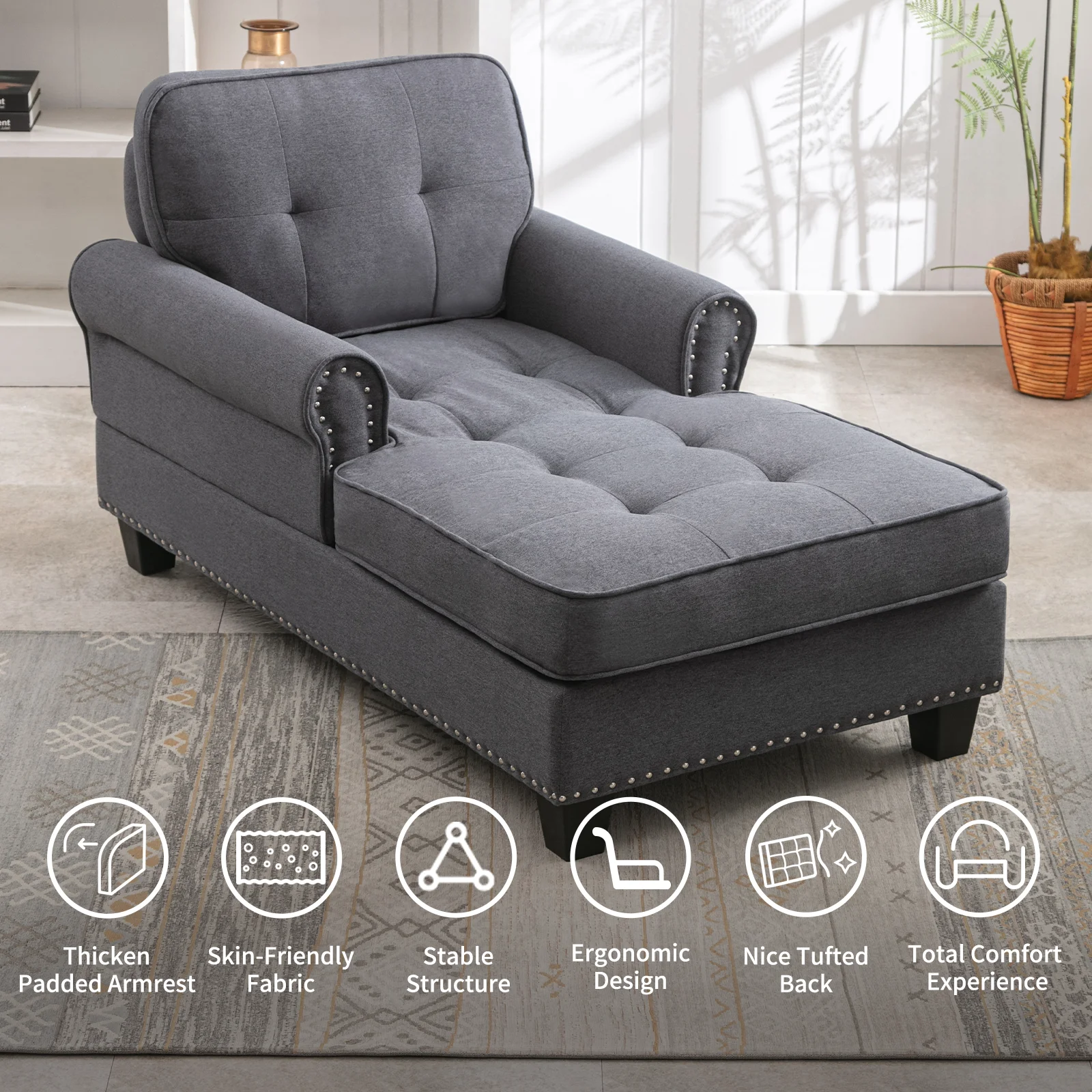 andeworld chaise lounge indoor Upholstered Sofa Recliner Lounge Chair for Living Room Bedroom Side Chairs Grey