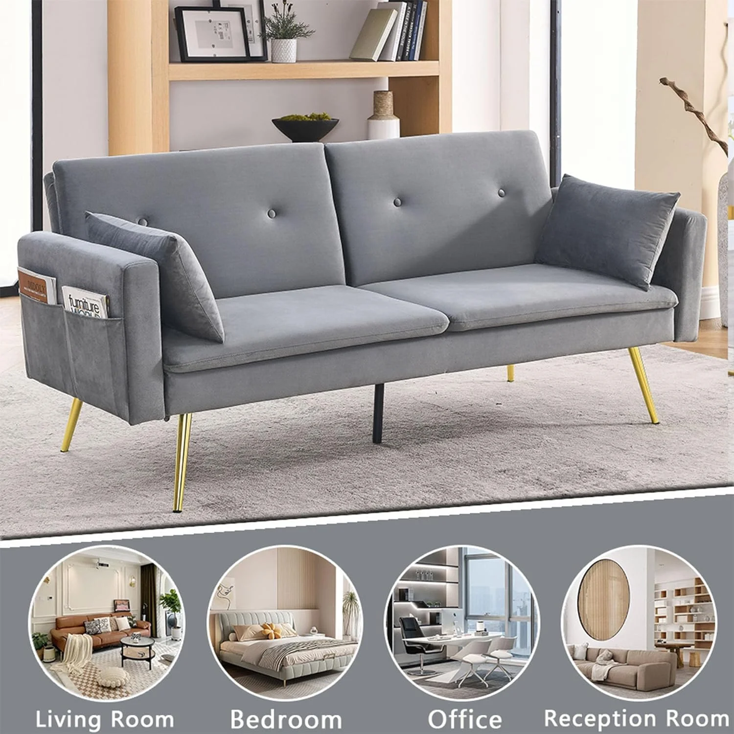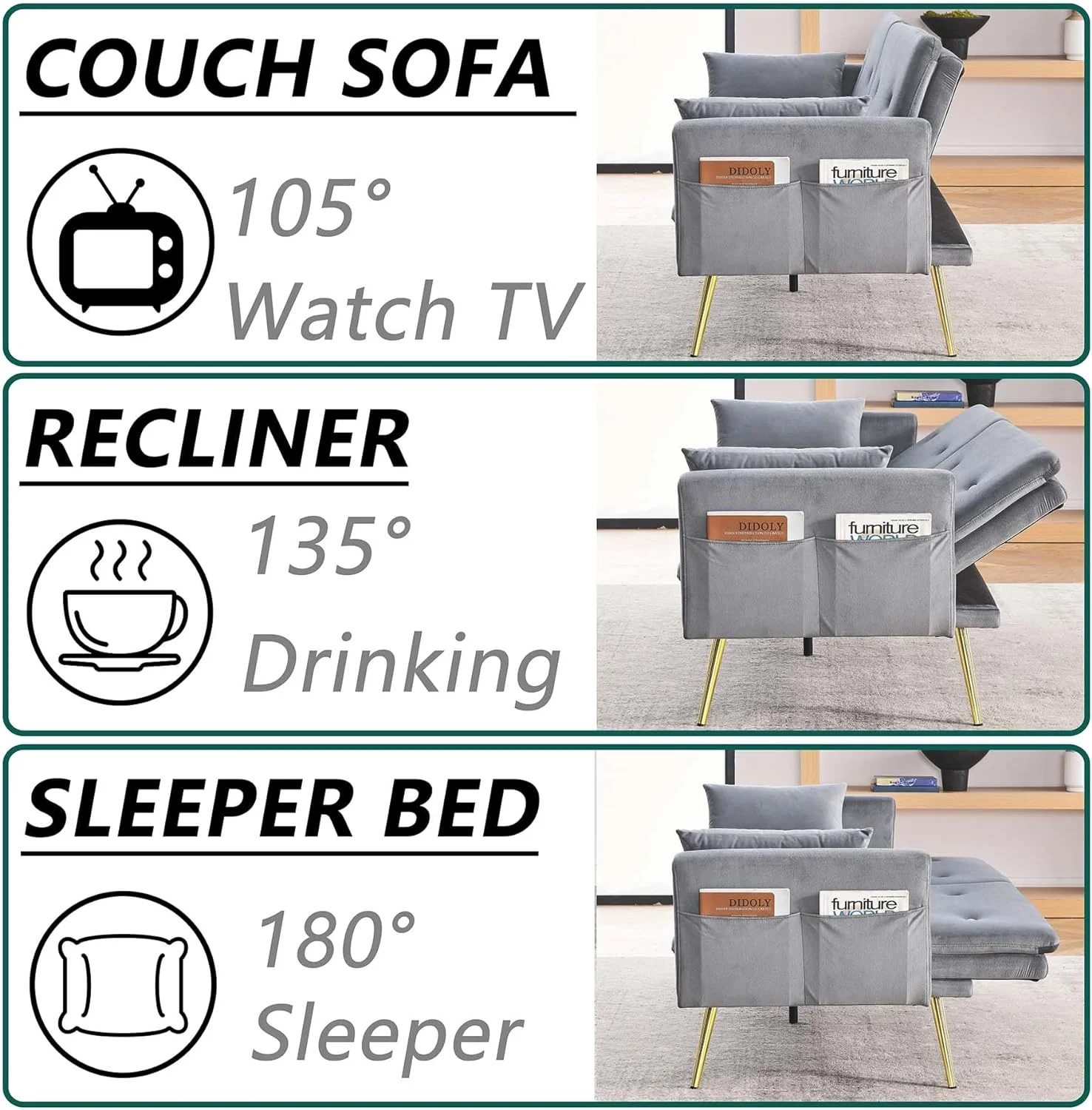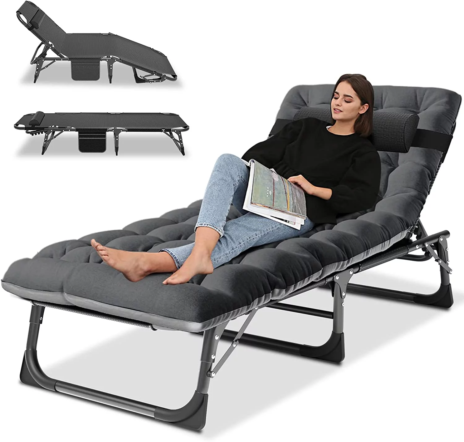 andeworld chaise lounge indoor Upholstered Sofa Recliner Lounge Chair for Living Room Bedroom Side Chairs Grey