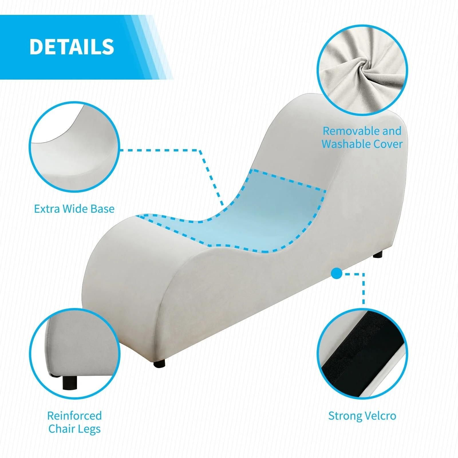 Mixoy Curved Chaise Lounge Yoga Chair for Stretching Relaxing Exercising - 60.6*18.1*27.6 Beige