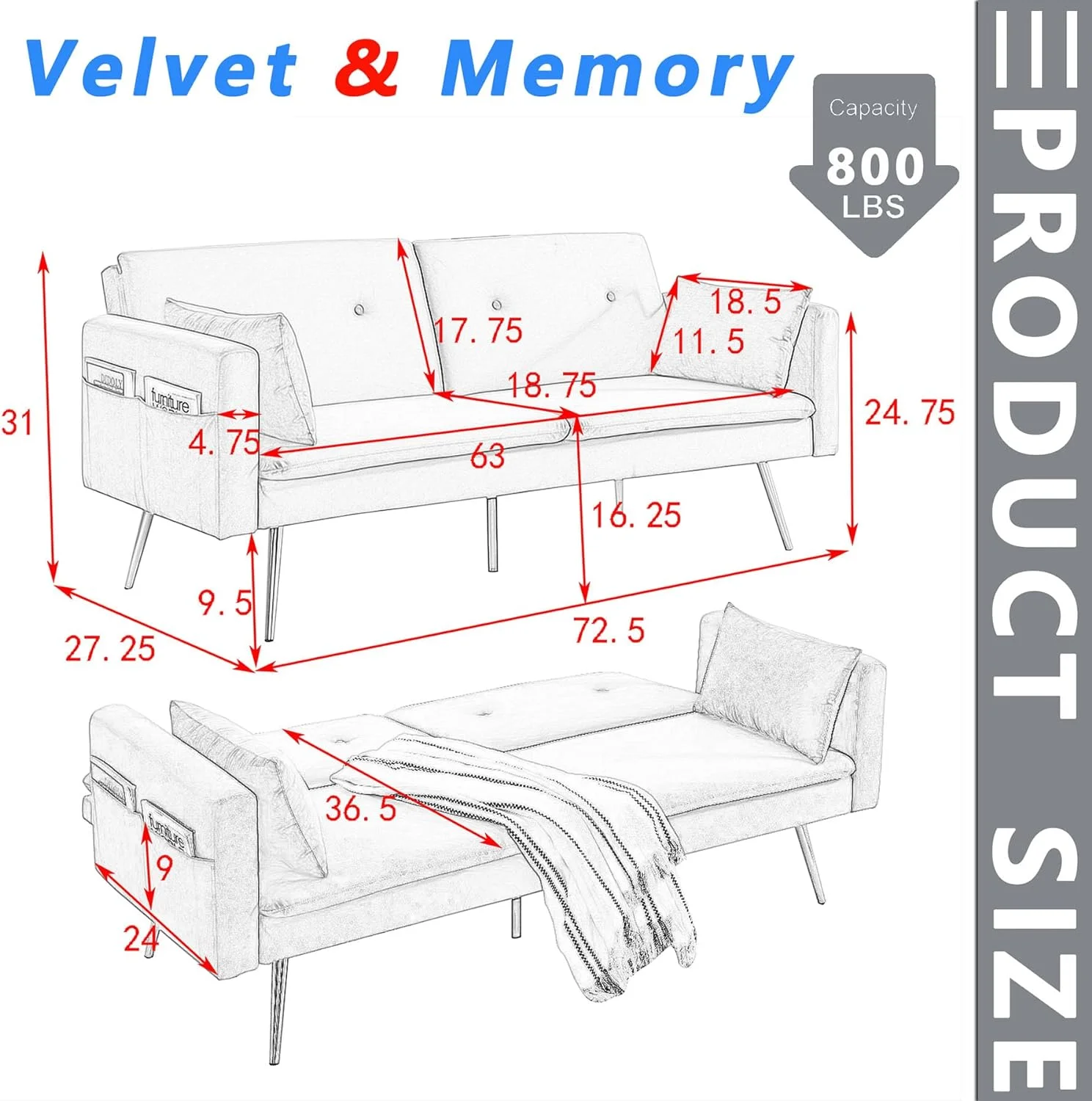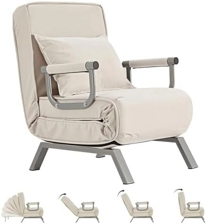 BALUS Modern Sleeper Chair, Durable & Cozy Linen Sofa Bed, Chaise Lounge for Small Space, Living Room (Dark Grey)