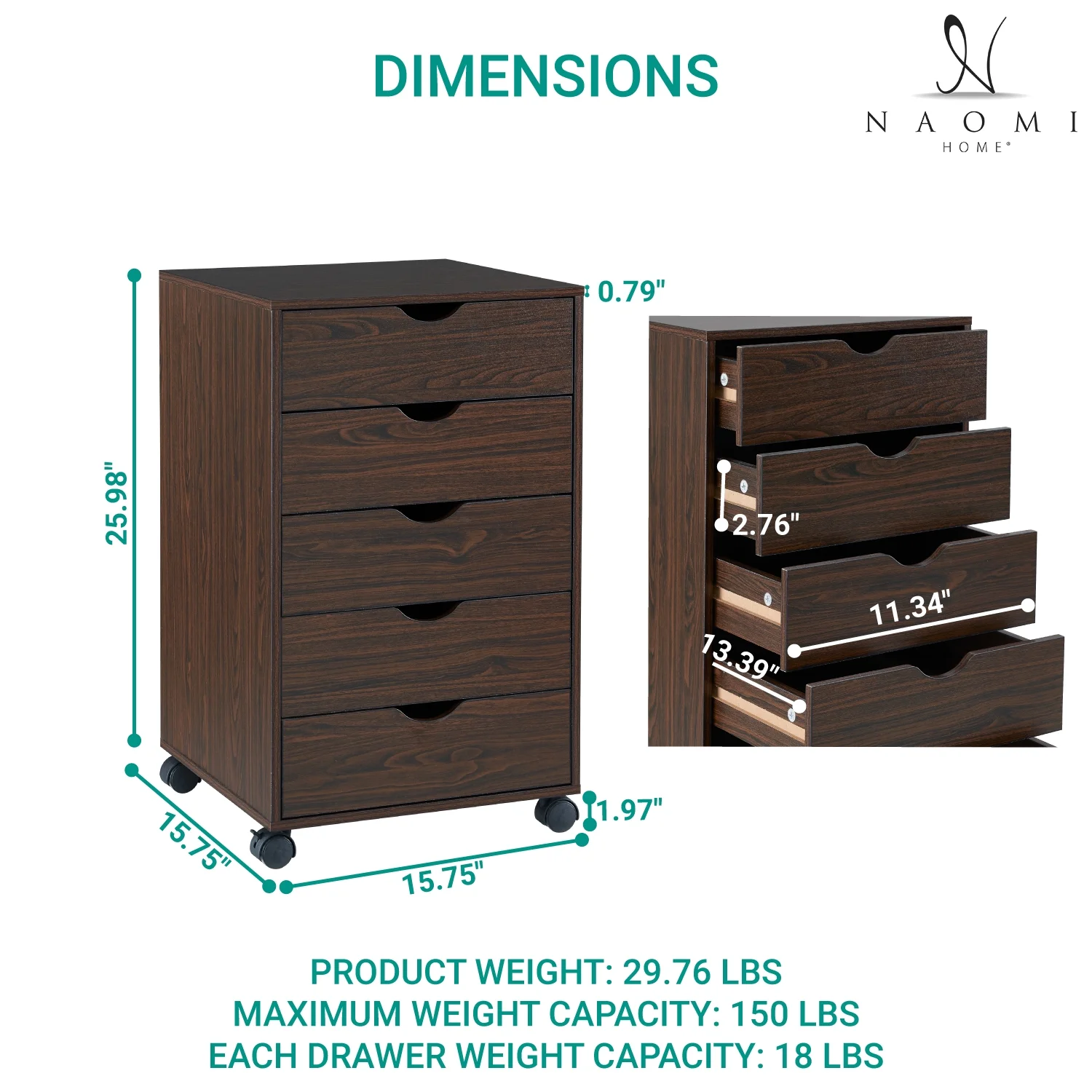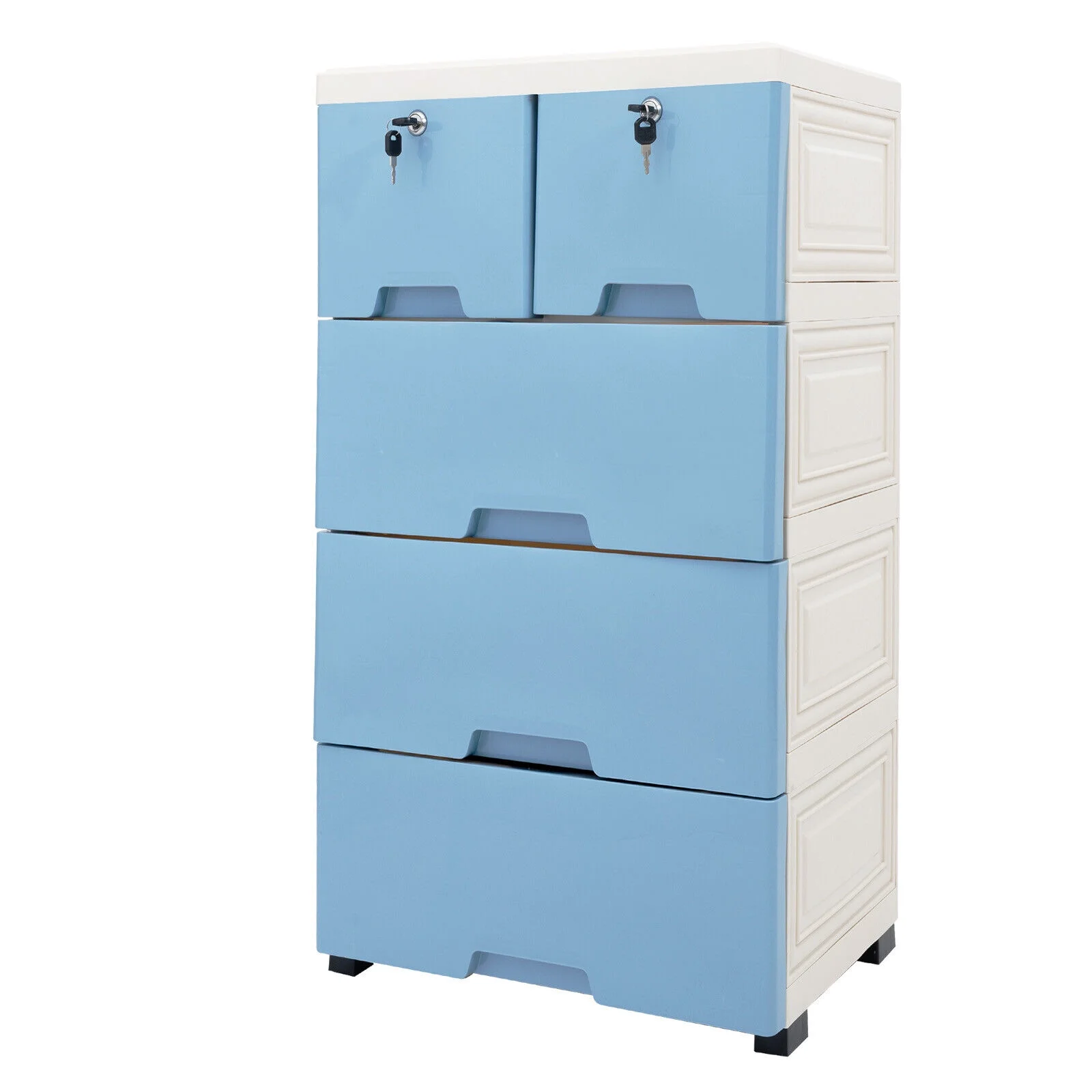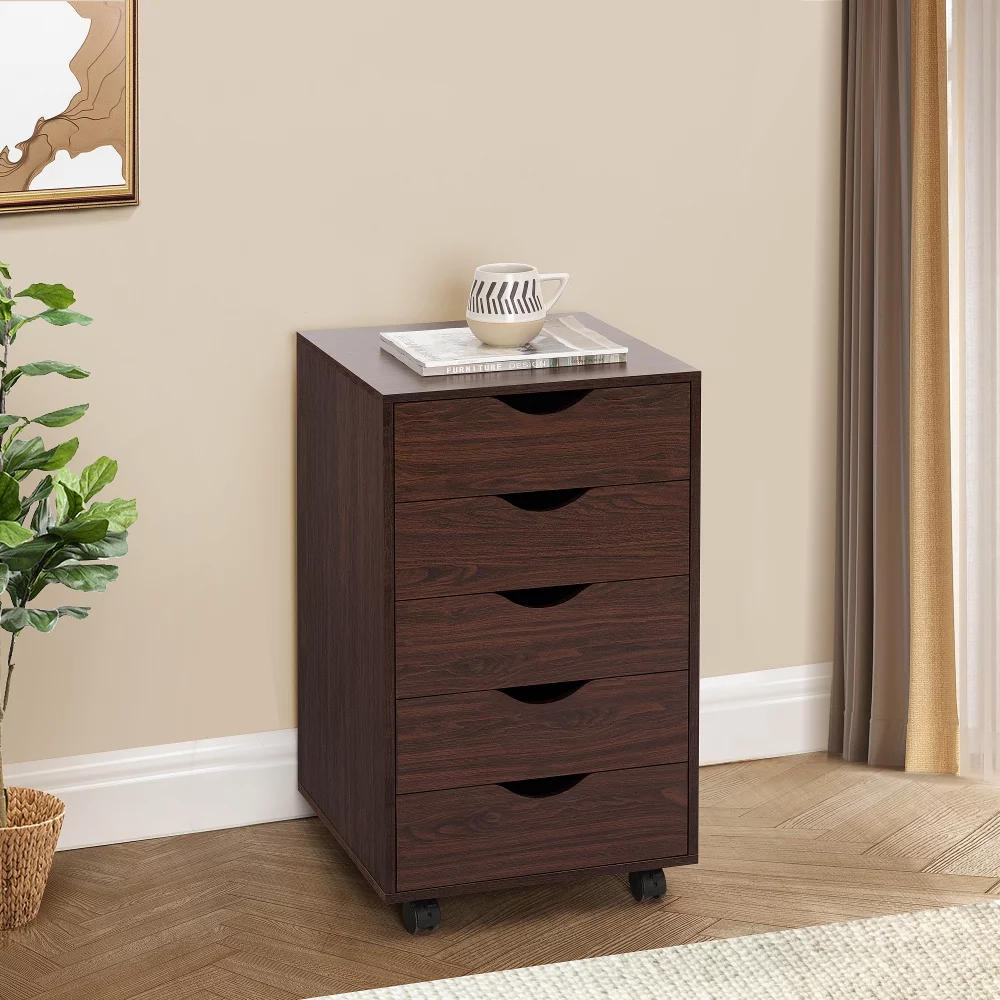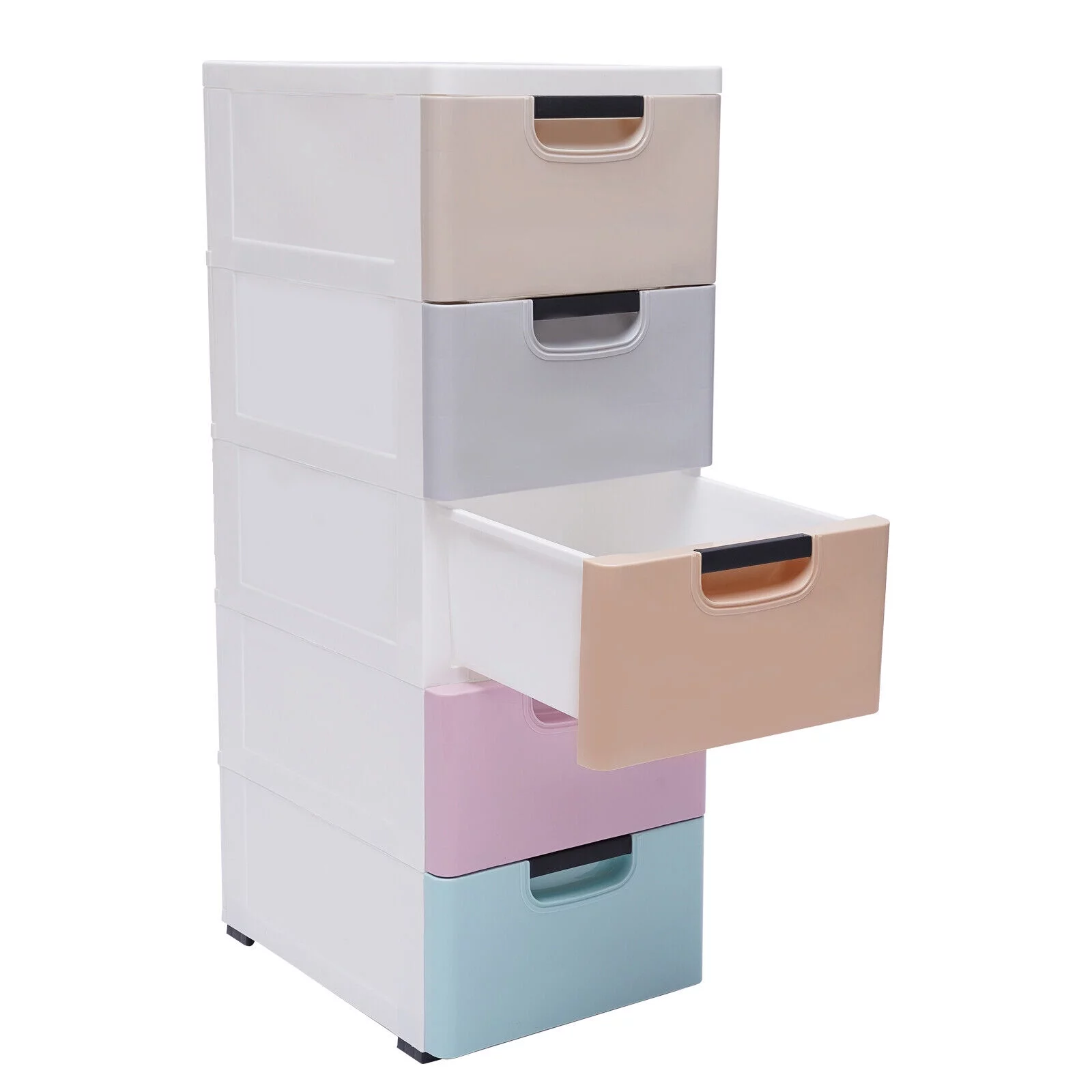 5 Layers Plastic Drawers Dresser with Curved Handle Bedroom Furniture Cabinet with Wheel Chest Closet Organizer Drawers
