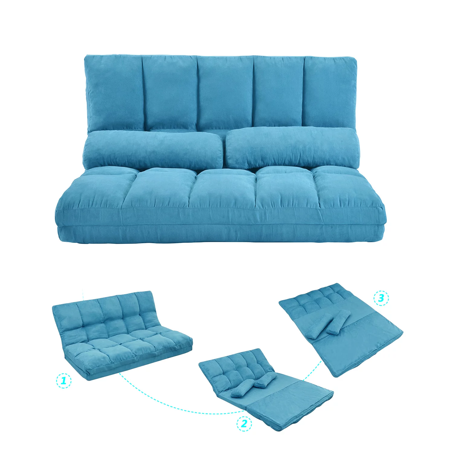 Chaise Lounge Sofa Adjustable Angle, Floor Couch with Two Pillows, 47 x 46 x 5 inches(Blue)