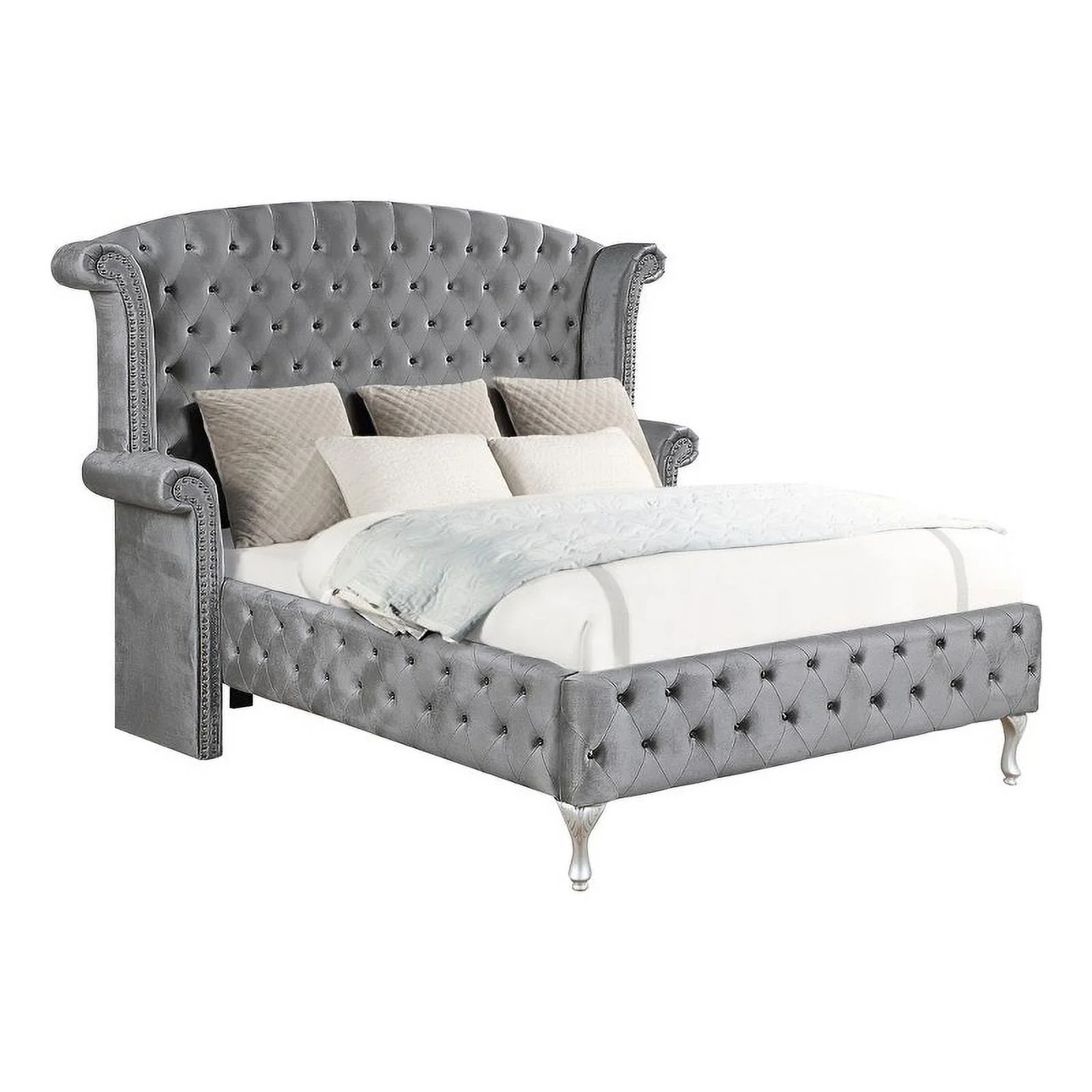 Pemberly Row Eastern King Contemporary Tufted Velvet Upholstered Bed Gray