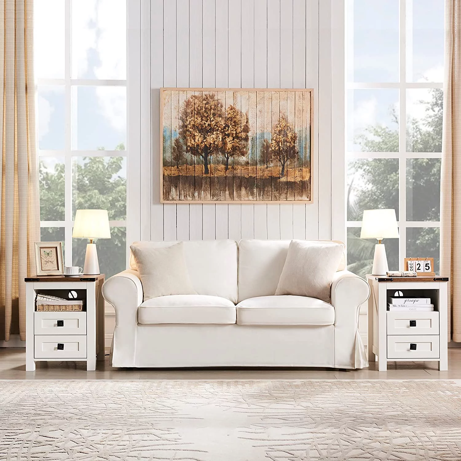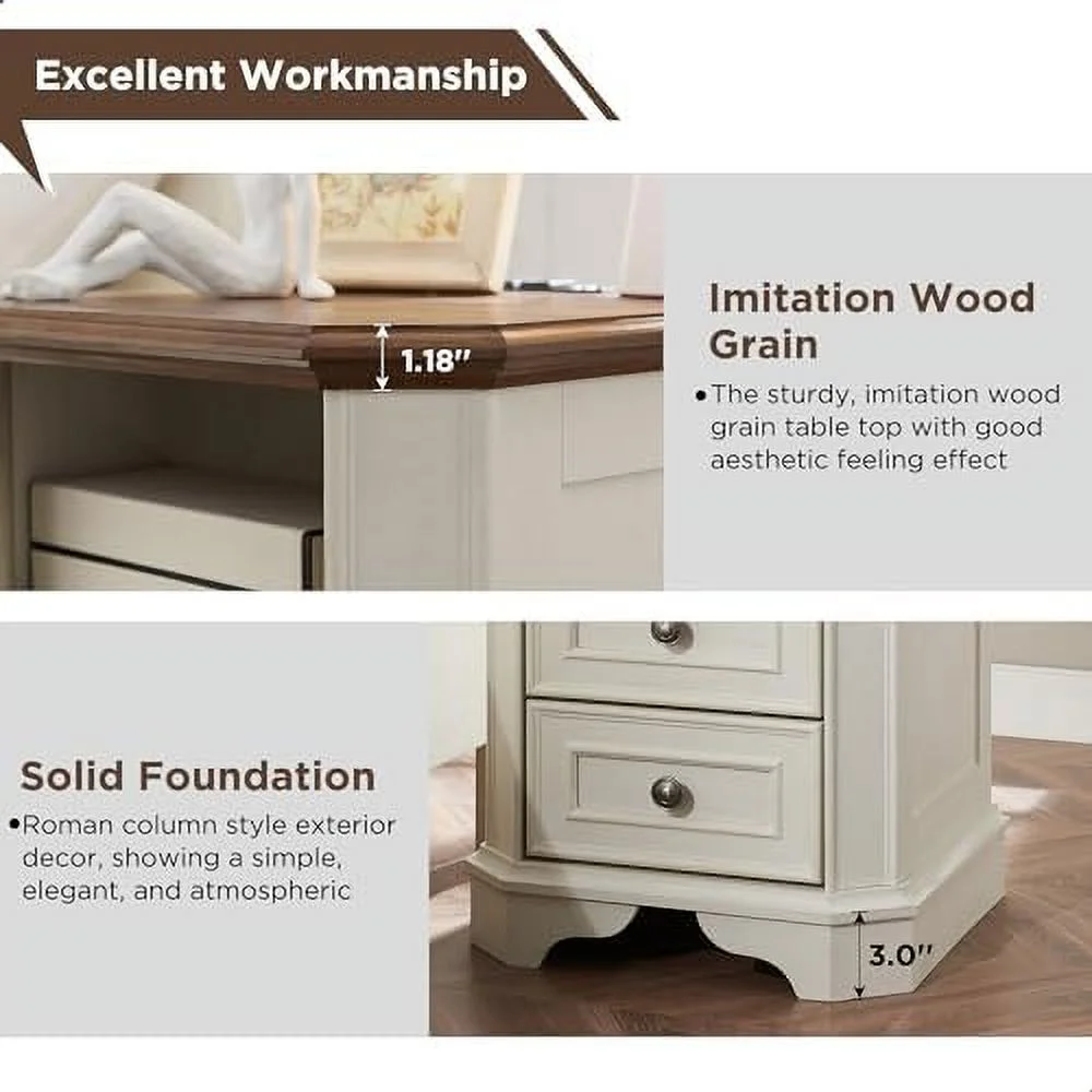Queen Size Bed 1pc Antique White Walnut Fluted Panels Headboard Footboard Bedroom Furniture Two Tone Solid wood Contemporary