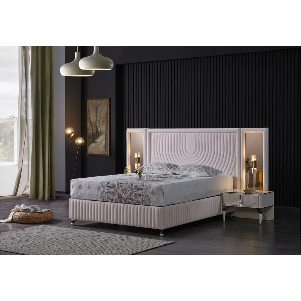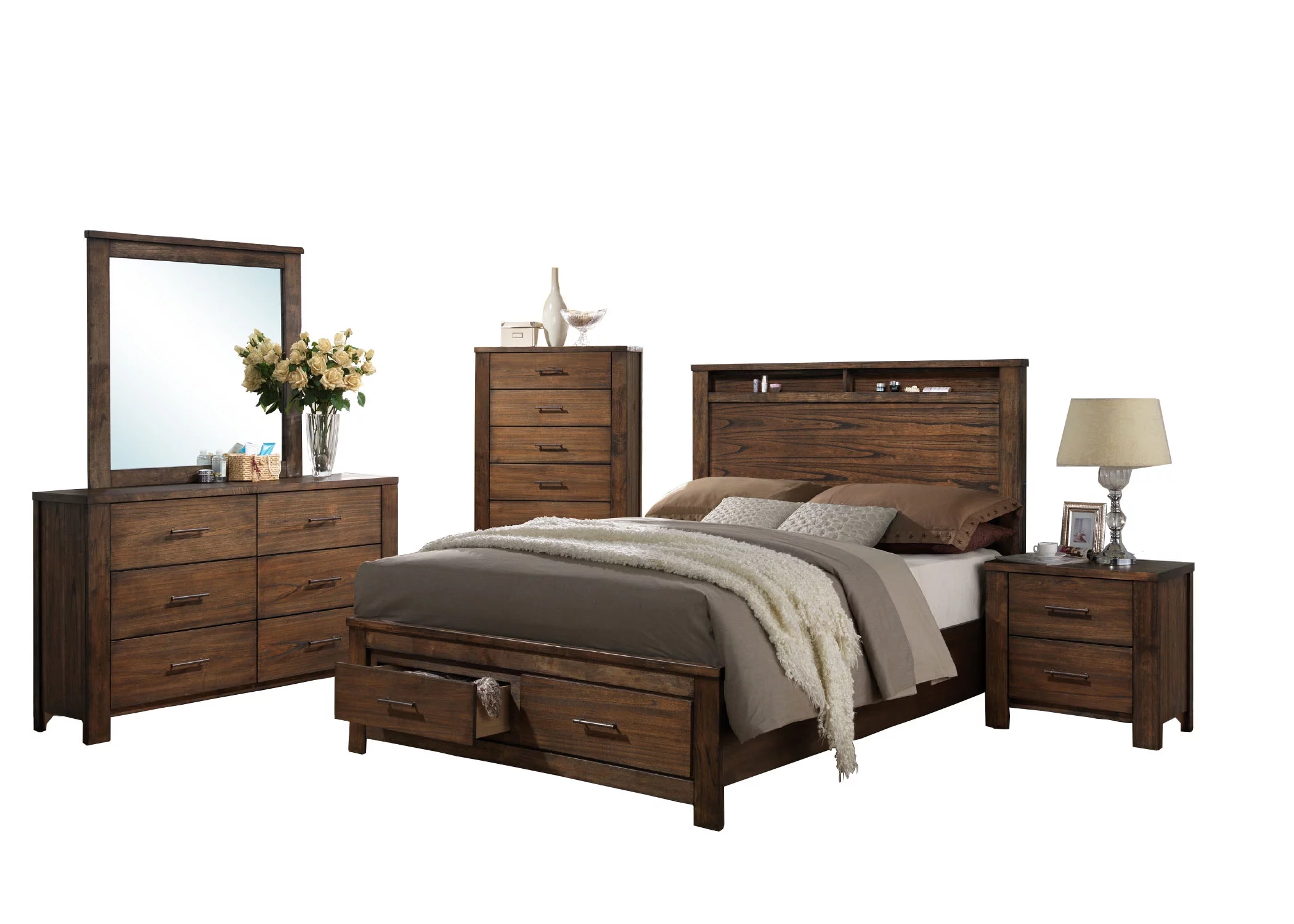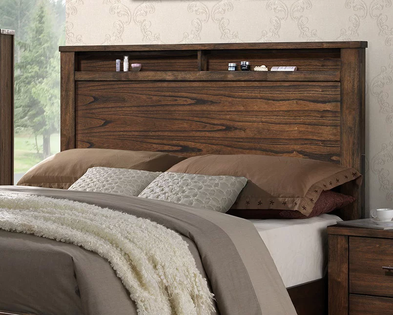 Natural Grey Finish 1pc Queen Size Bed Wooden Bedroom Furniture Drawers Footboard Upholstered Bedframe HB