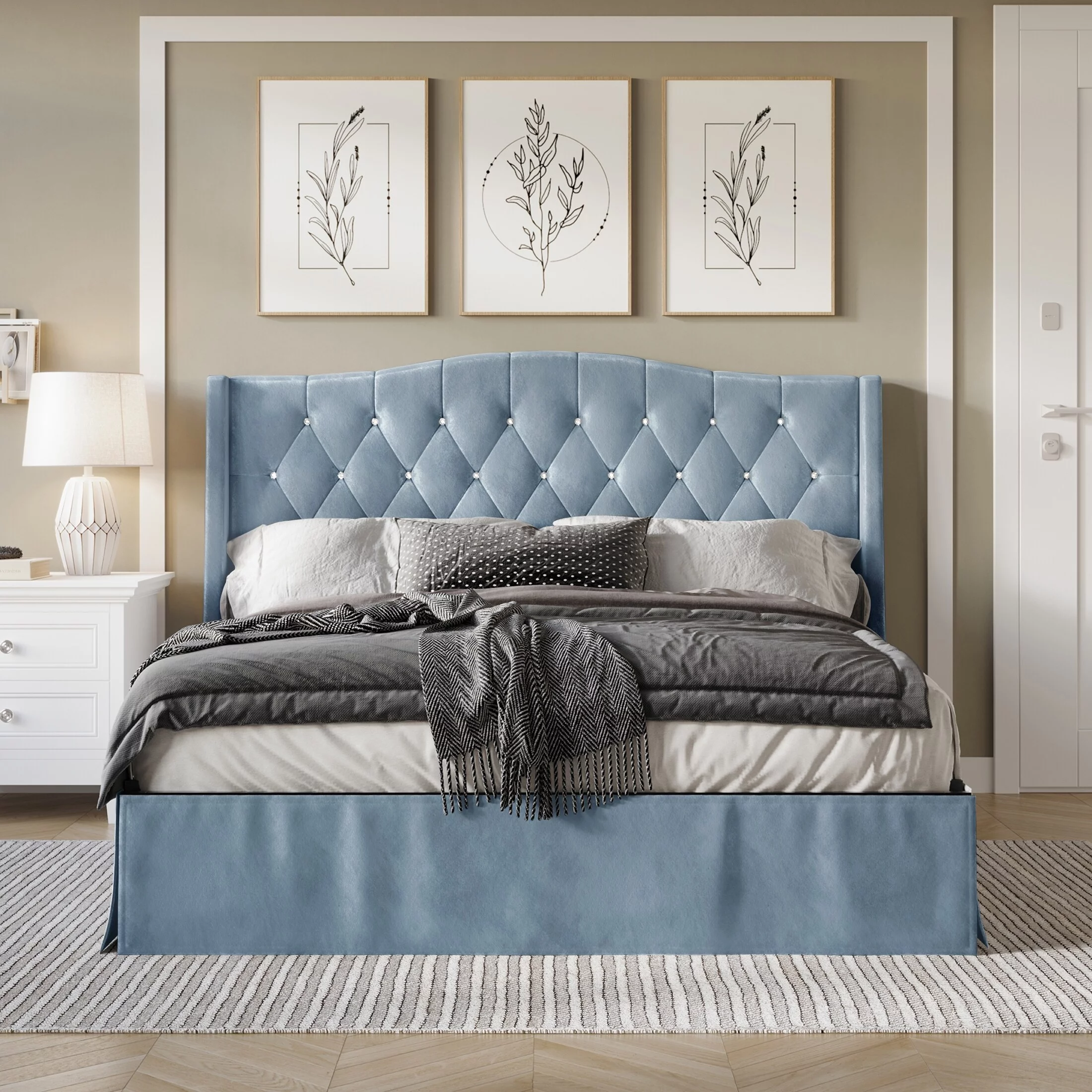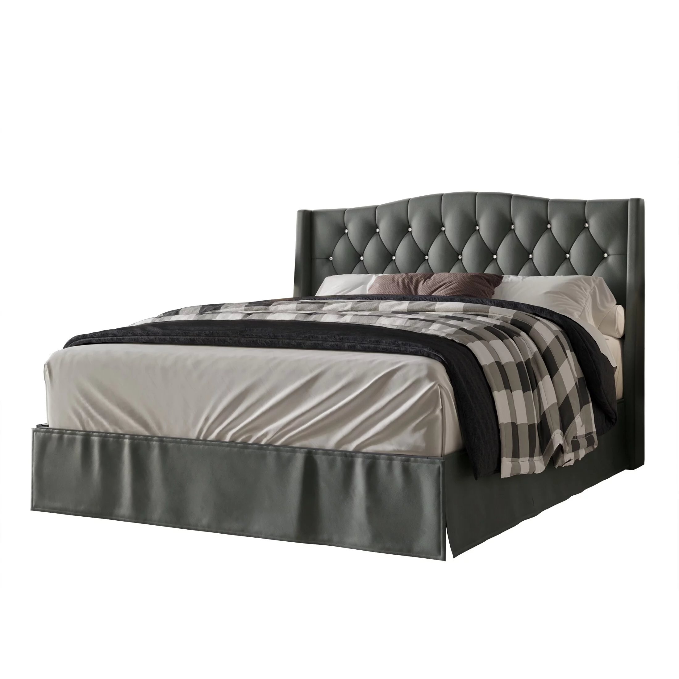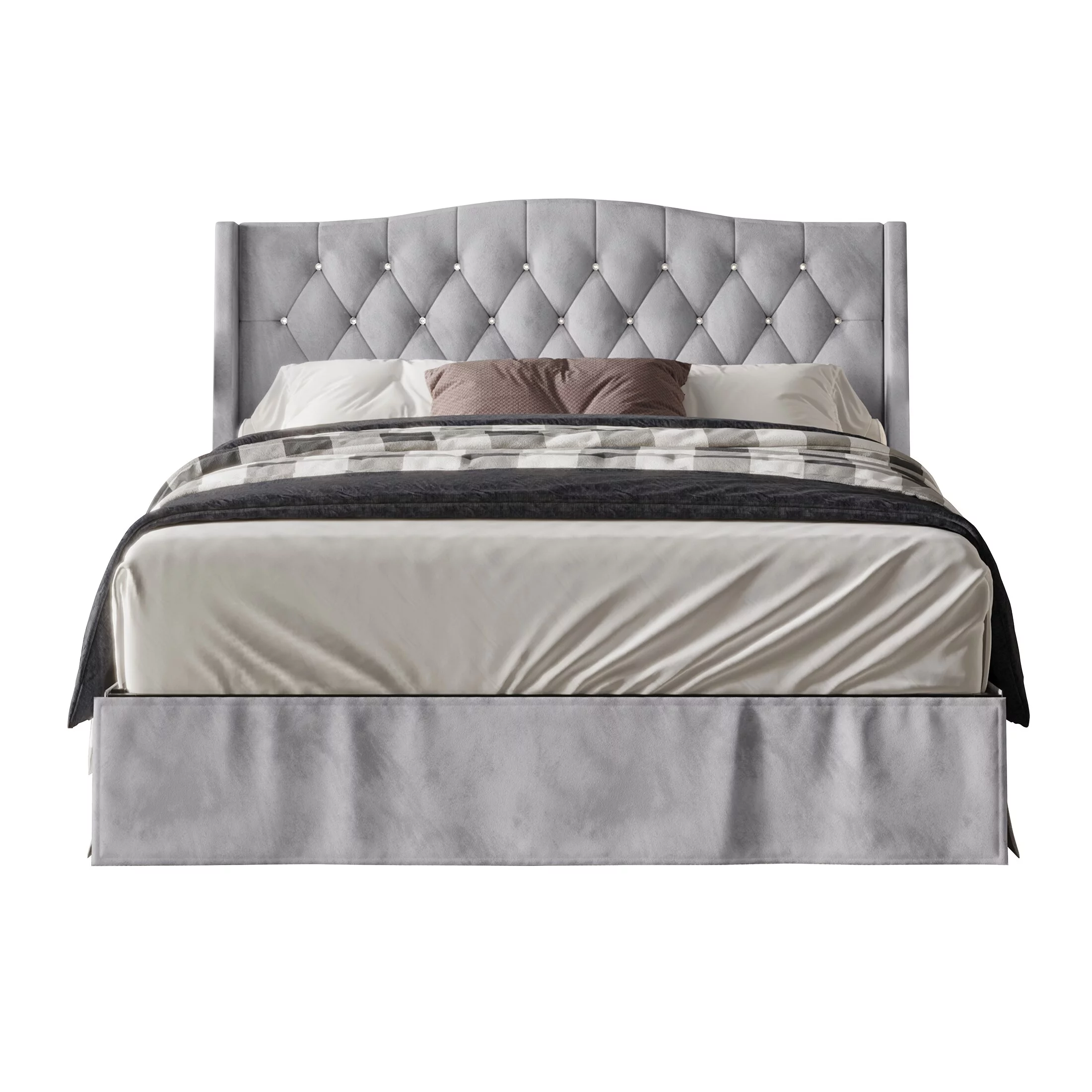 CraftPorch Glam Velvet Crystal Button Tufted Upholstered Platform Bed Silver Grey Full