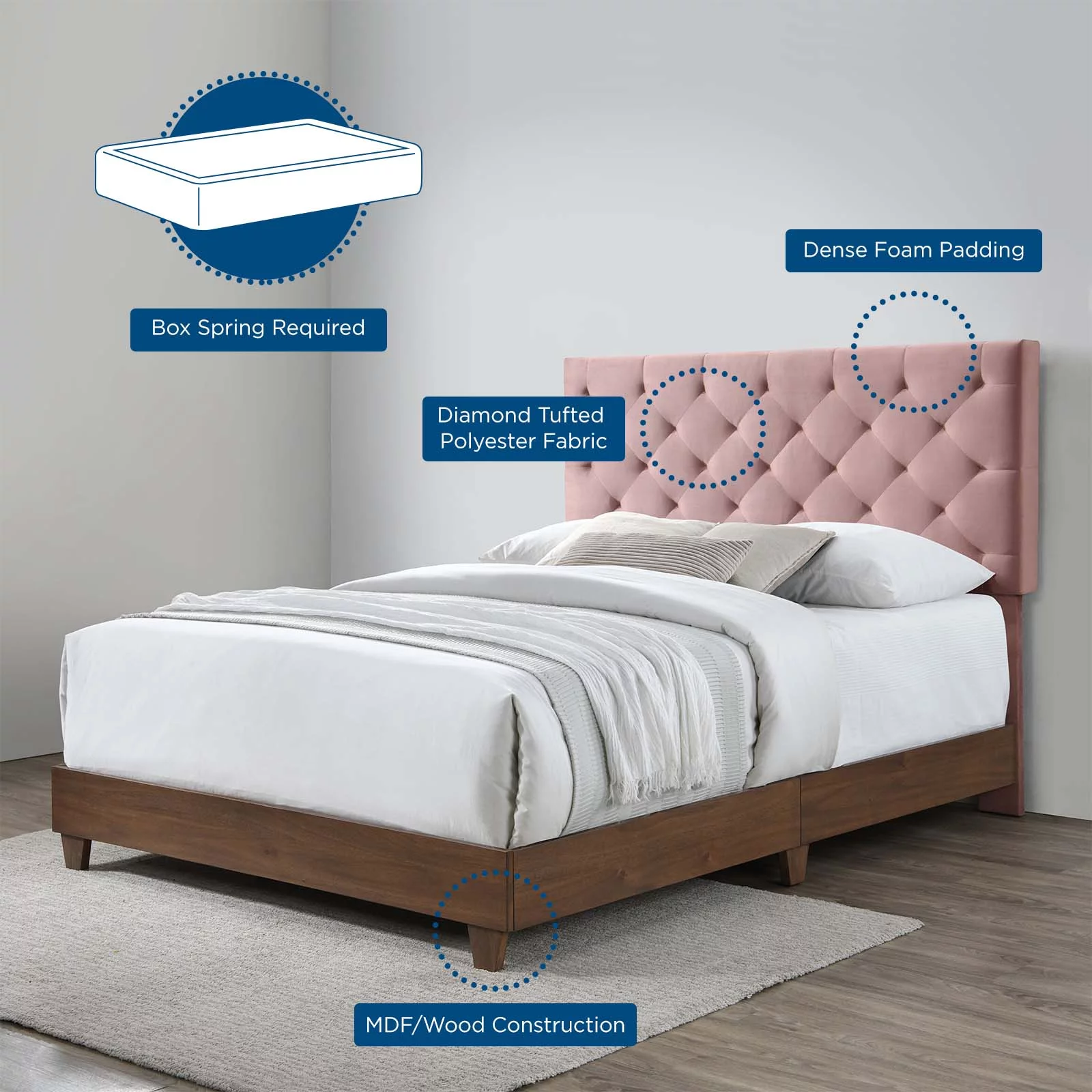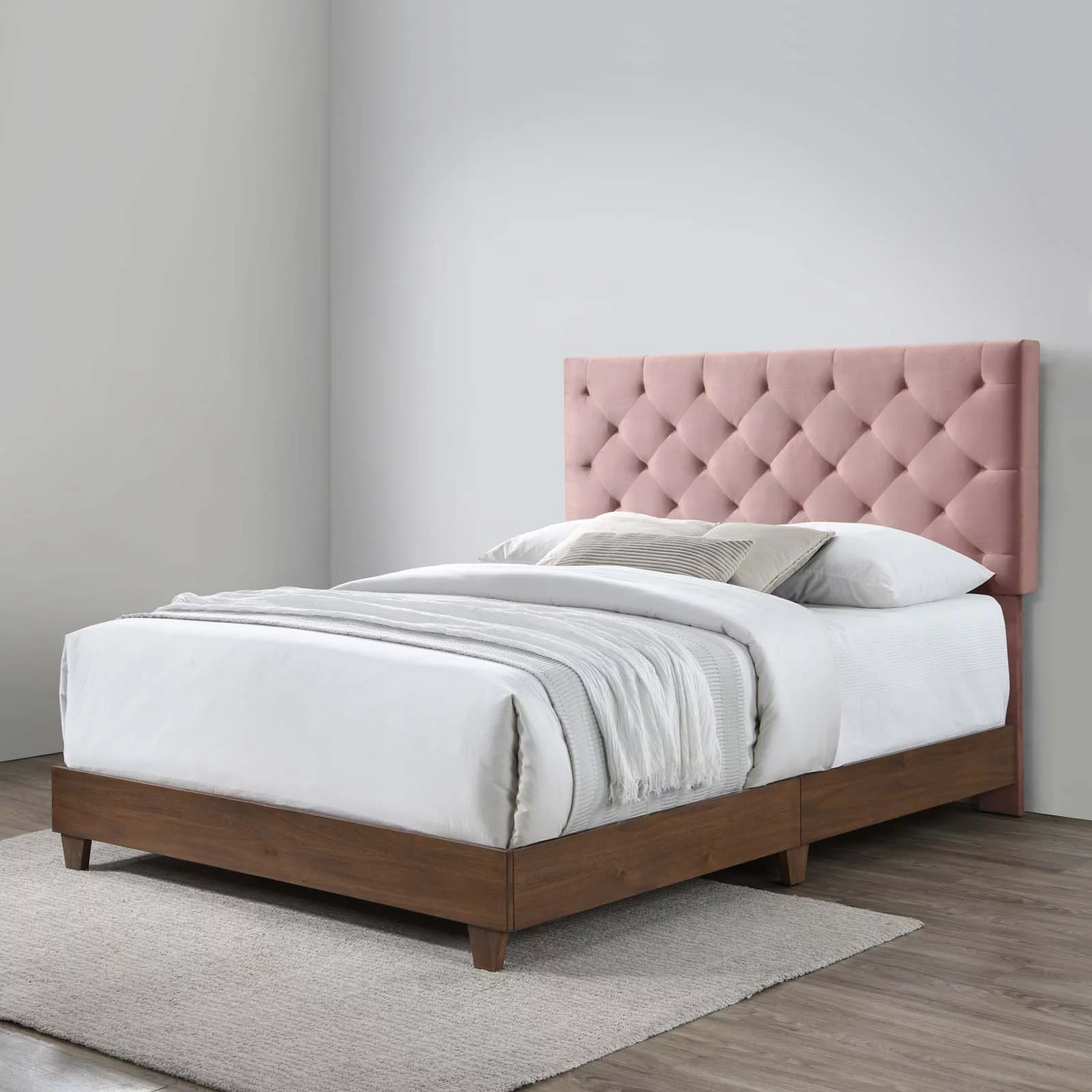 Modway Rhiannon Diamond Tufted Upholstered Performance Velvet Queen Bed in Walnut Dusty Rose