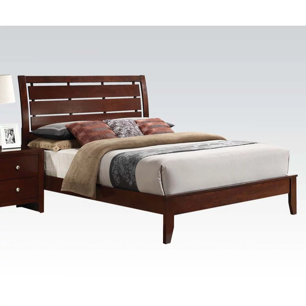 Contemporary 1Pc Queen Size Panel Bed Wooden Home Bedroom Furniture Brown Cherry Finish