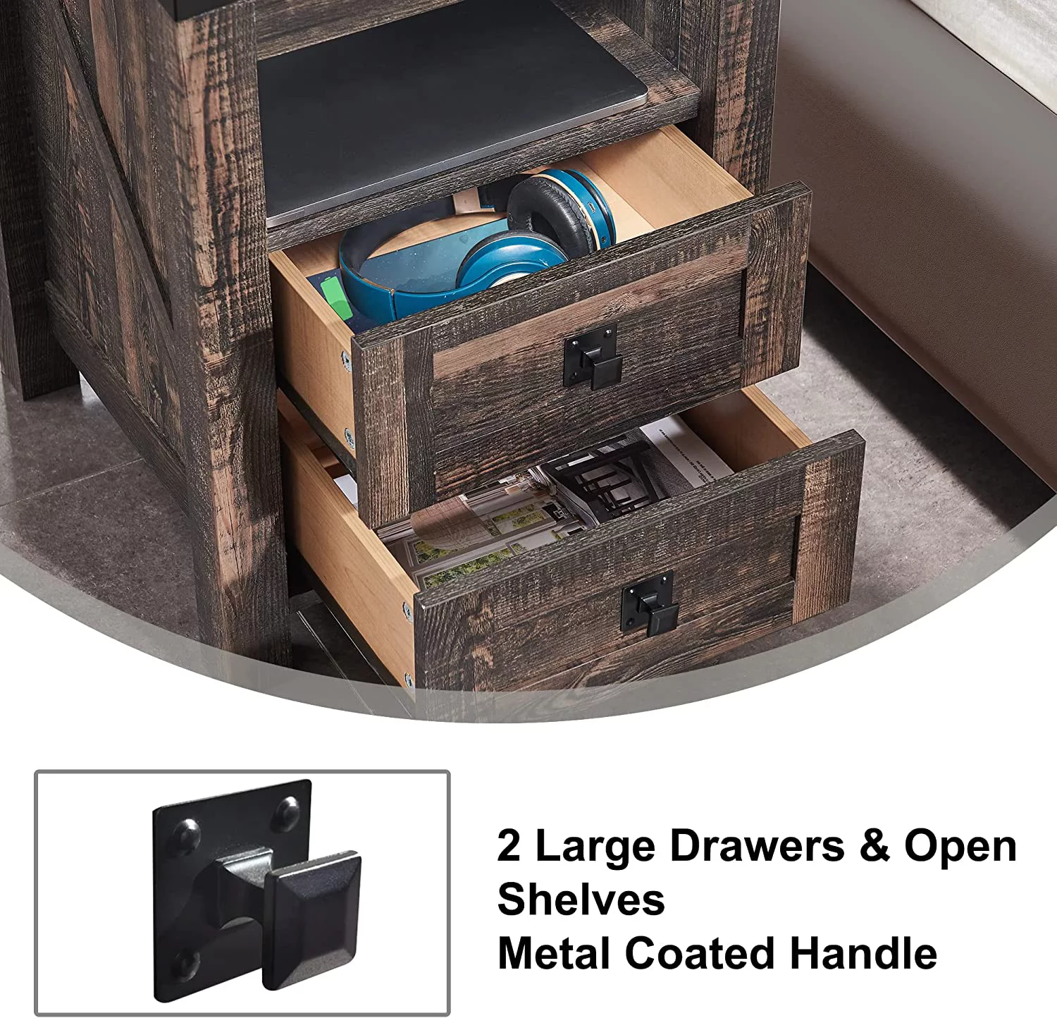 Queen Size Bed w/2 Underbed Drawers 1pc Set Bedroom Furniture Luxury Classic Grey Finish Wooden Bedframe