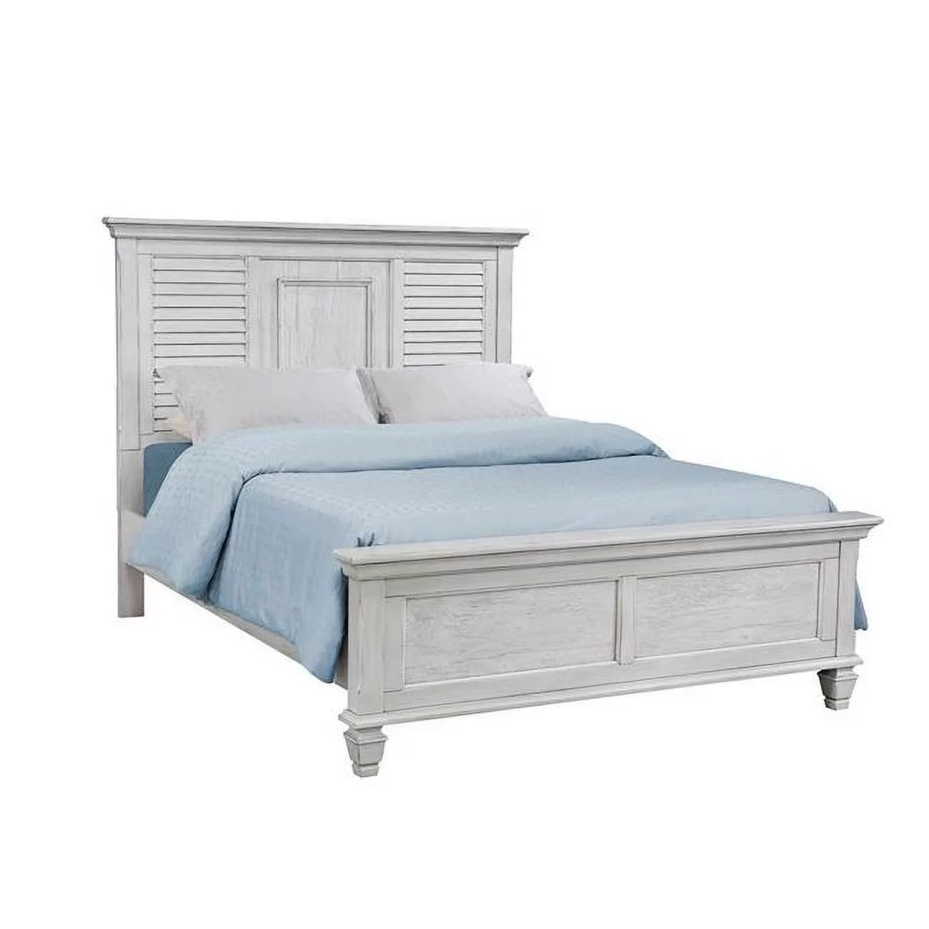 Molded Trim Antique White Pine Wood Shutter Headboard Eli Queen Size Panel Bed