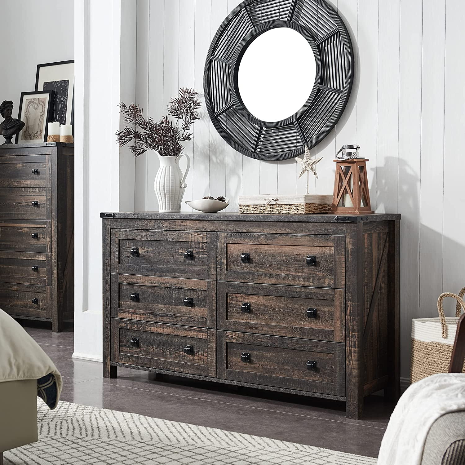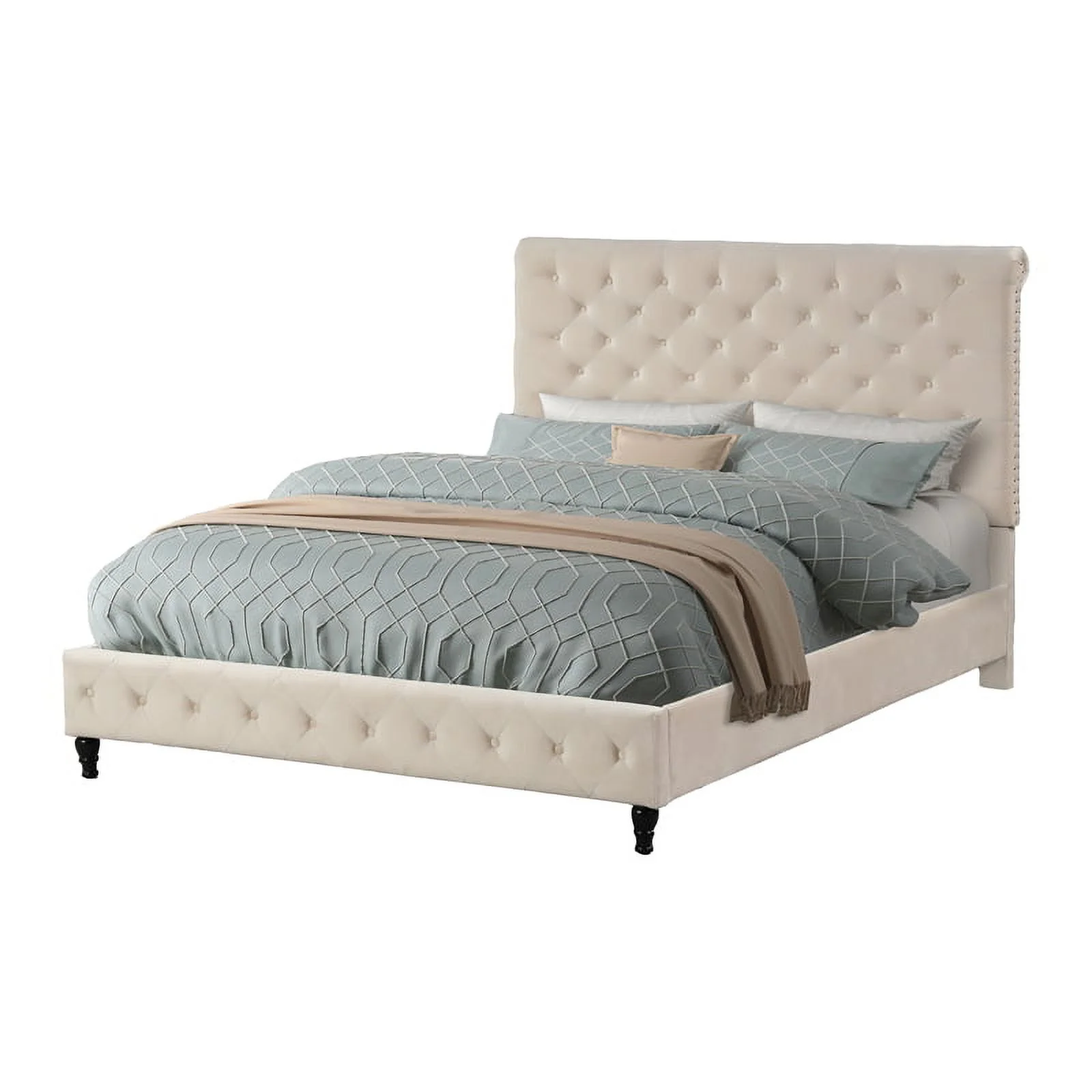 6pc Modern Glam Queen Size Panel Bed Set Button-Tufted Headboard Dark Gray Finish Bedroom Furniture