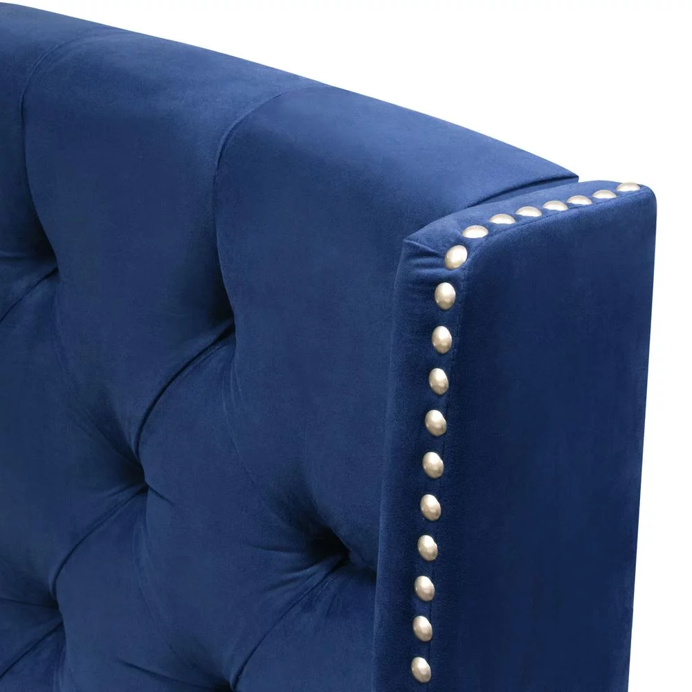 Majestic Eastern King Tufted Bed in Royal Navy Velvet, Nail Head Wing Accents