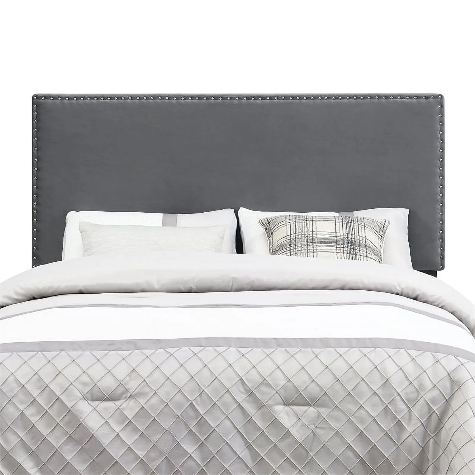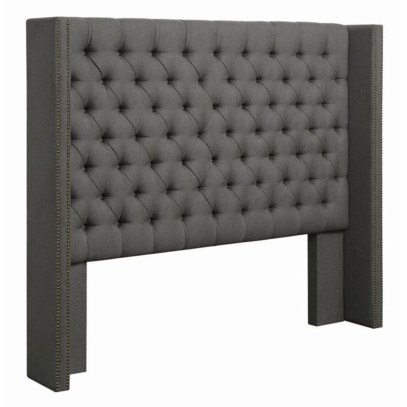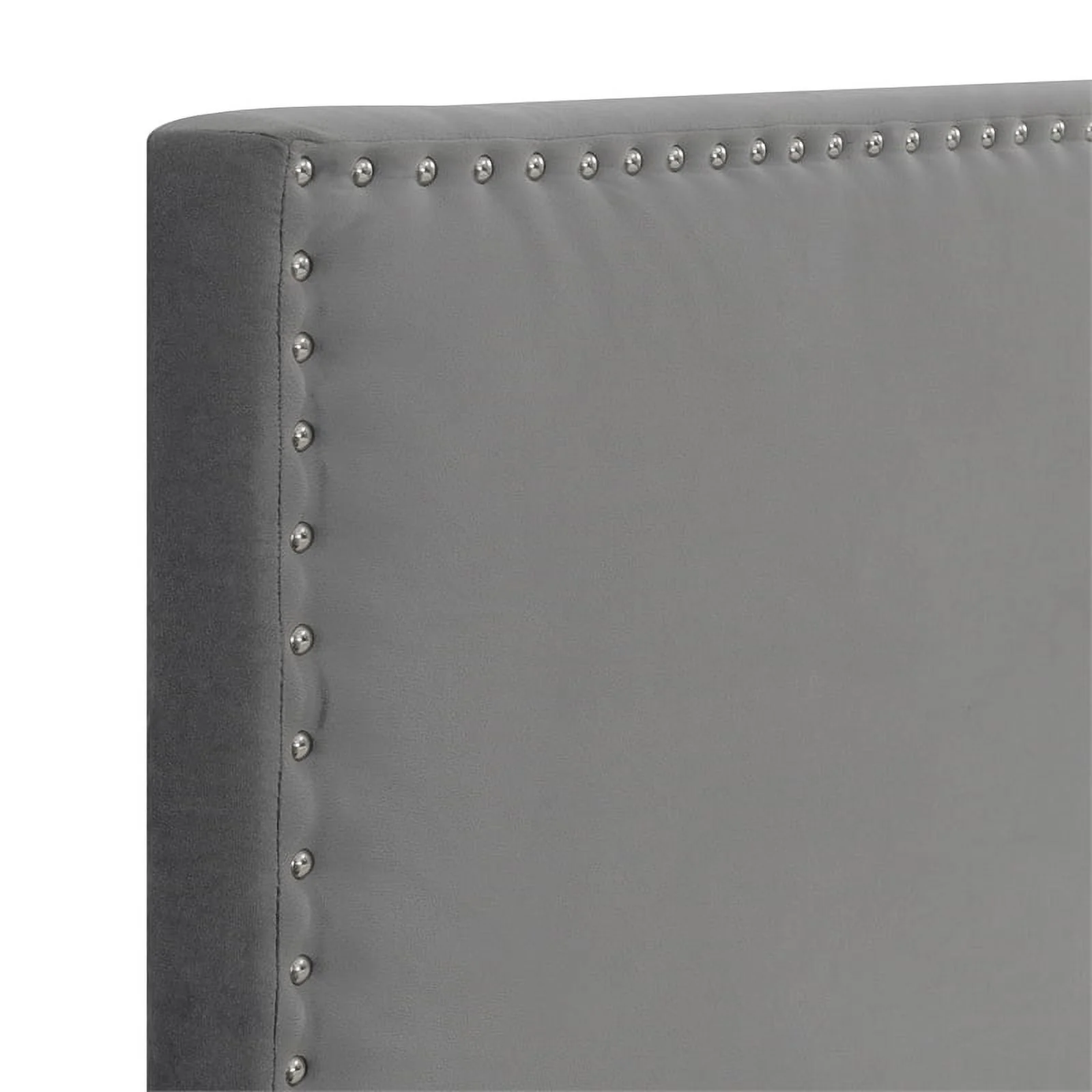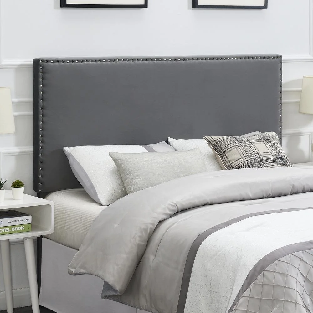 Bergen Gray Polyester Fabric Upholstered Queen Headboard with Nailhead Trim