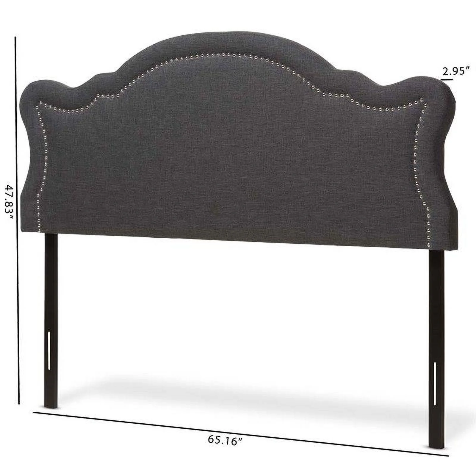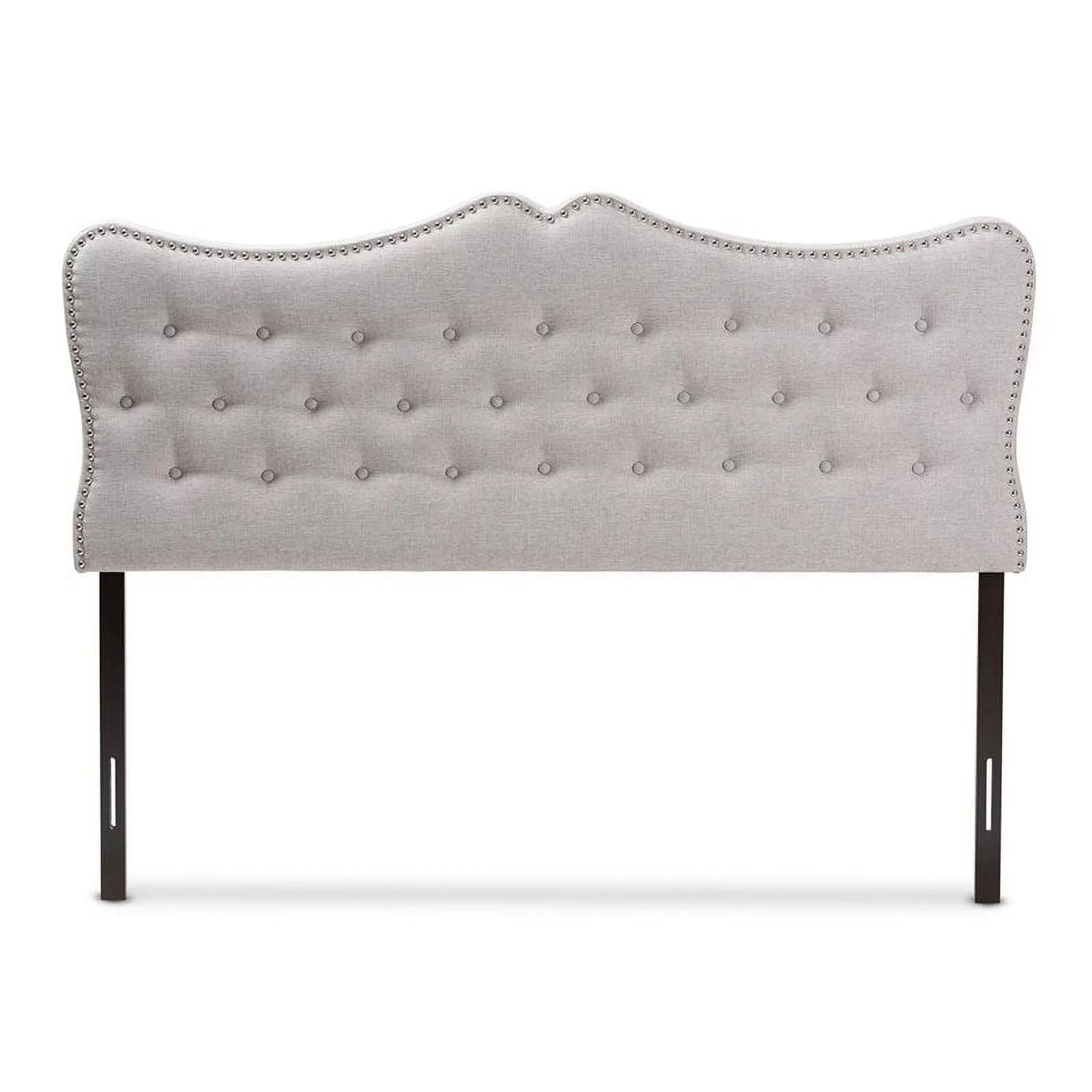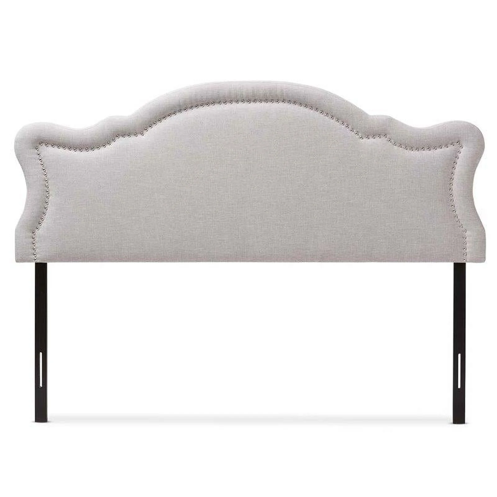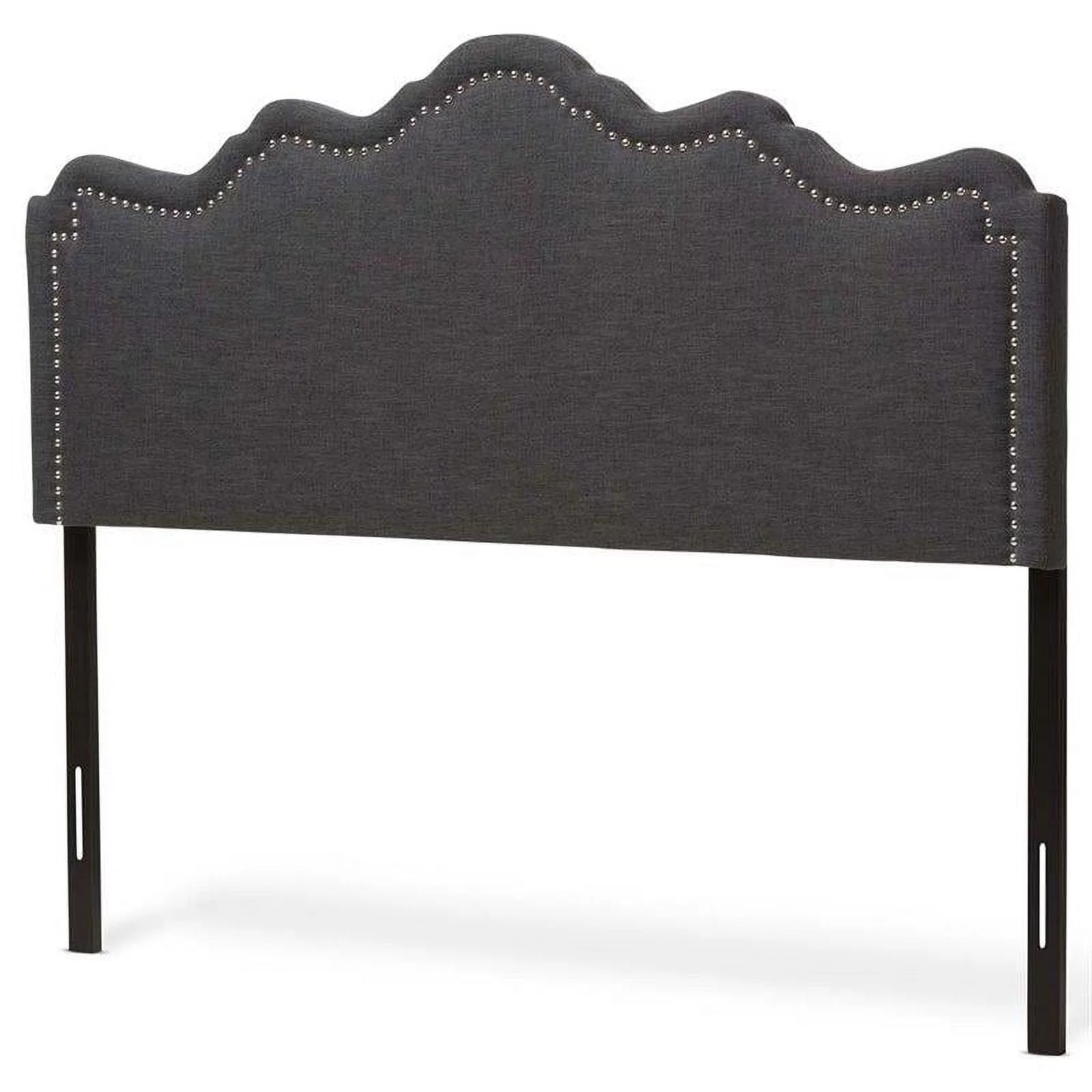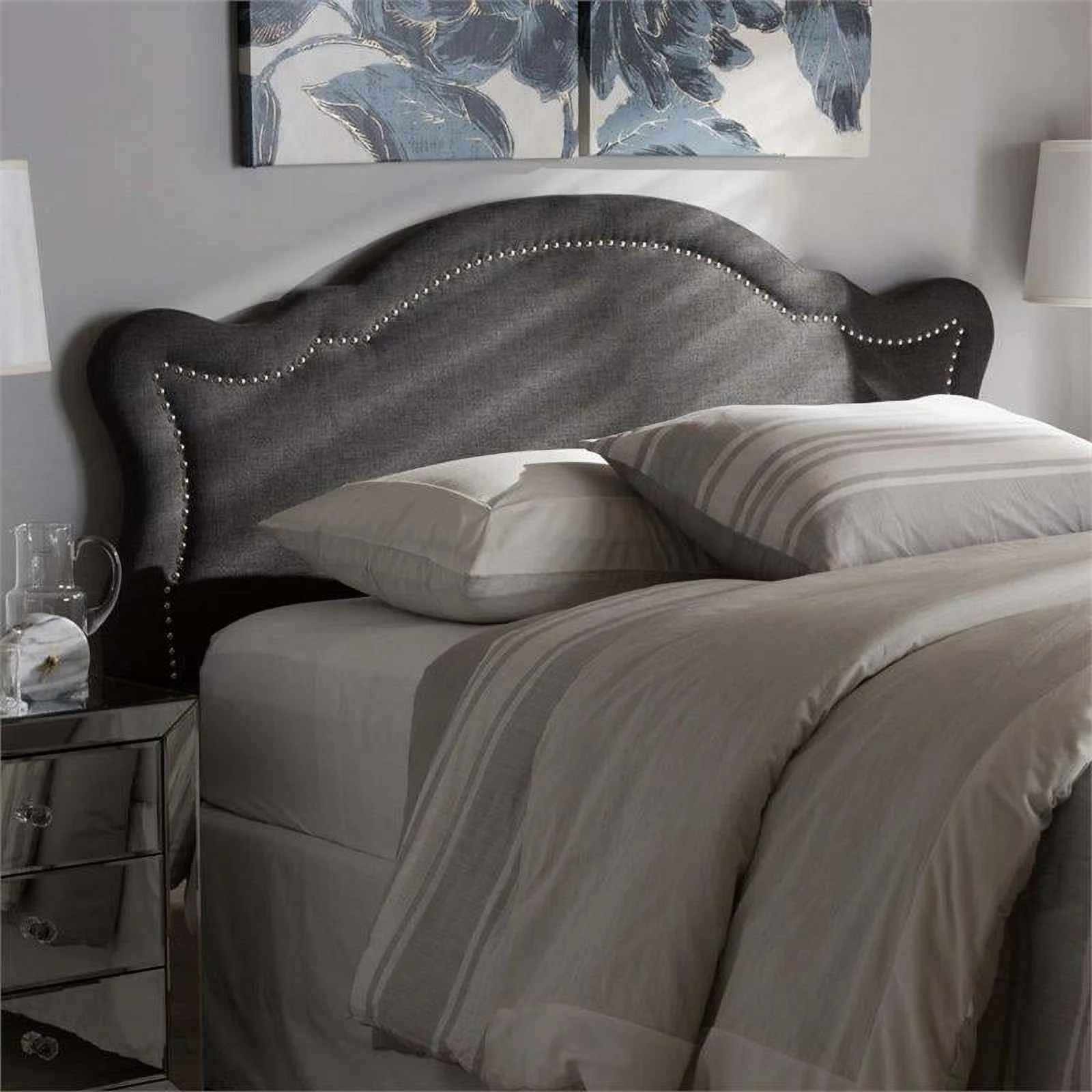 Bergen Gray Polyester Fabric Upholstered Queen Headboard with Nailhead Trim