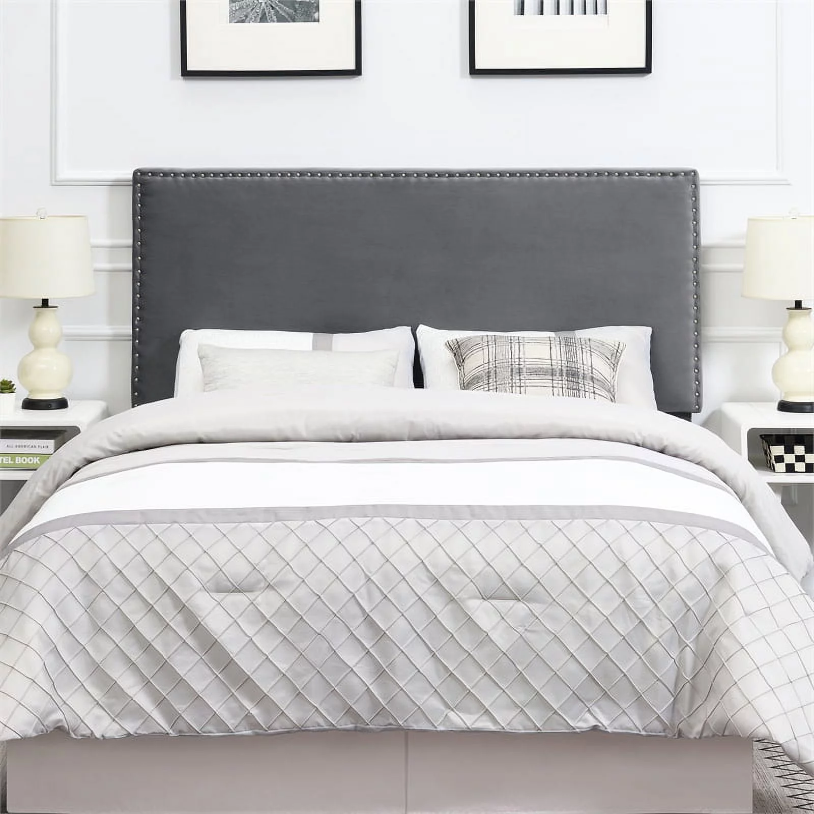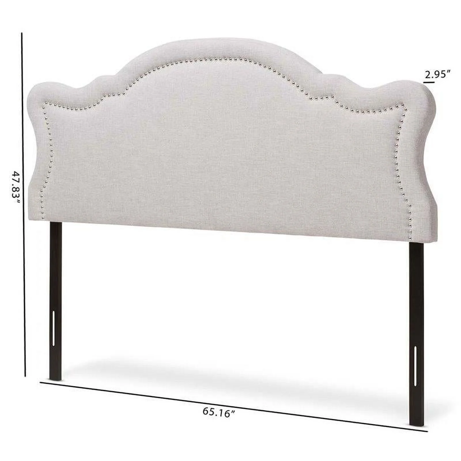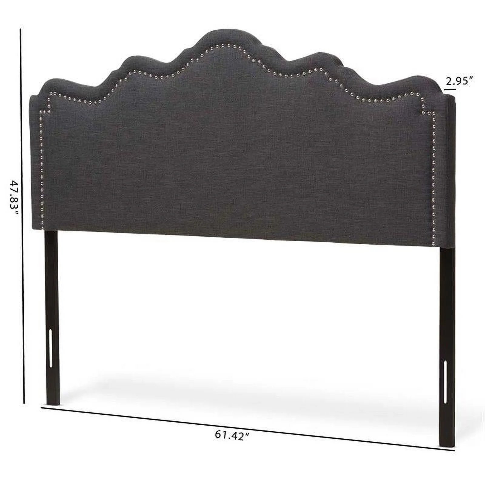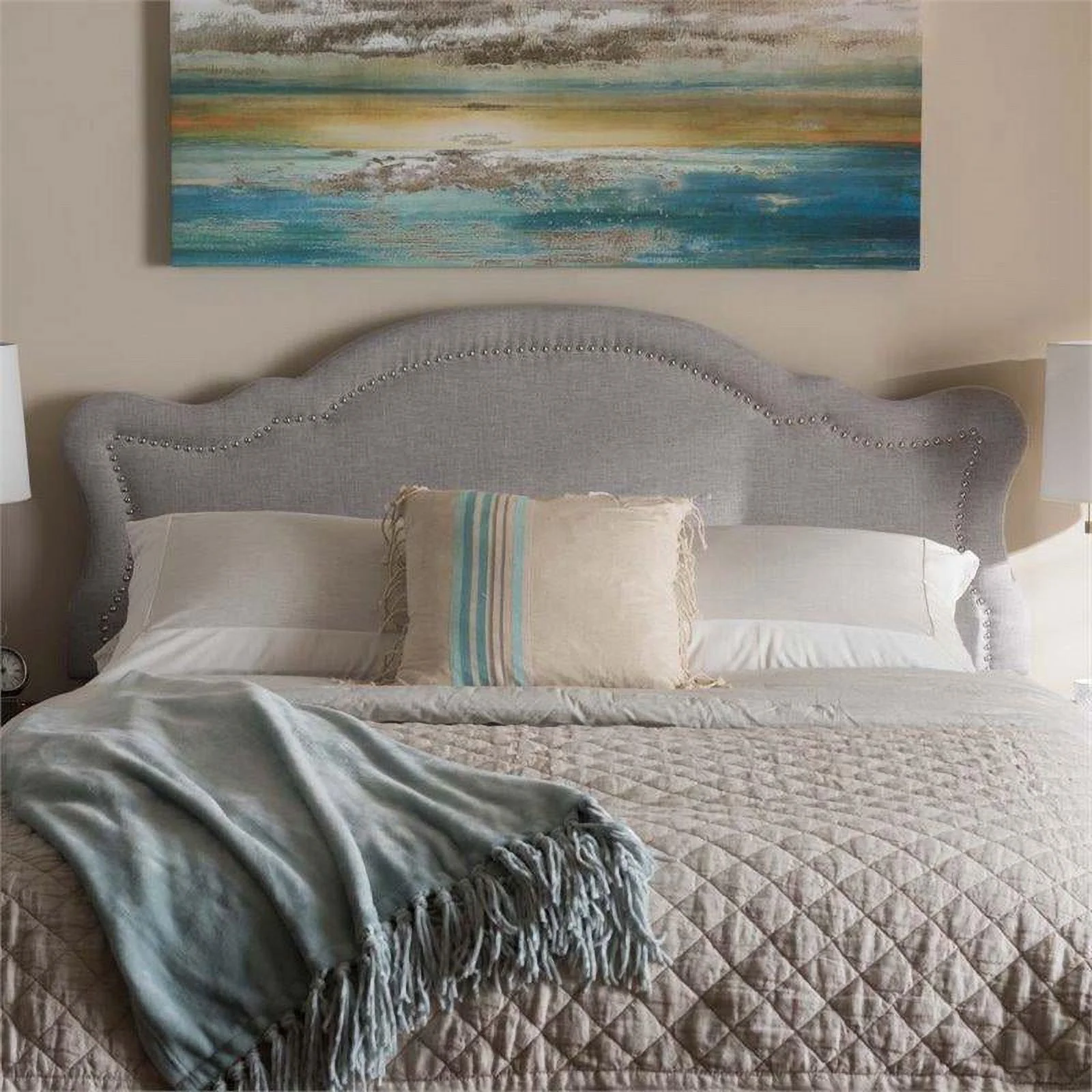 Bergen Gray Polyester Fabric Upholstered Queen Headboard with Nailhead Trim