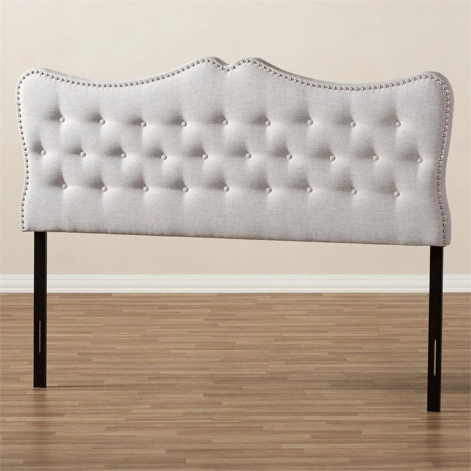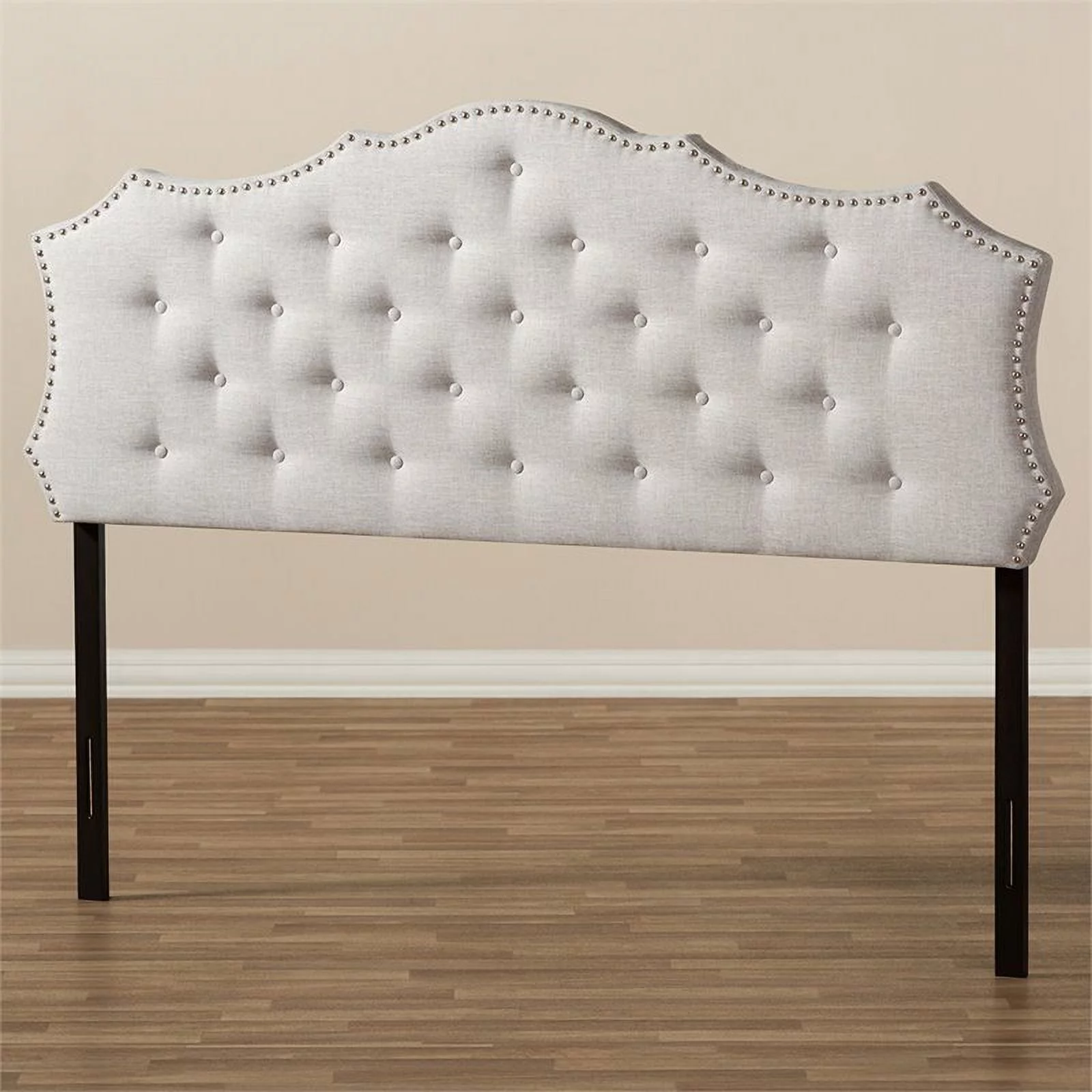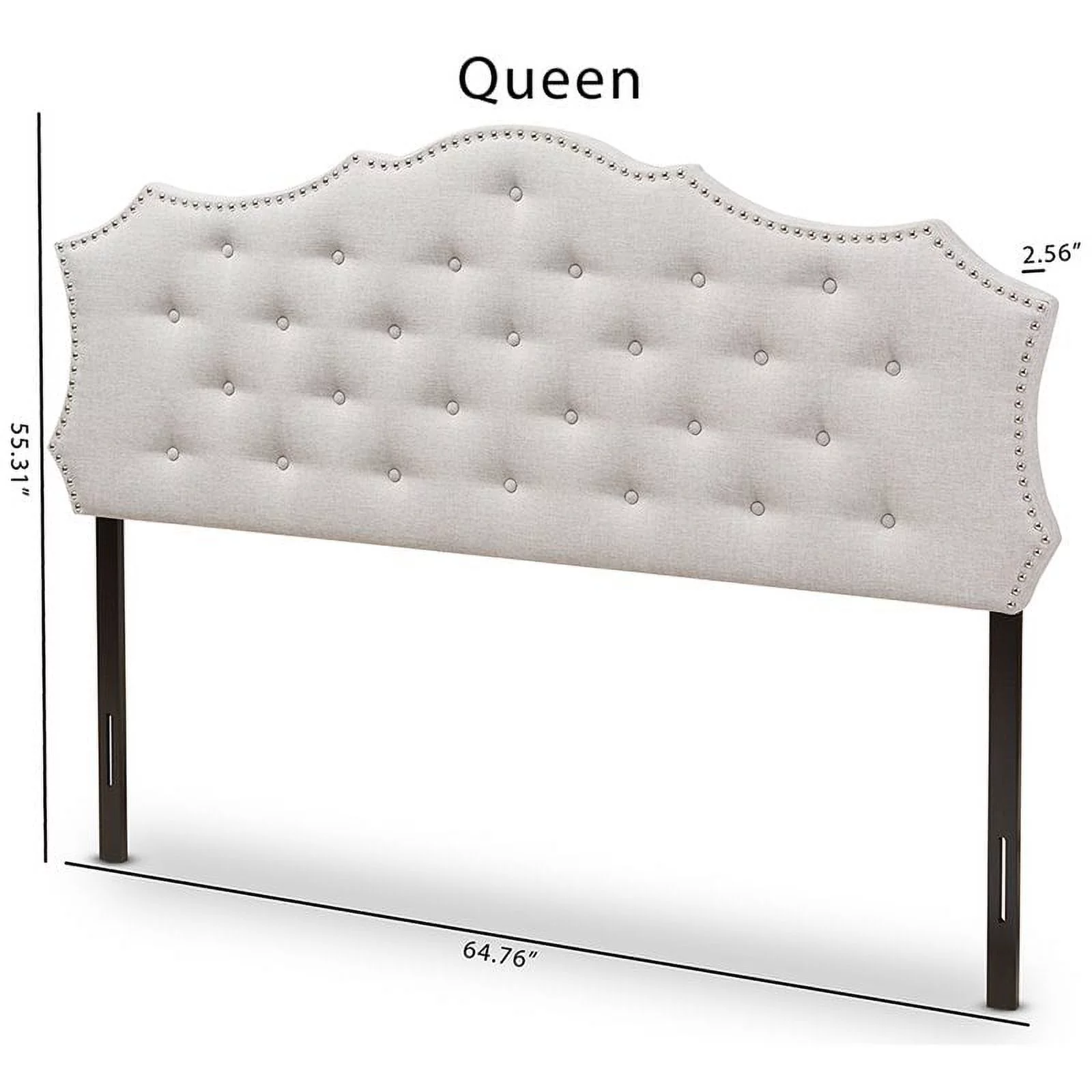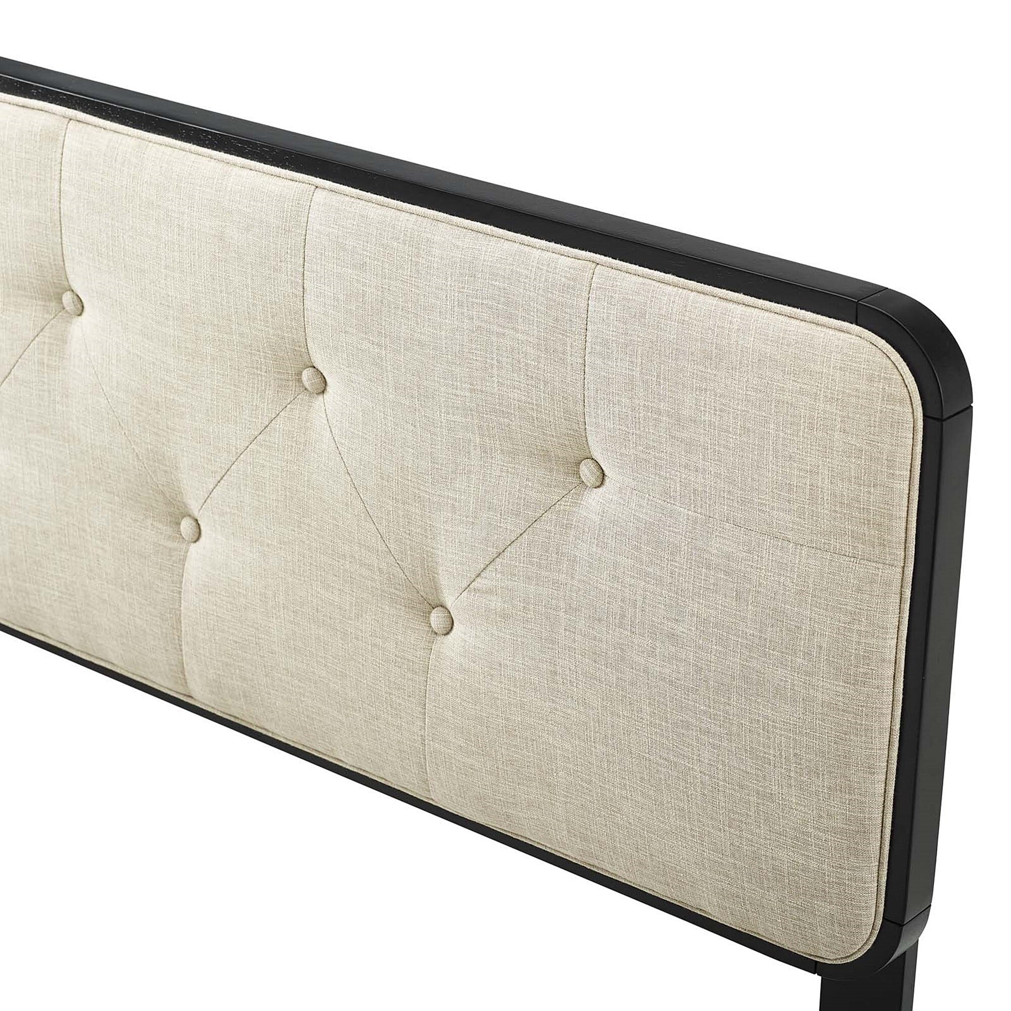 BSD National Supplies Glendale Traditional Beige Fabric Button Tufted Queen Size Black Wooden Headboard