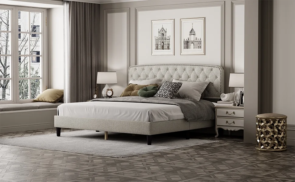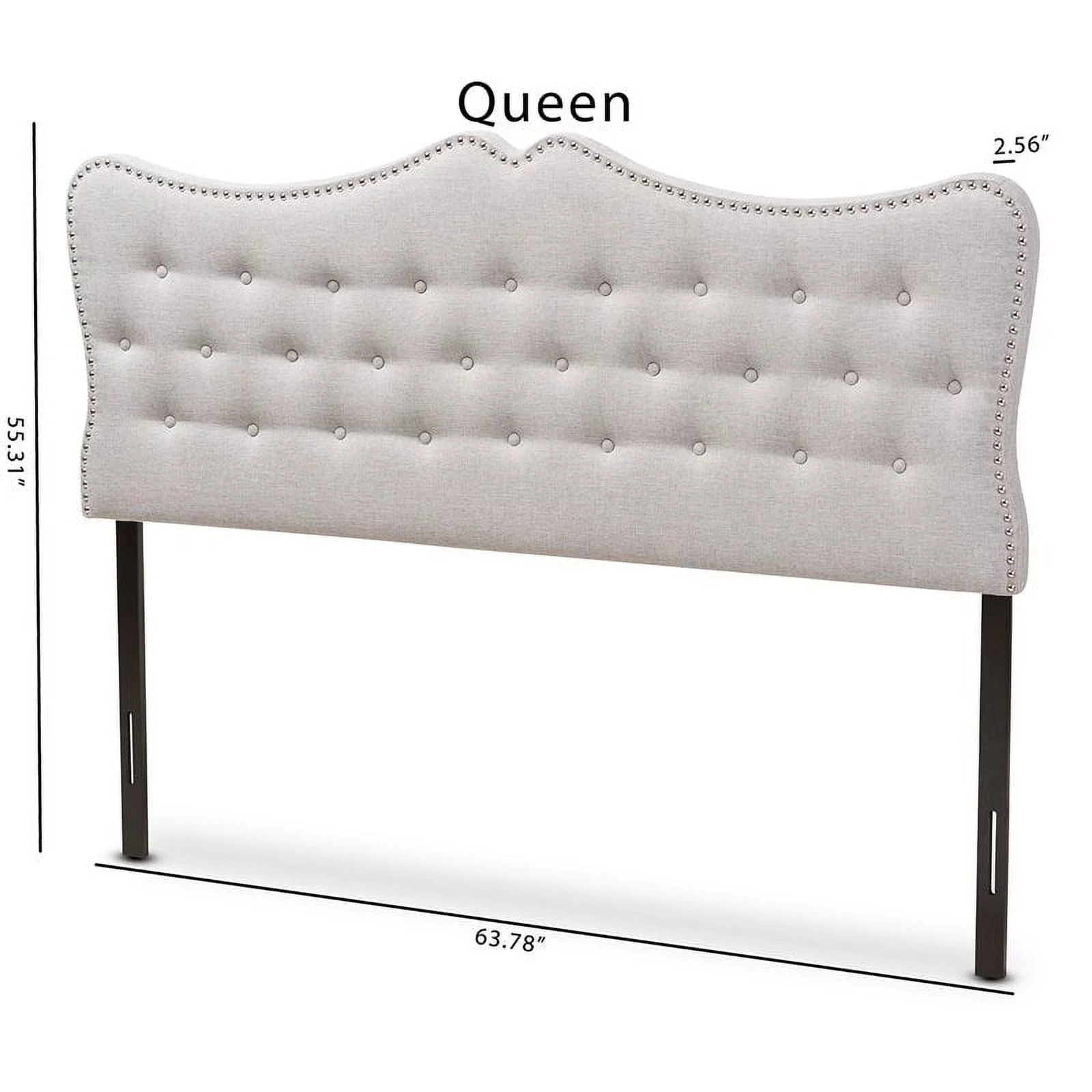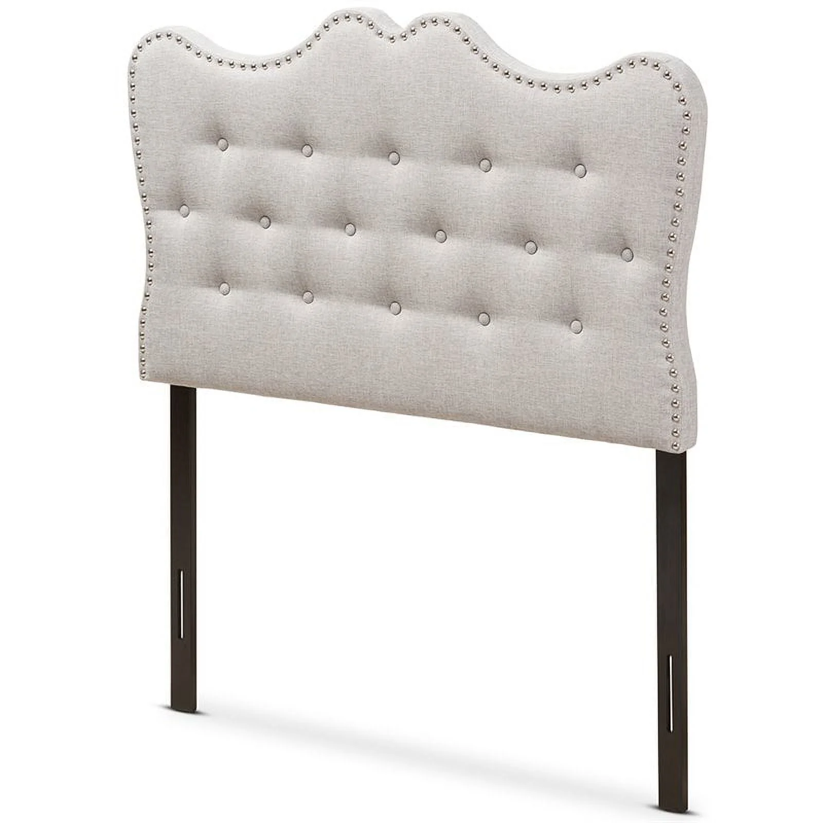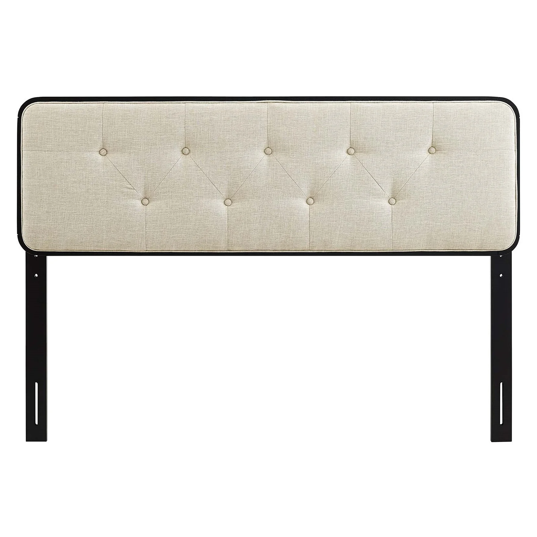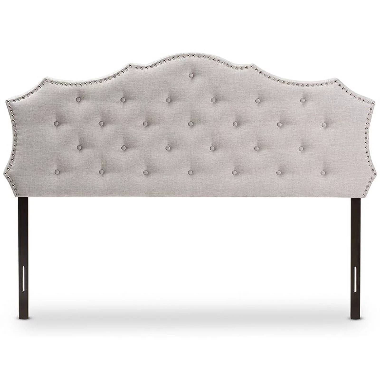 BSD National Supplies Glendale Traditional Beige Fabric Button Tufted Queen Size Black Wooden Headboard