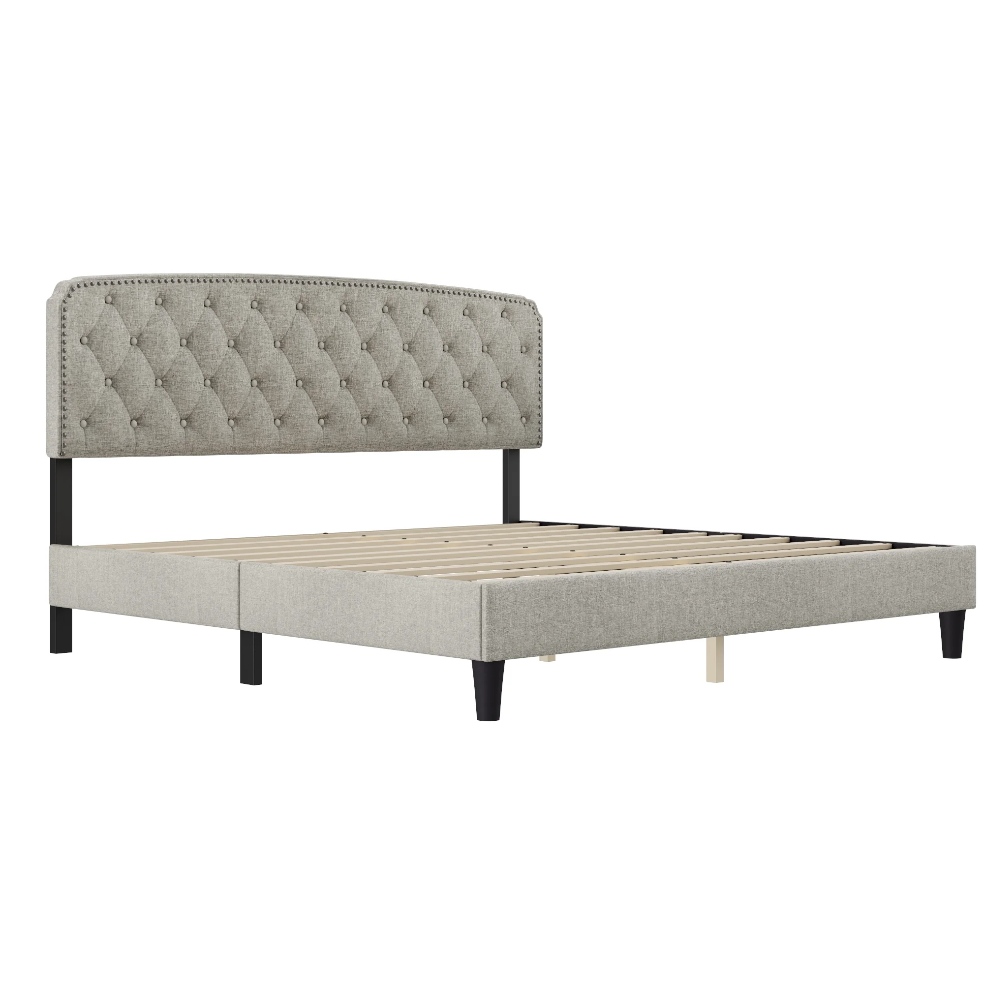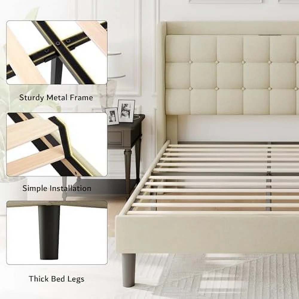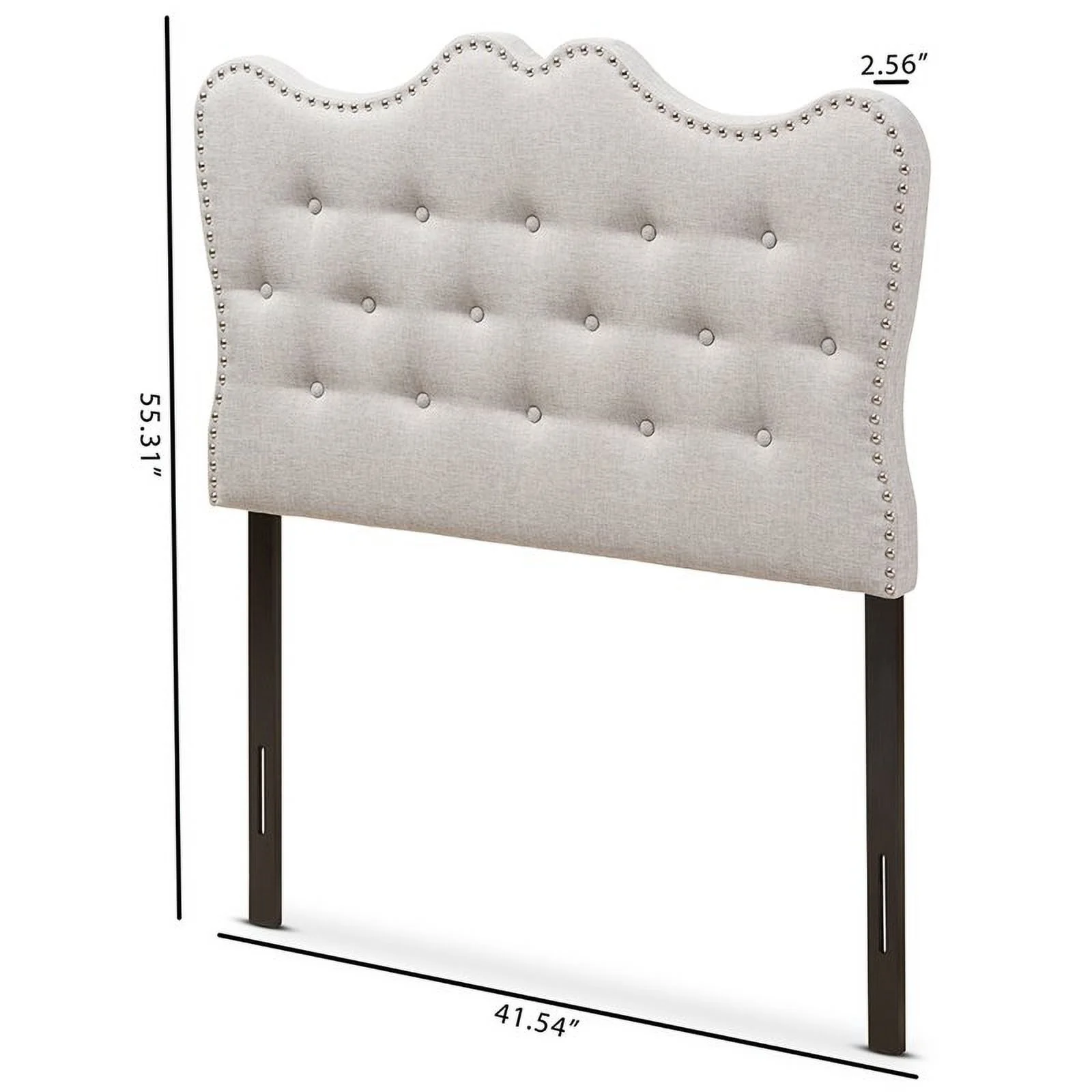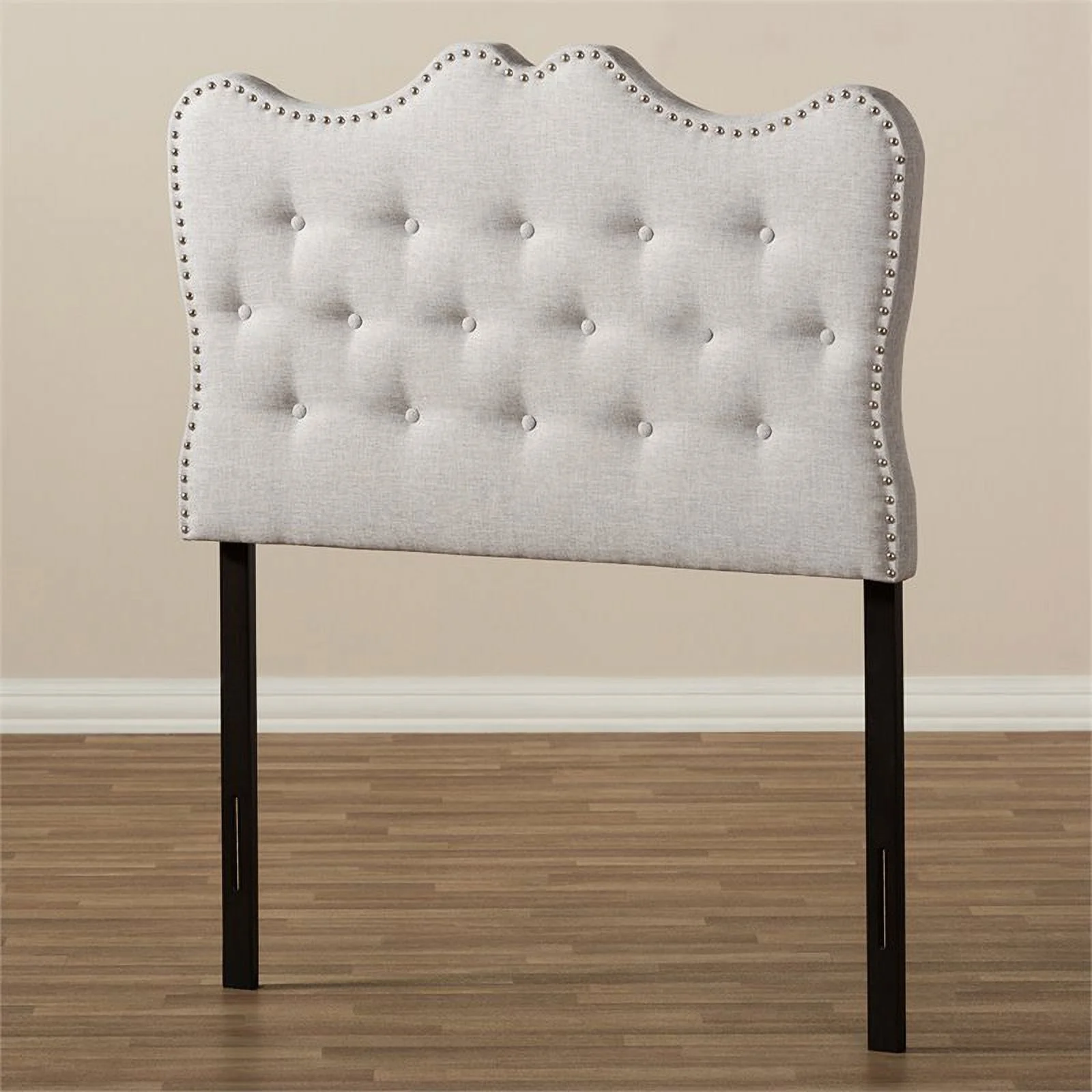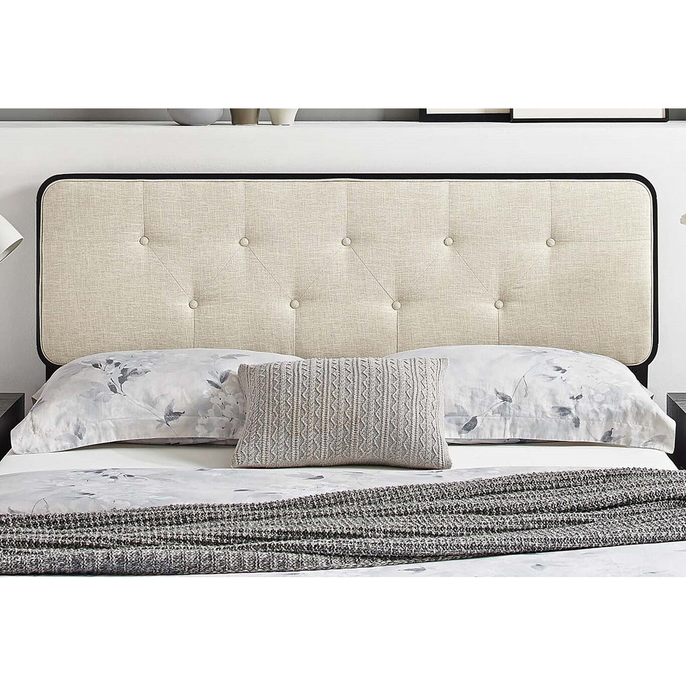 BSD National Supplies Glendale Traditional Beige Fabric Button Tufted Queen Size Black Wooden Headboard