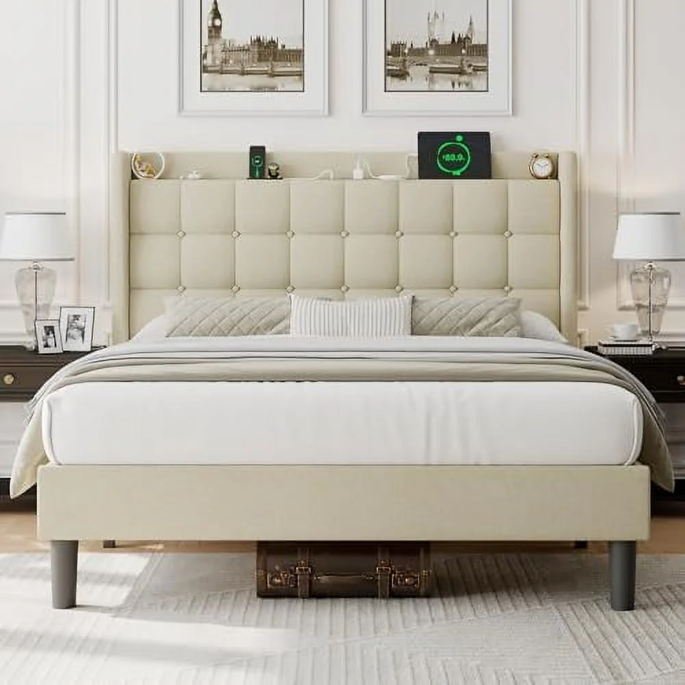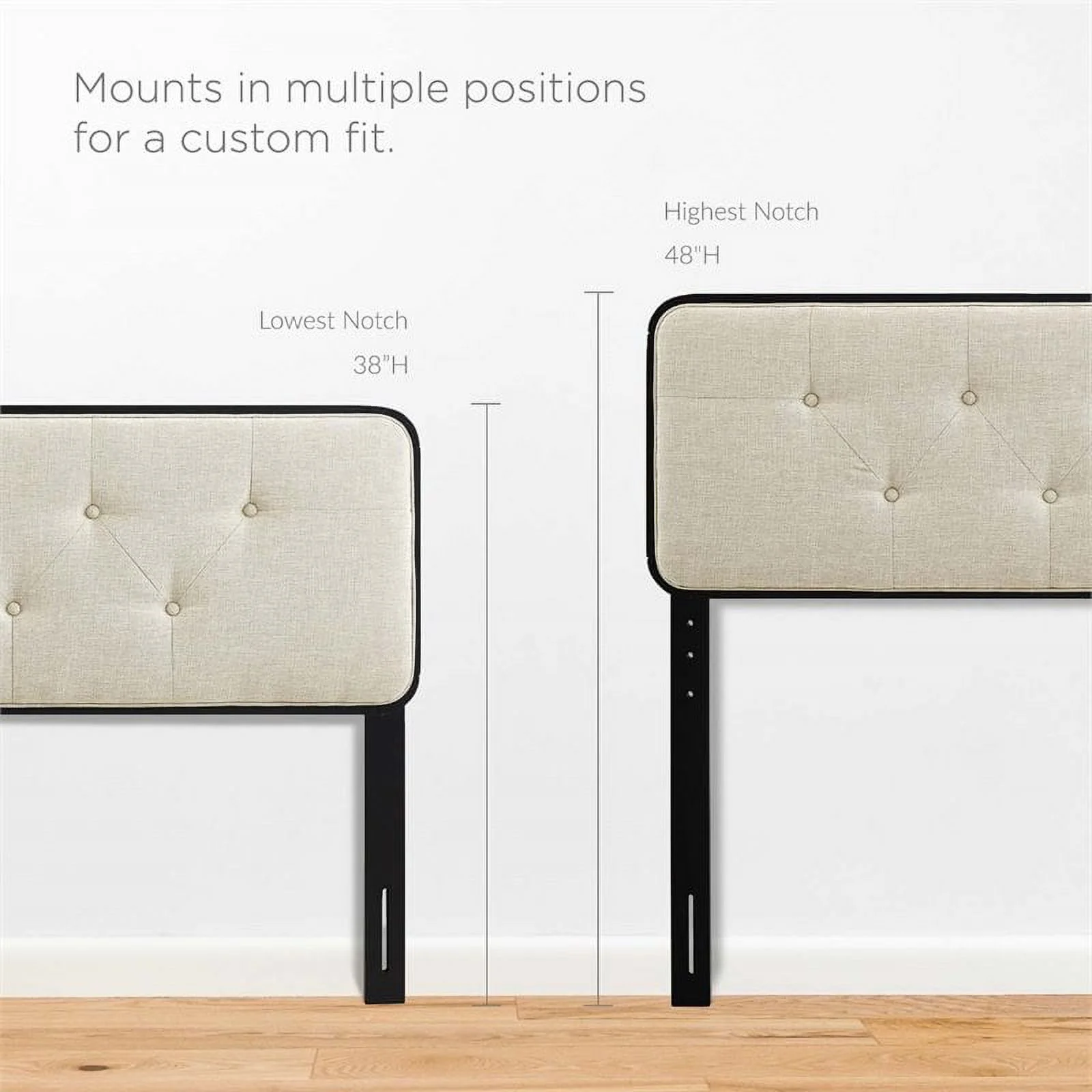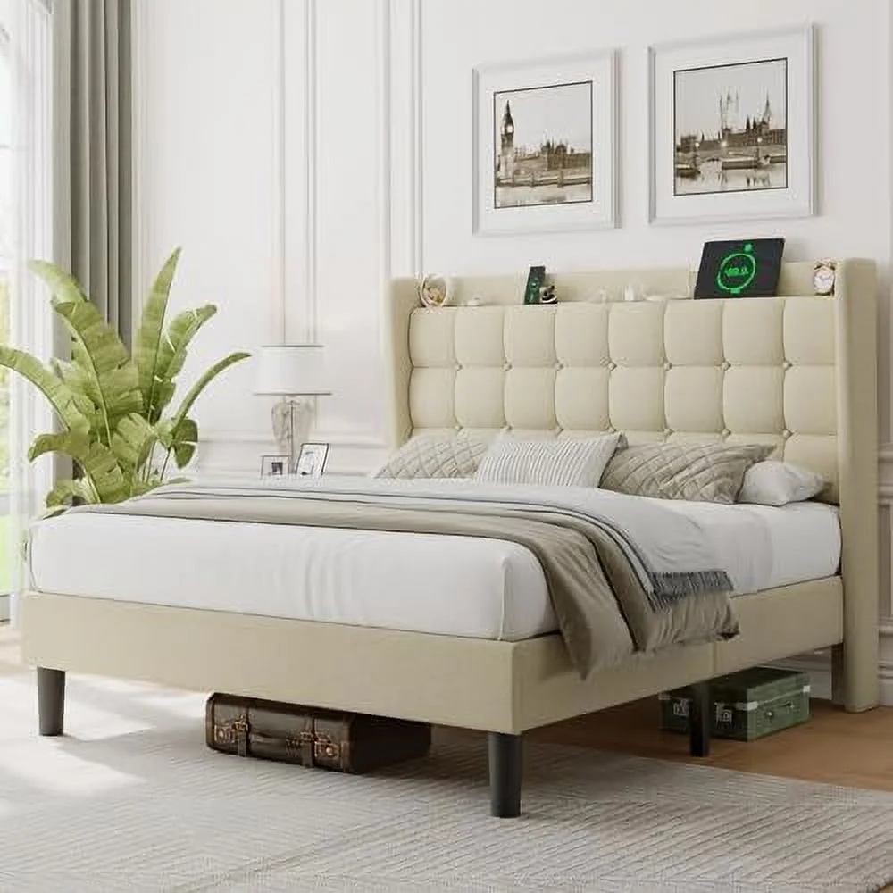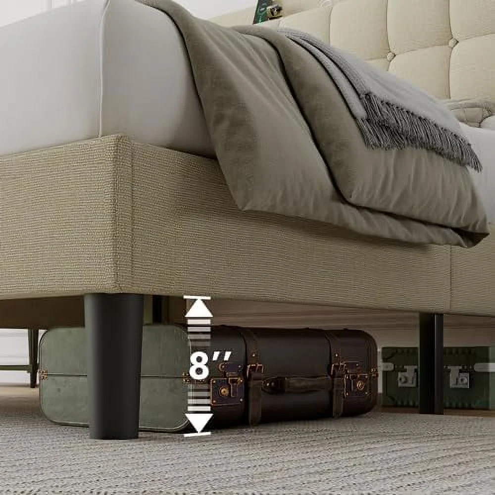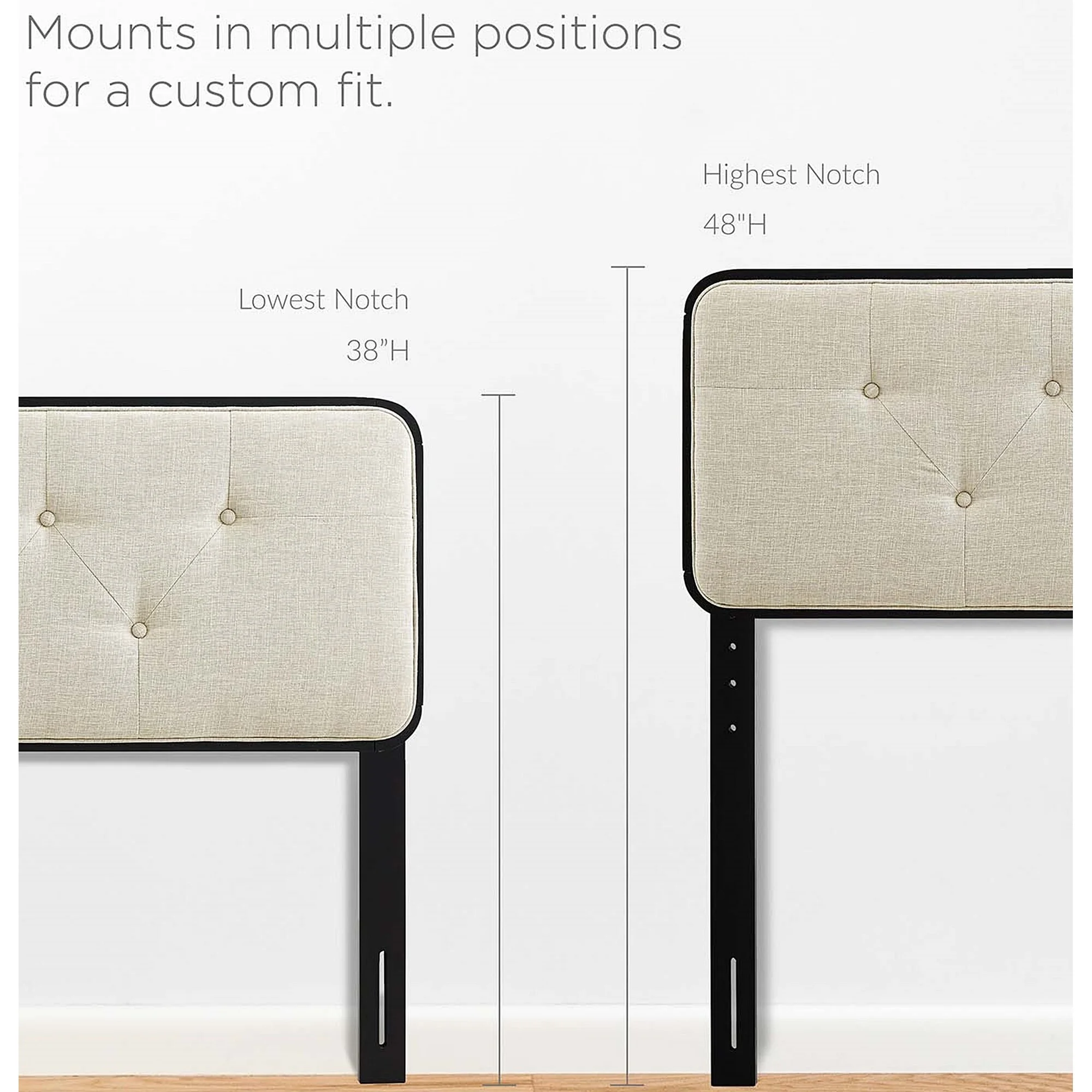 BSD National Supplies Glendale Traditional Beige Fabric Button Tufted Queen Size Black Wooden Headboard