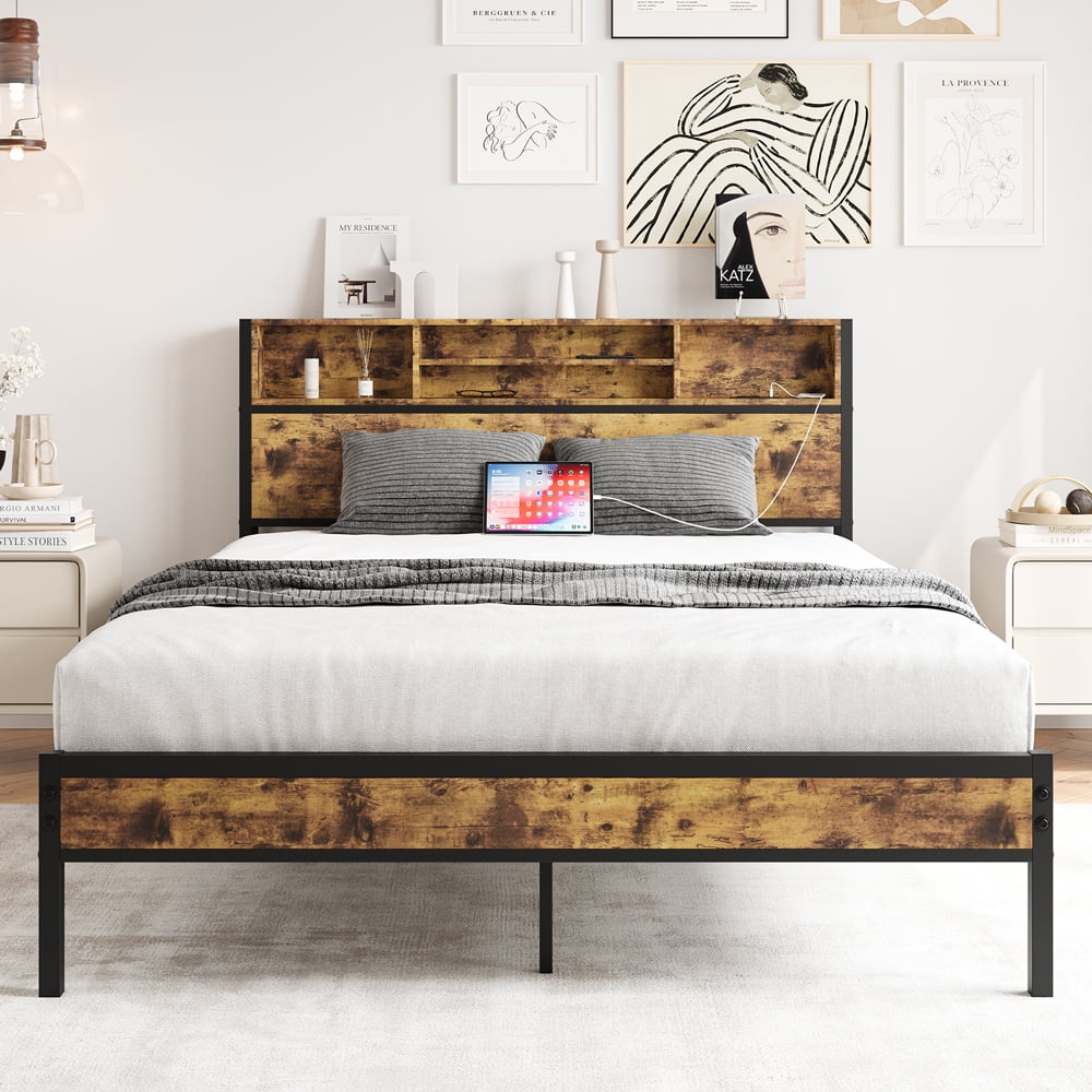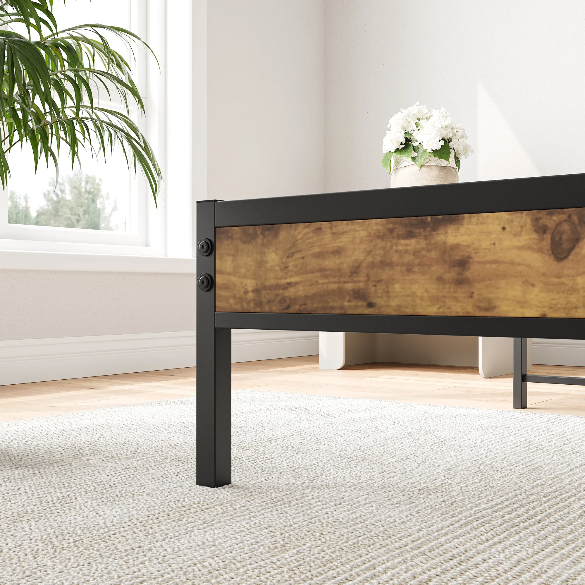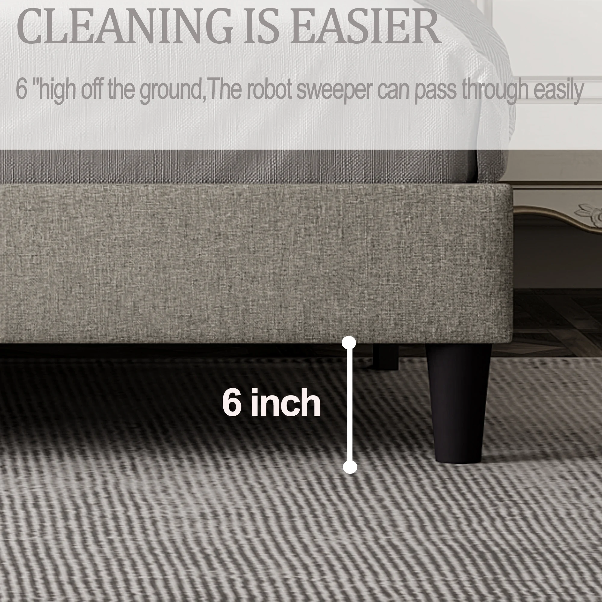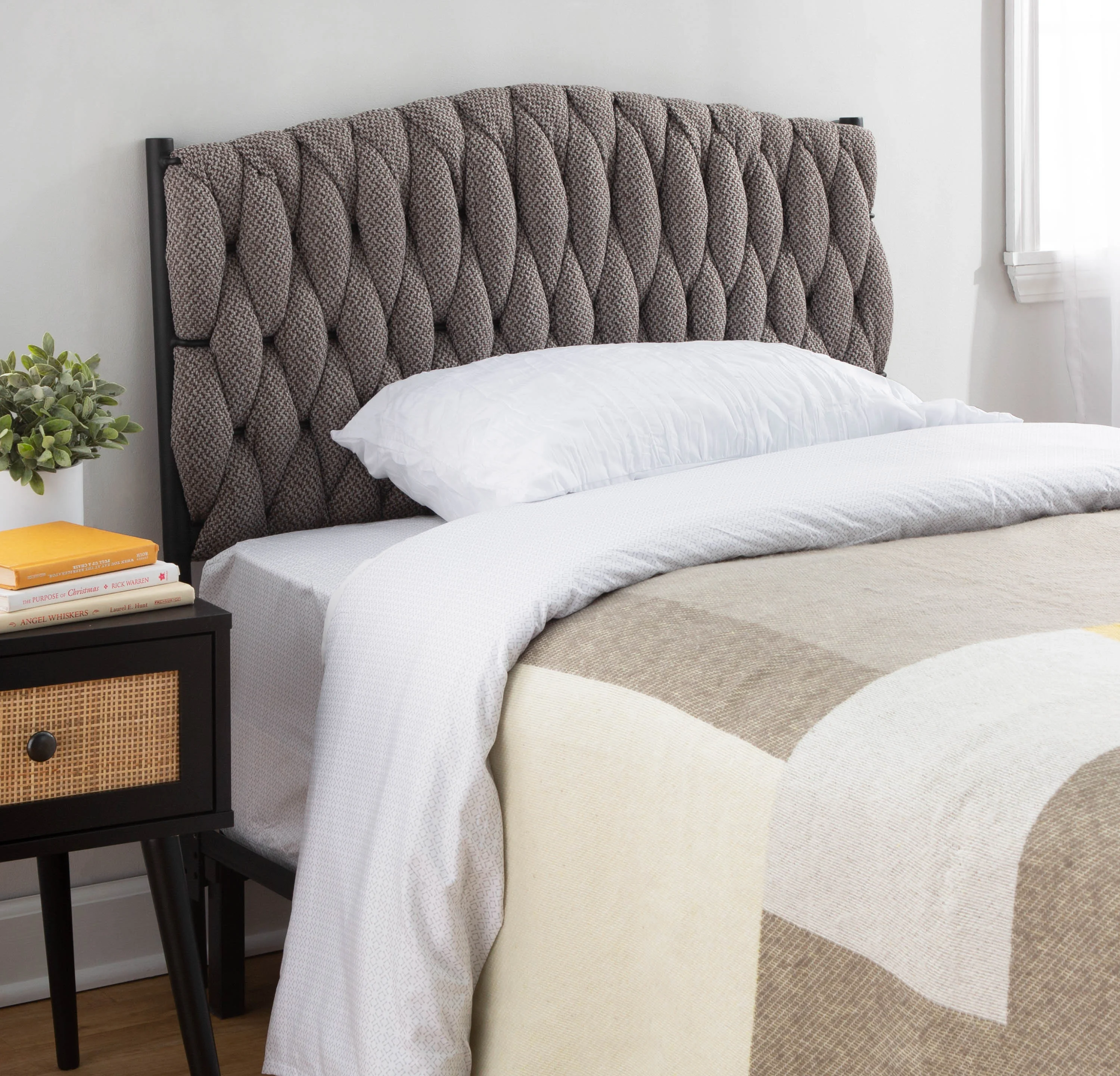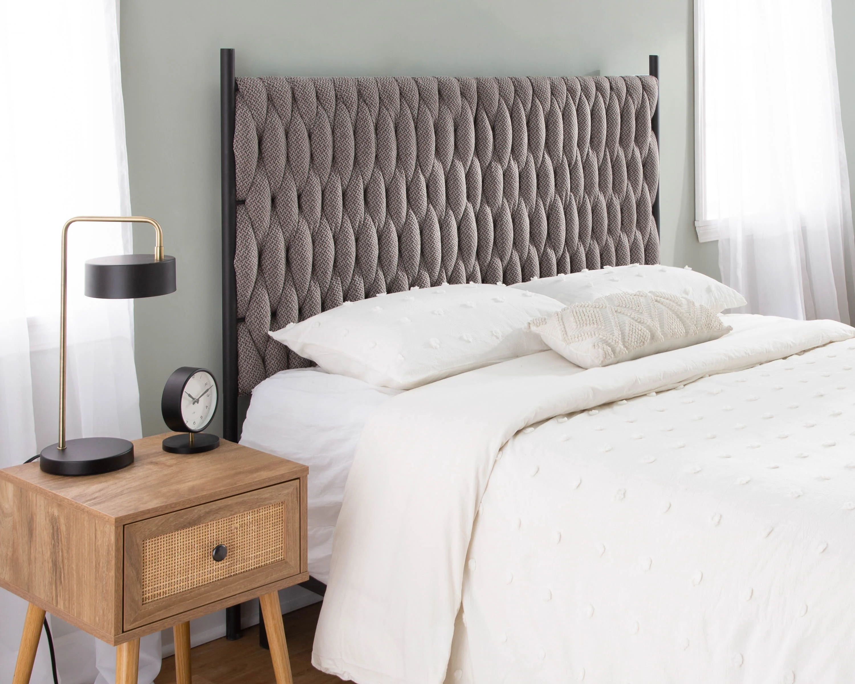 CoSoTower Queen Size Headboard in Black Metal and Grey Fabric by Lumisource