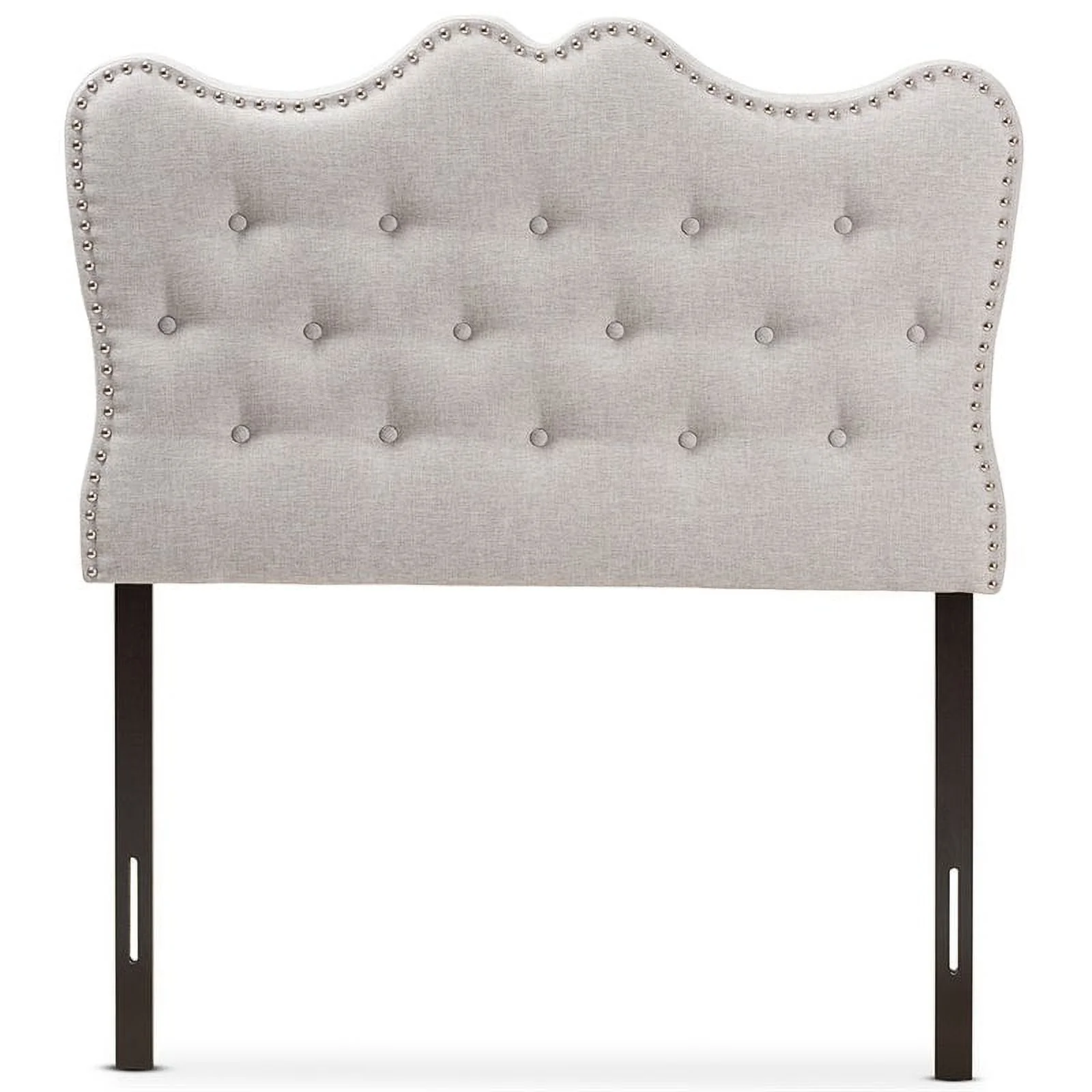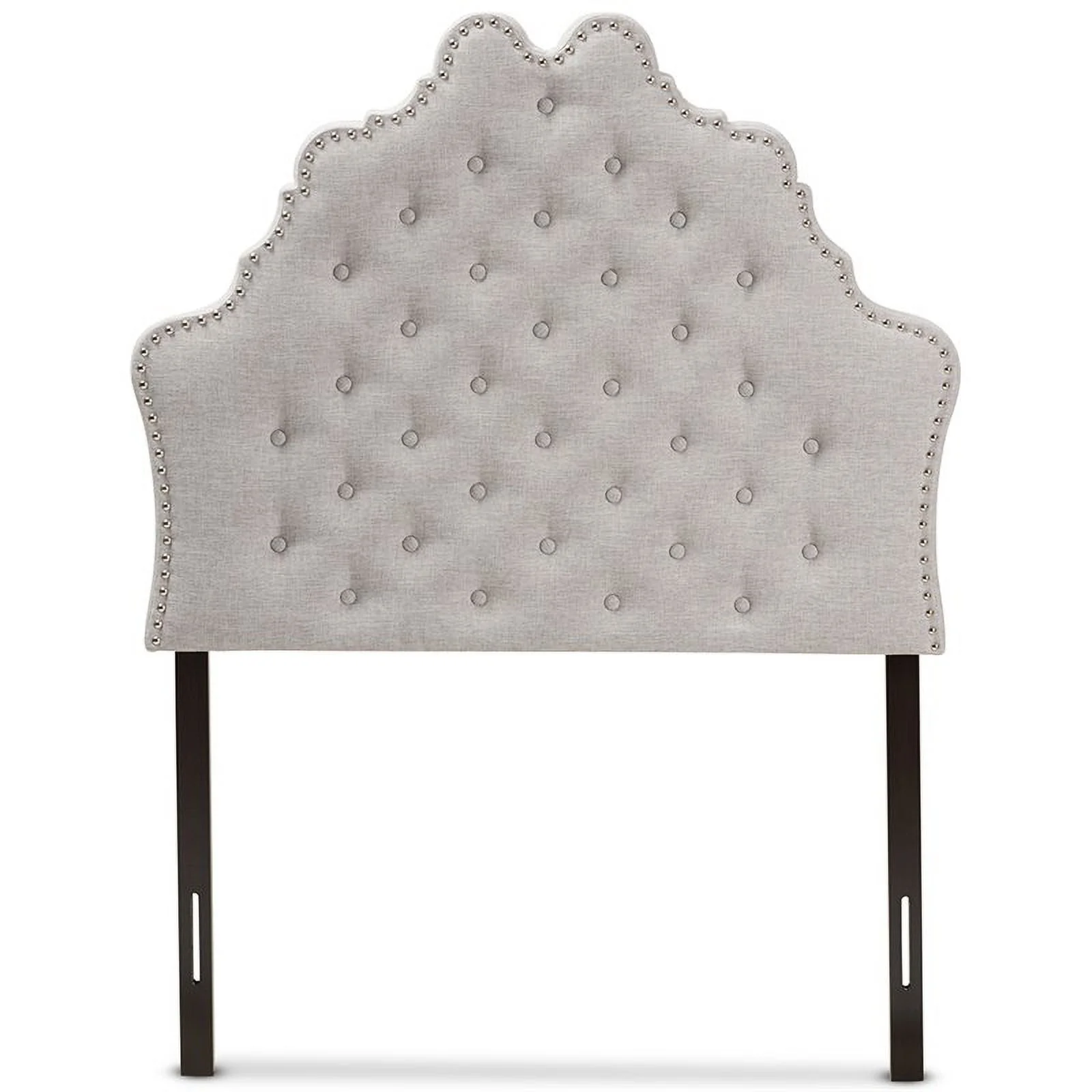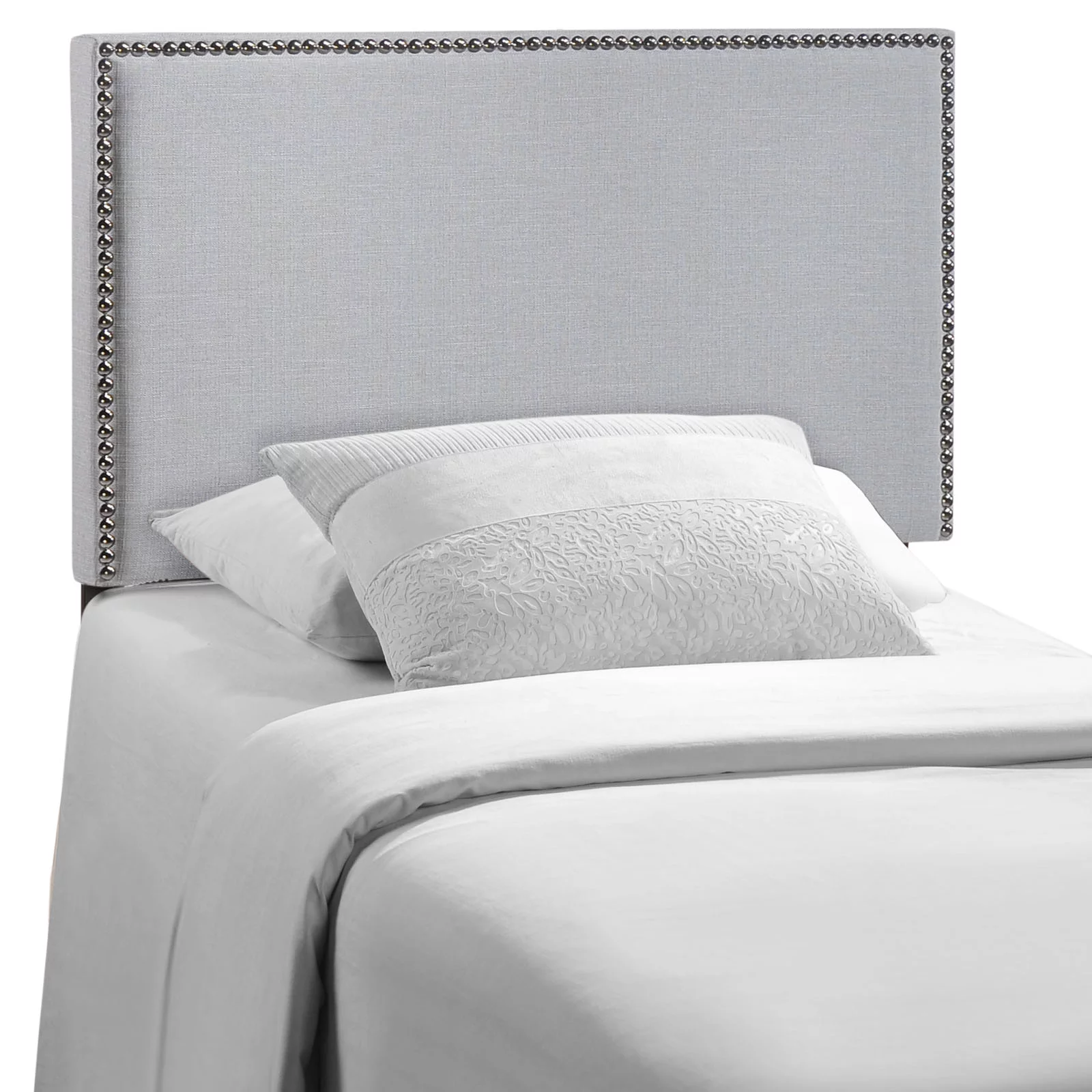 Modern Contemporary Twin Size Nailhead Upholstered Headboard, Grey Fabric