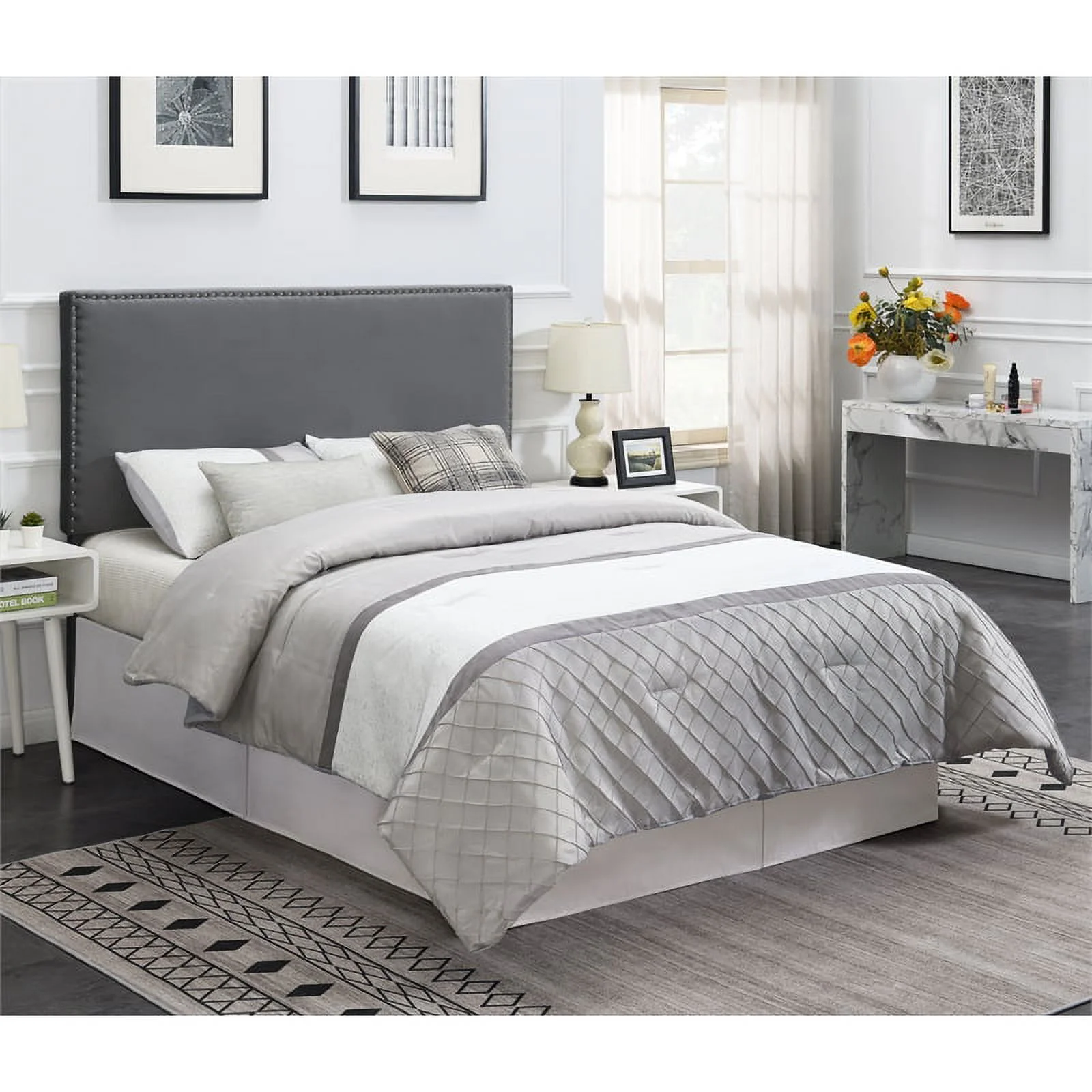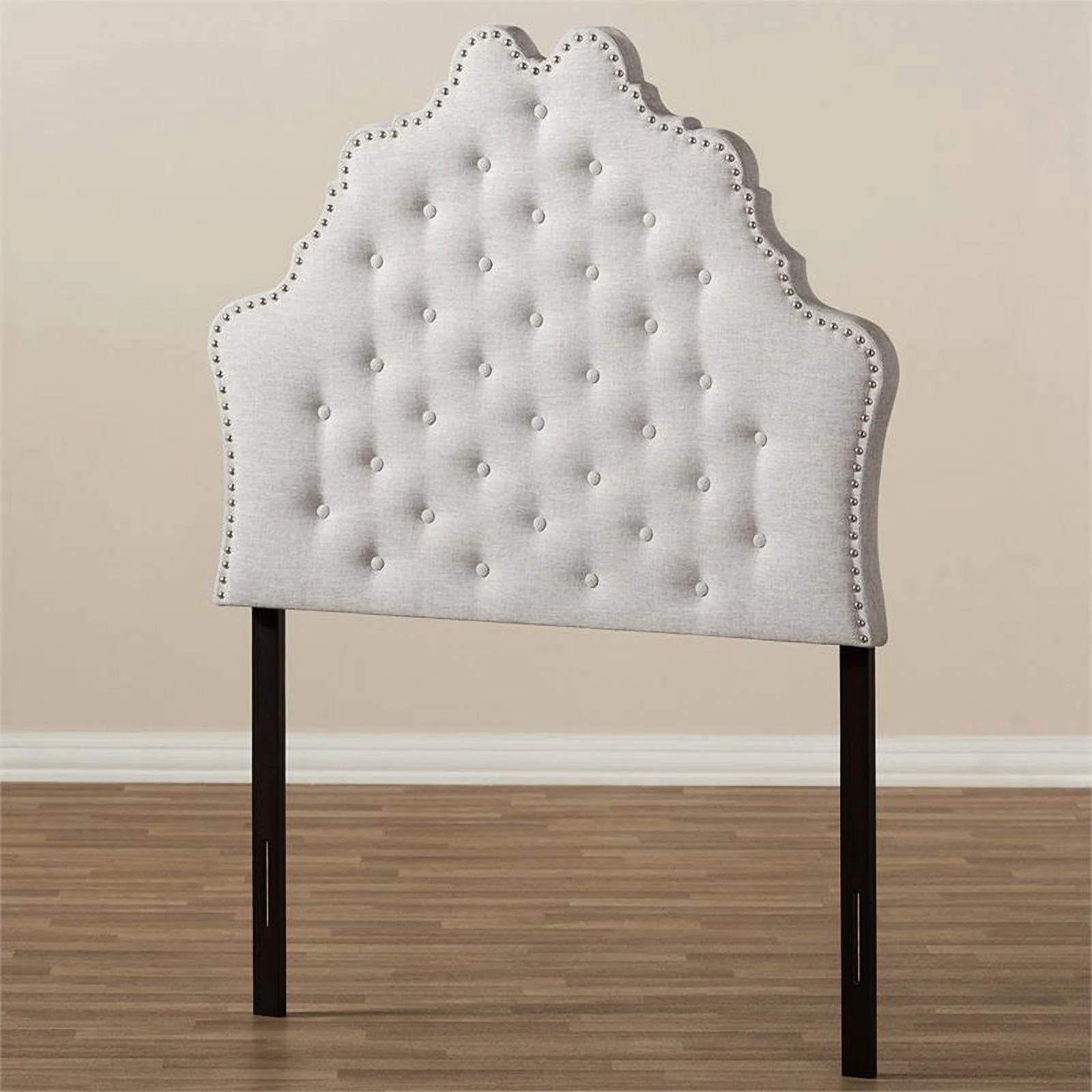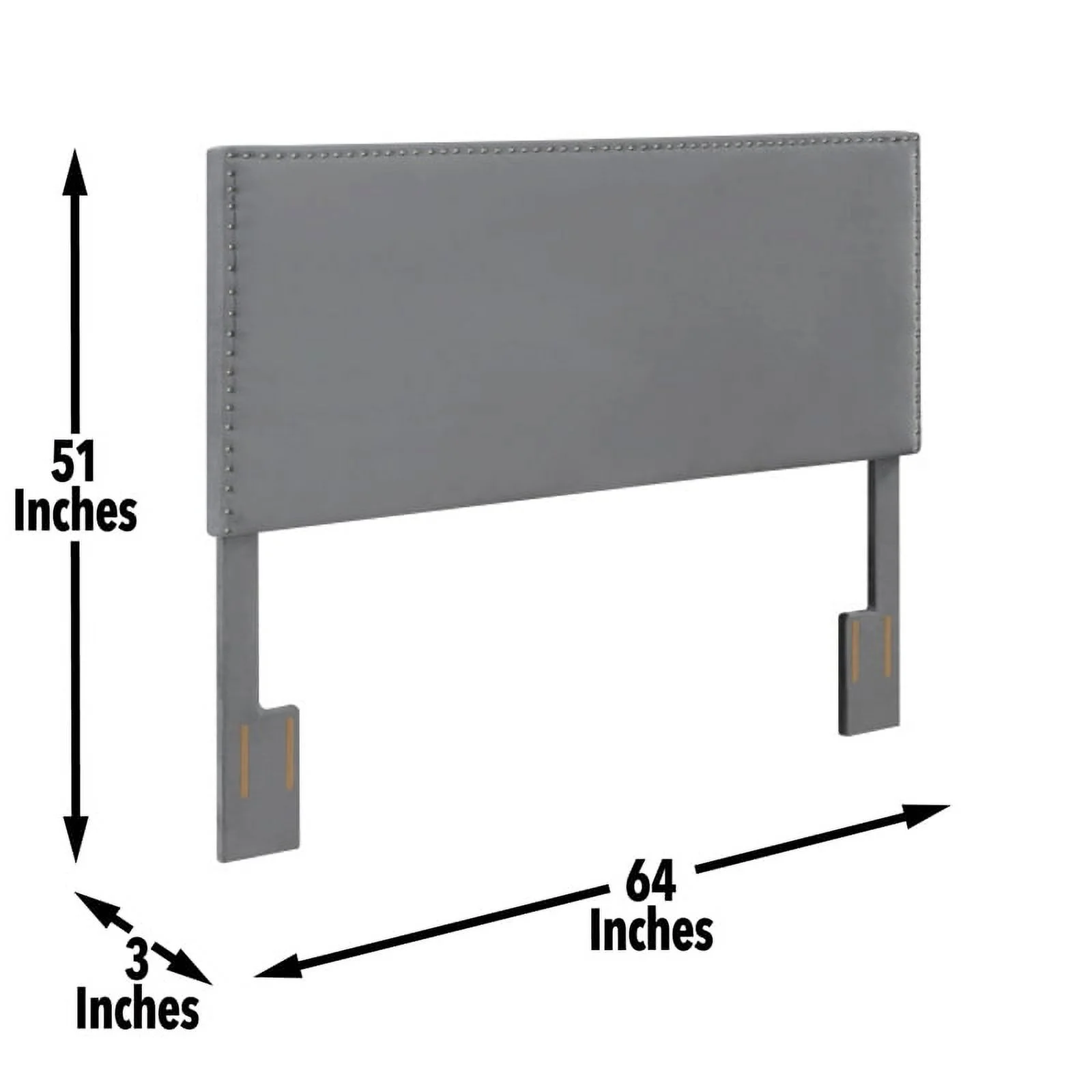 Modern Contemporary Twin Size Nailhead Upholstered Headboard, Grey Fabric