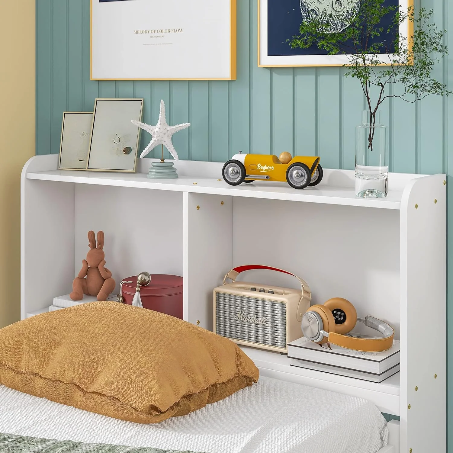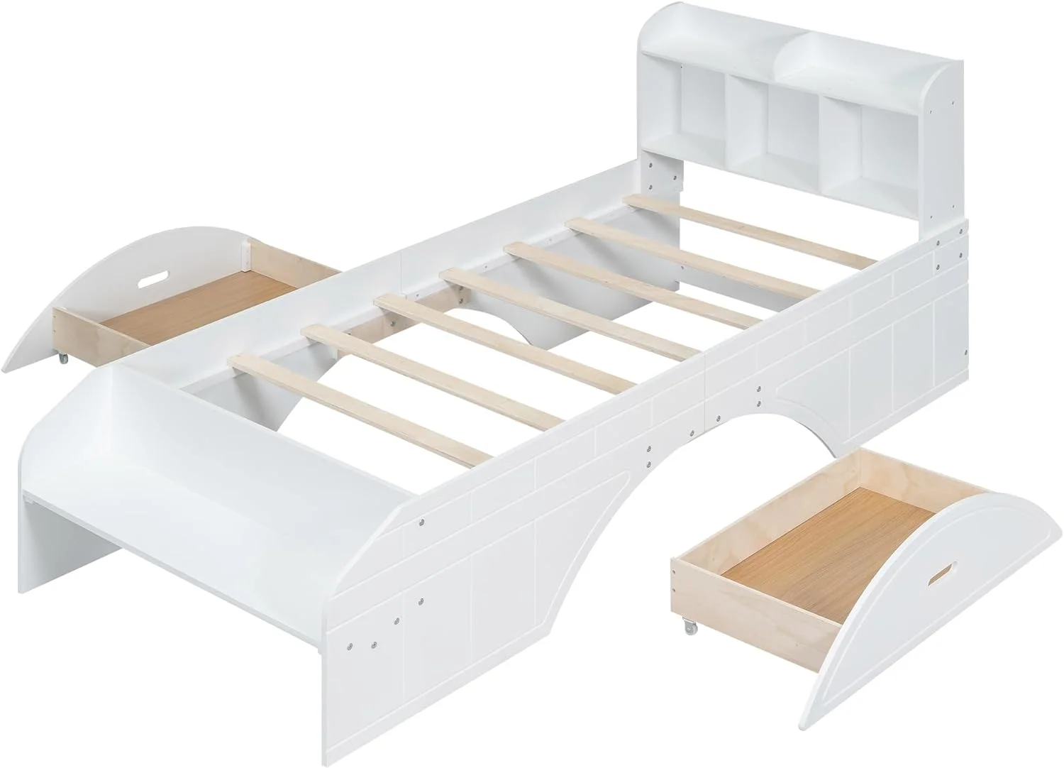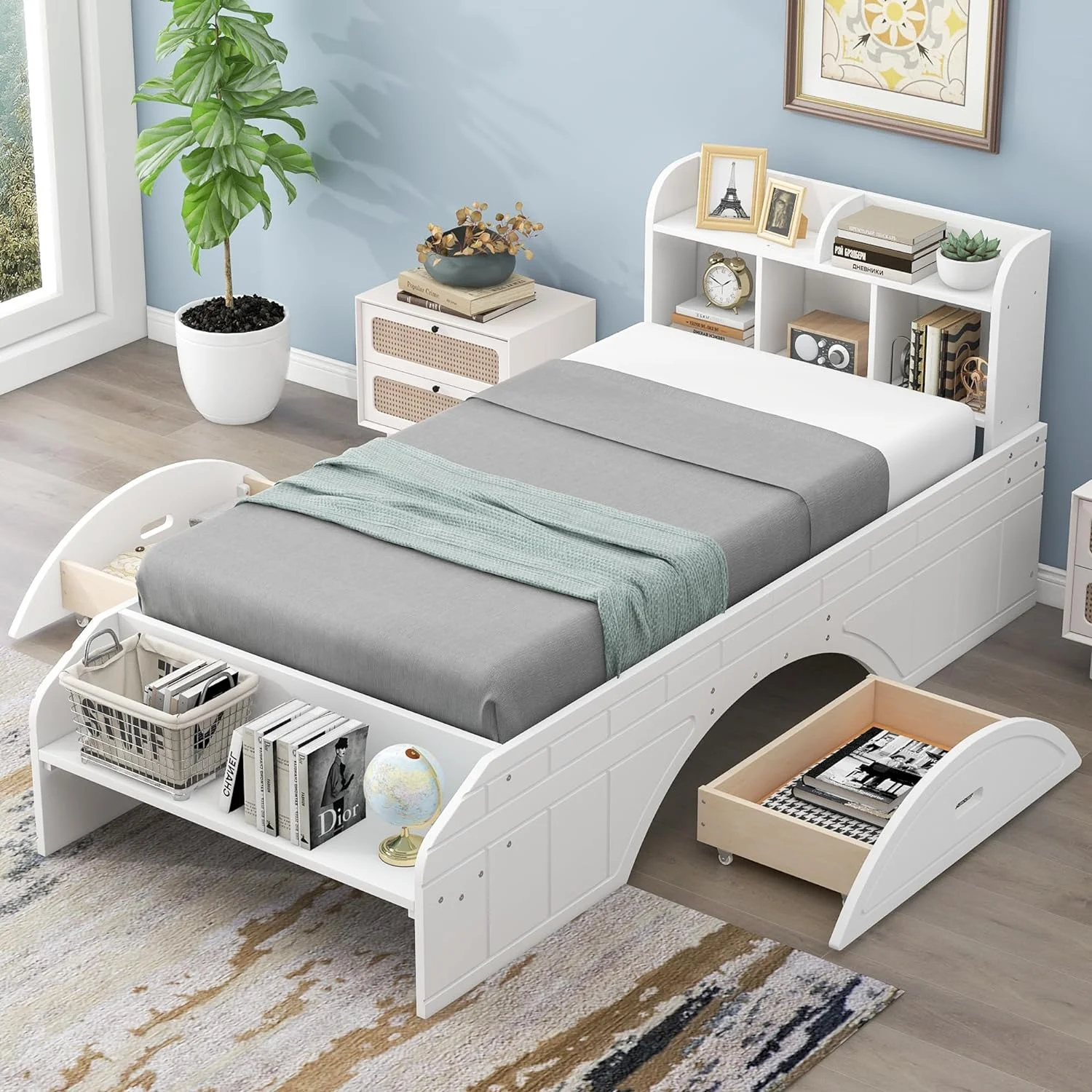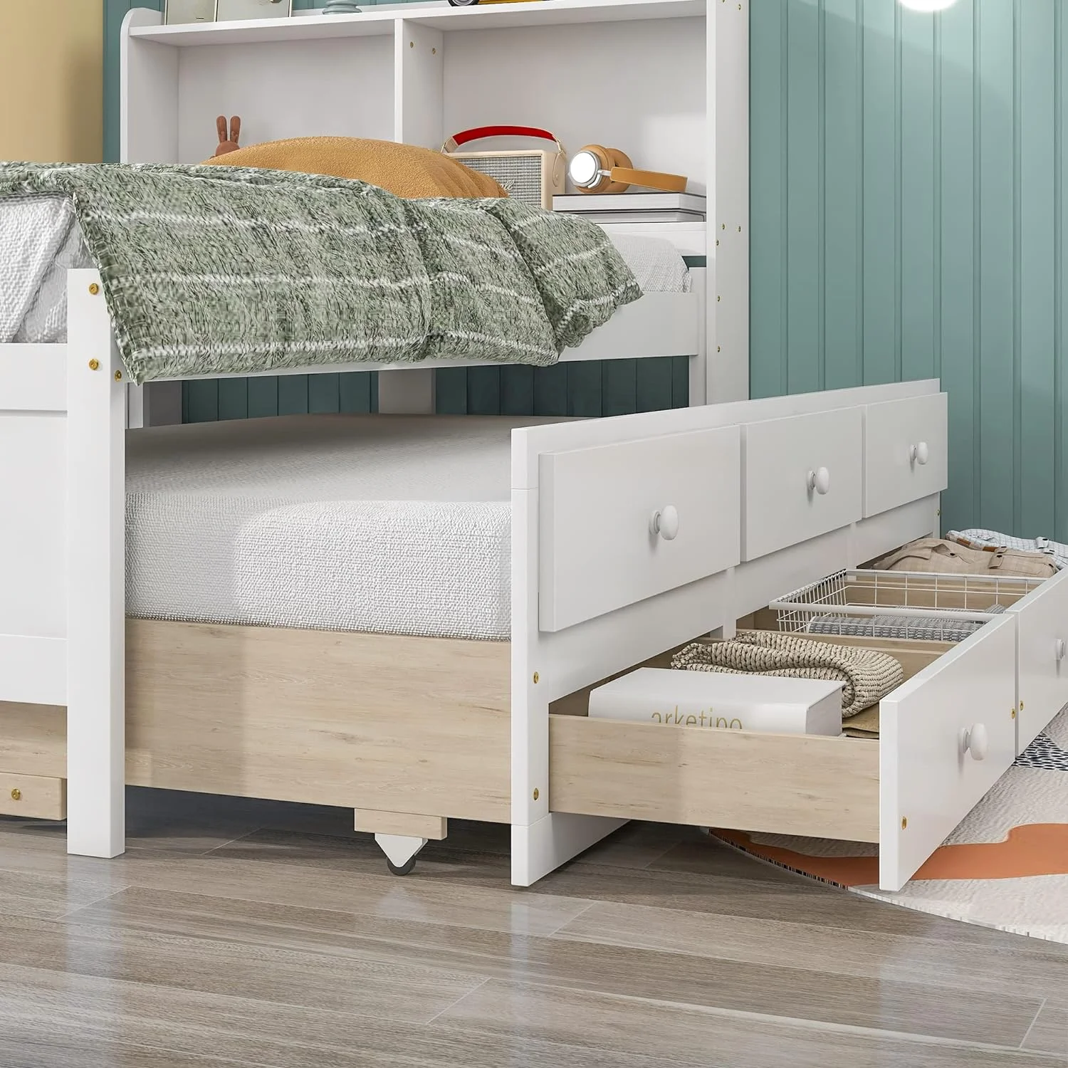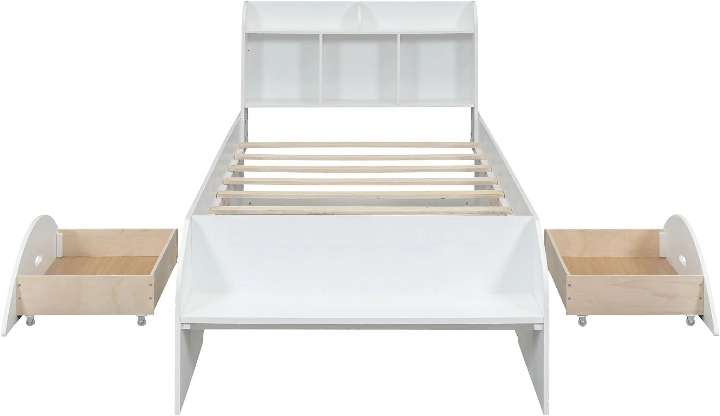 Twin Size Snowflake Velvet Daybed with Two Storage Drawers and Built-in Storage Shelves