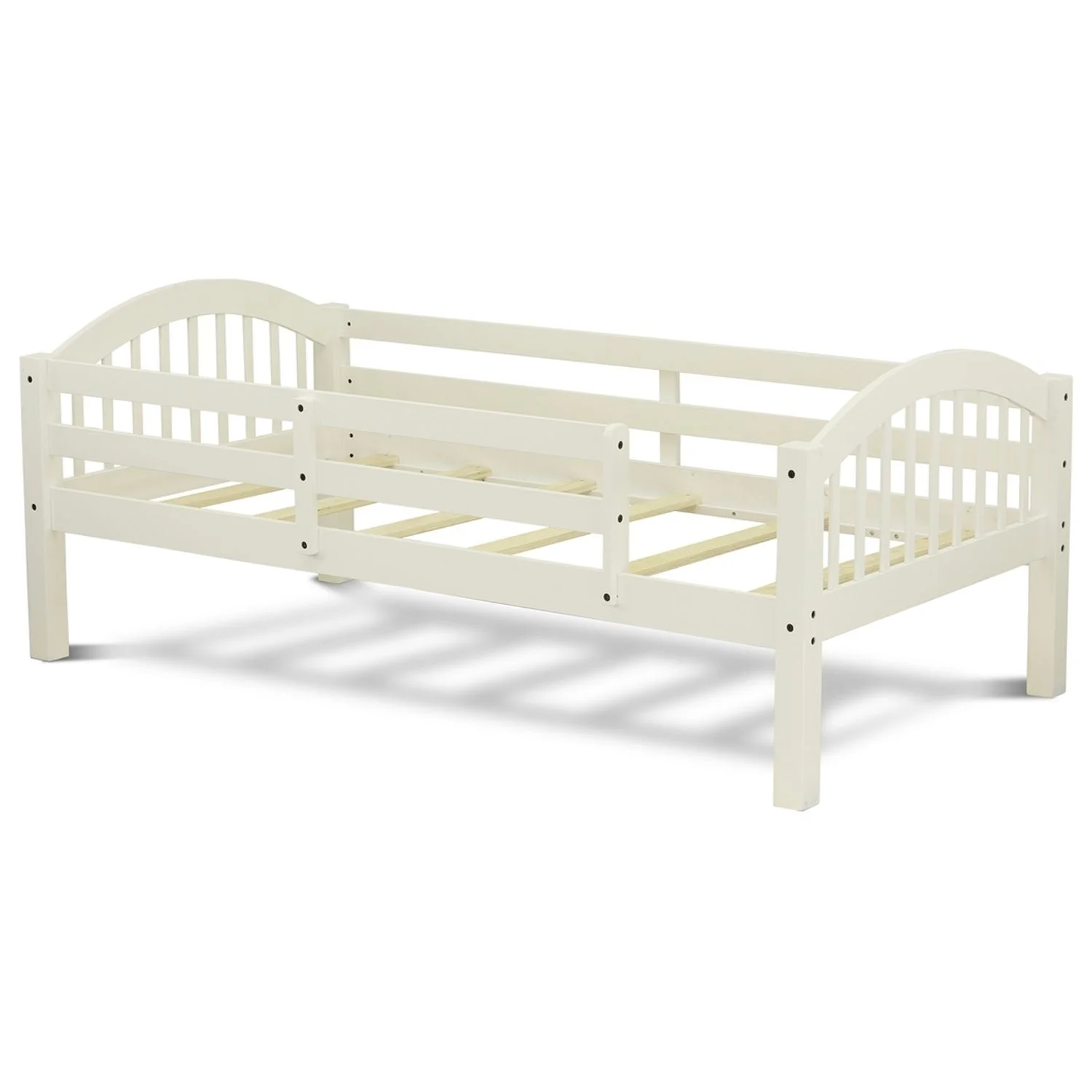 Aracive Bunk wo Separae Real Wood Beds Ladder Wih Four Seps And Guard Rails-/ Size Bed & Linen, Linen Whie Finish