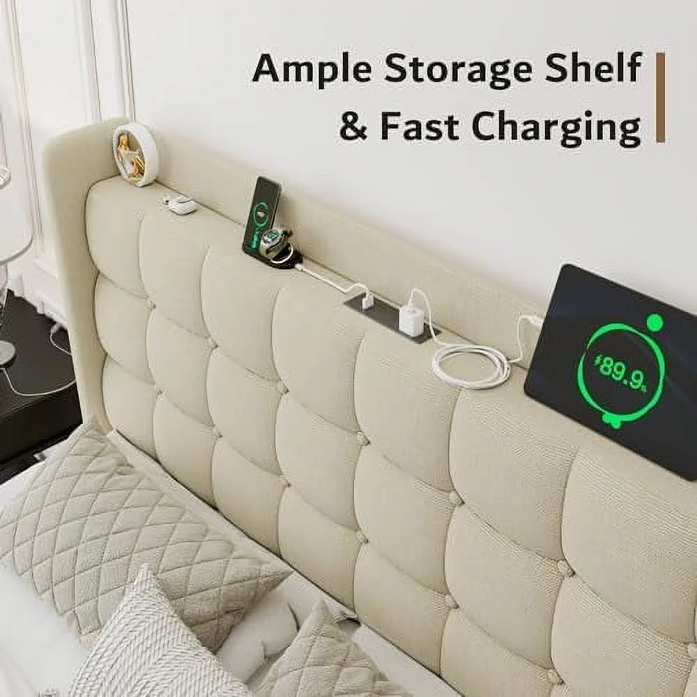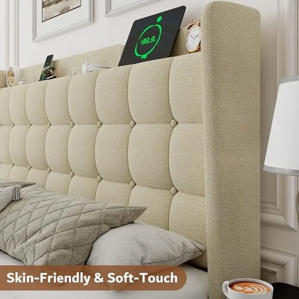 CoSoTower King Size Adjustable Headboard with Fine Linen Upholstery and Button Tufting for Bedroom, Wave Top Cream White