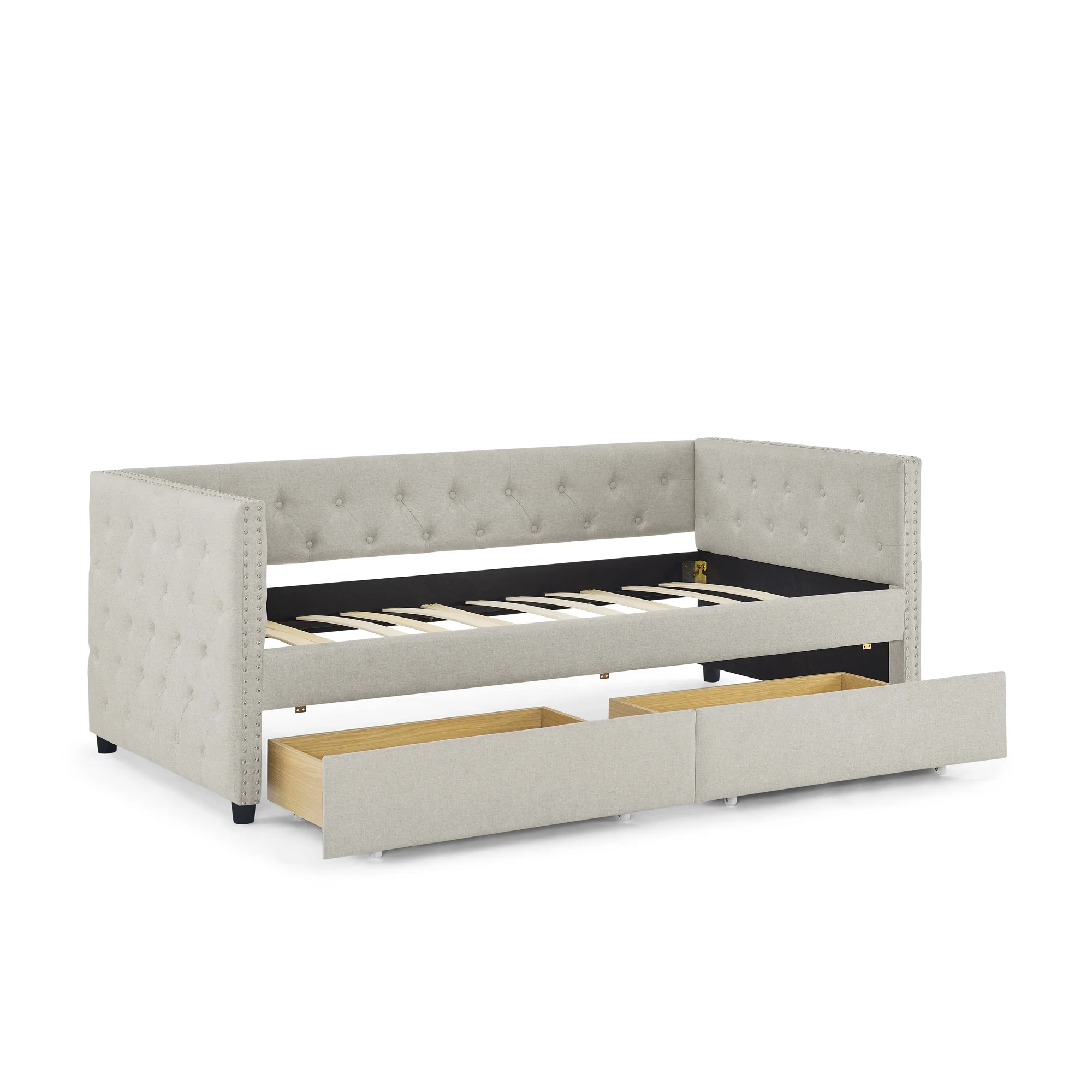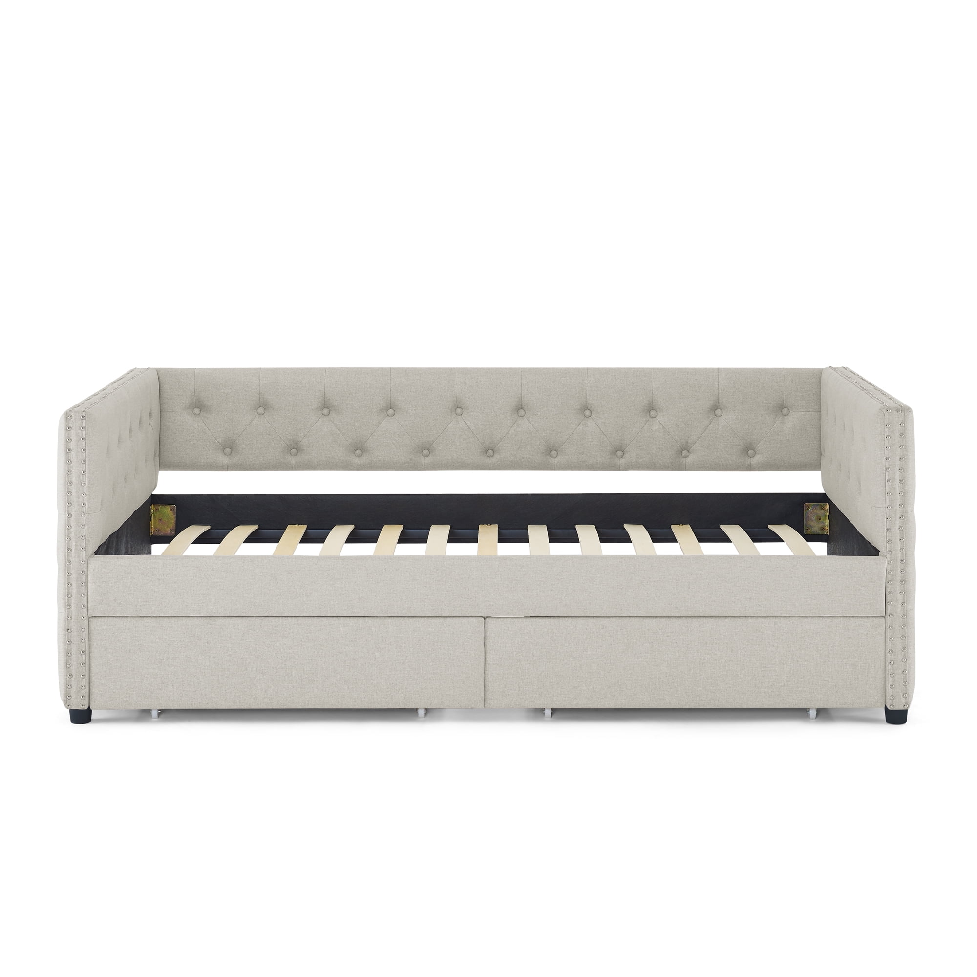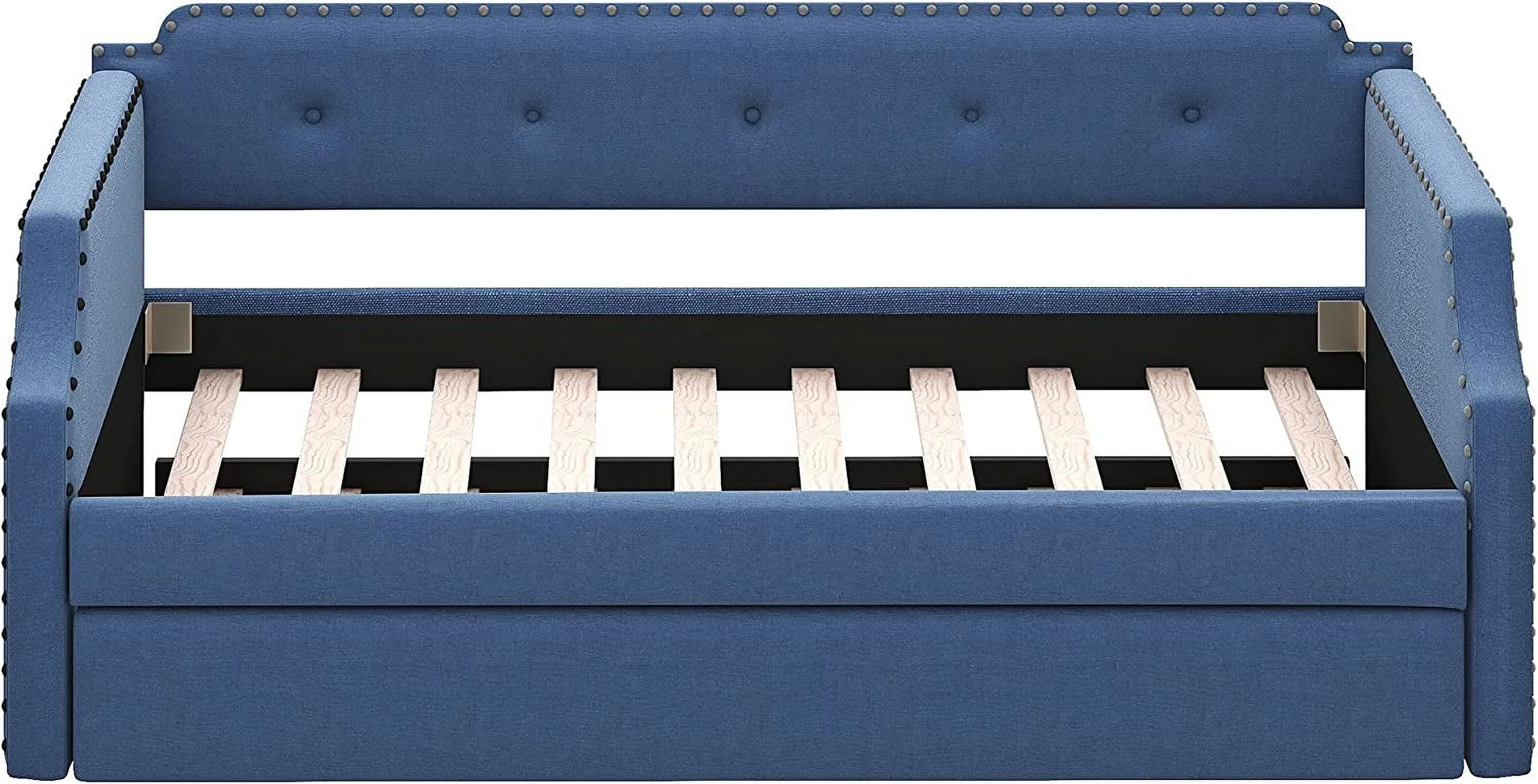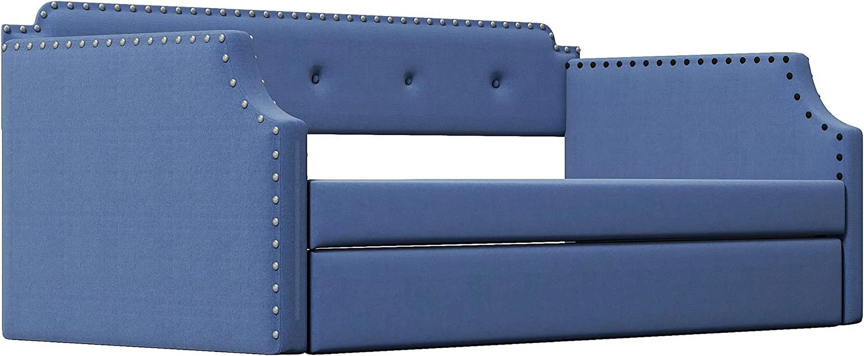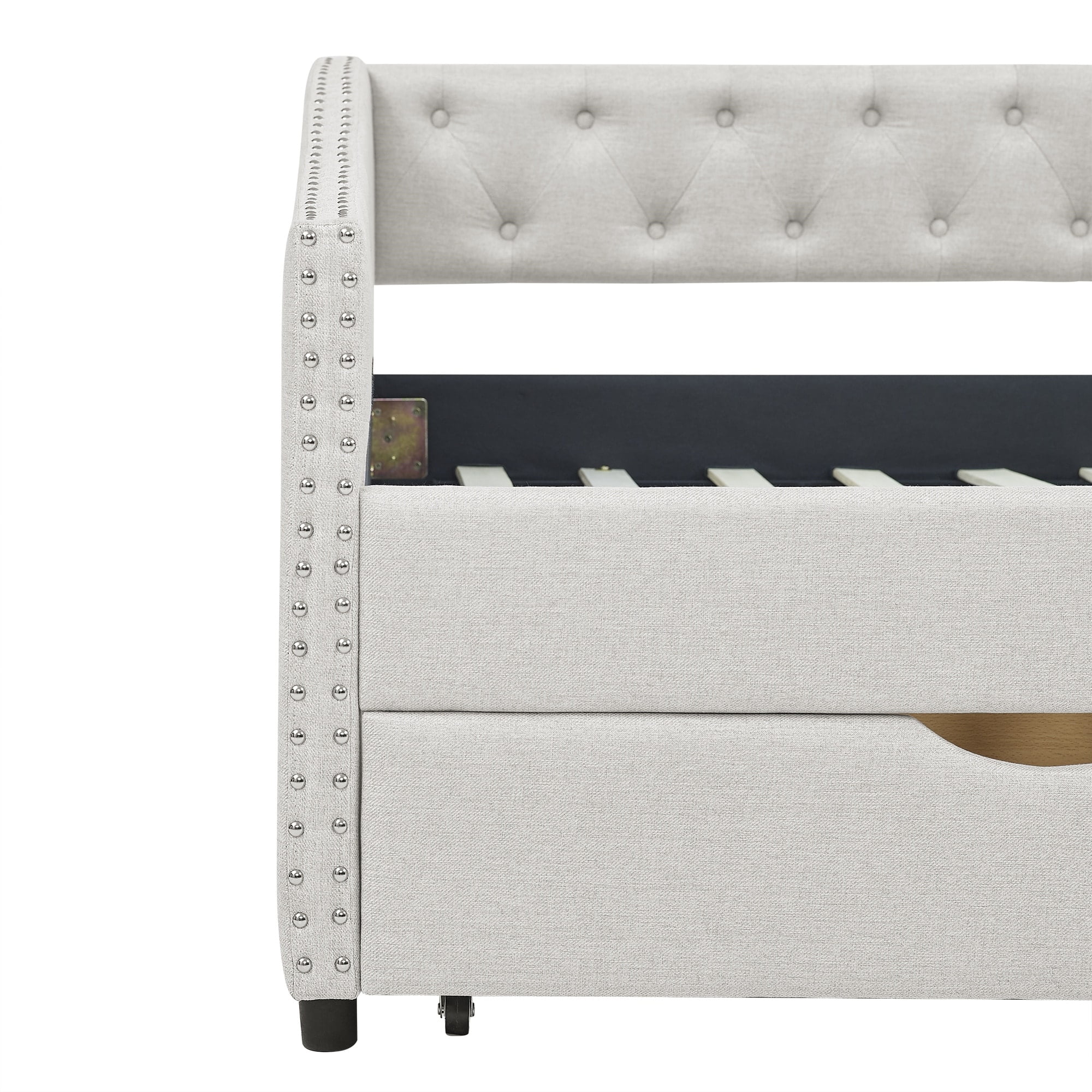 Daybed with Trundle Upholstered Tufted Sofa Bed,with Button and Copper Nail on Arms,both Twin Size,Grey(85.5"x42"x30.5")