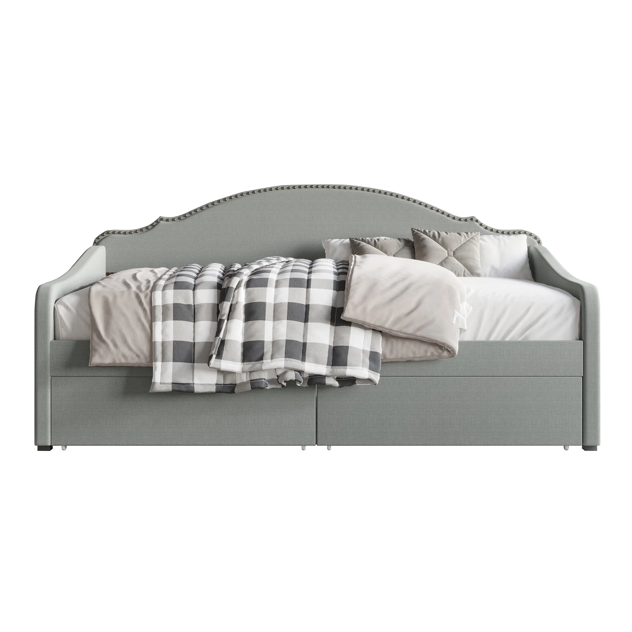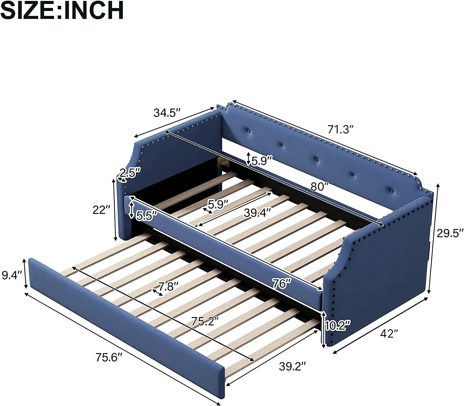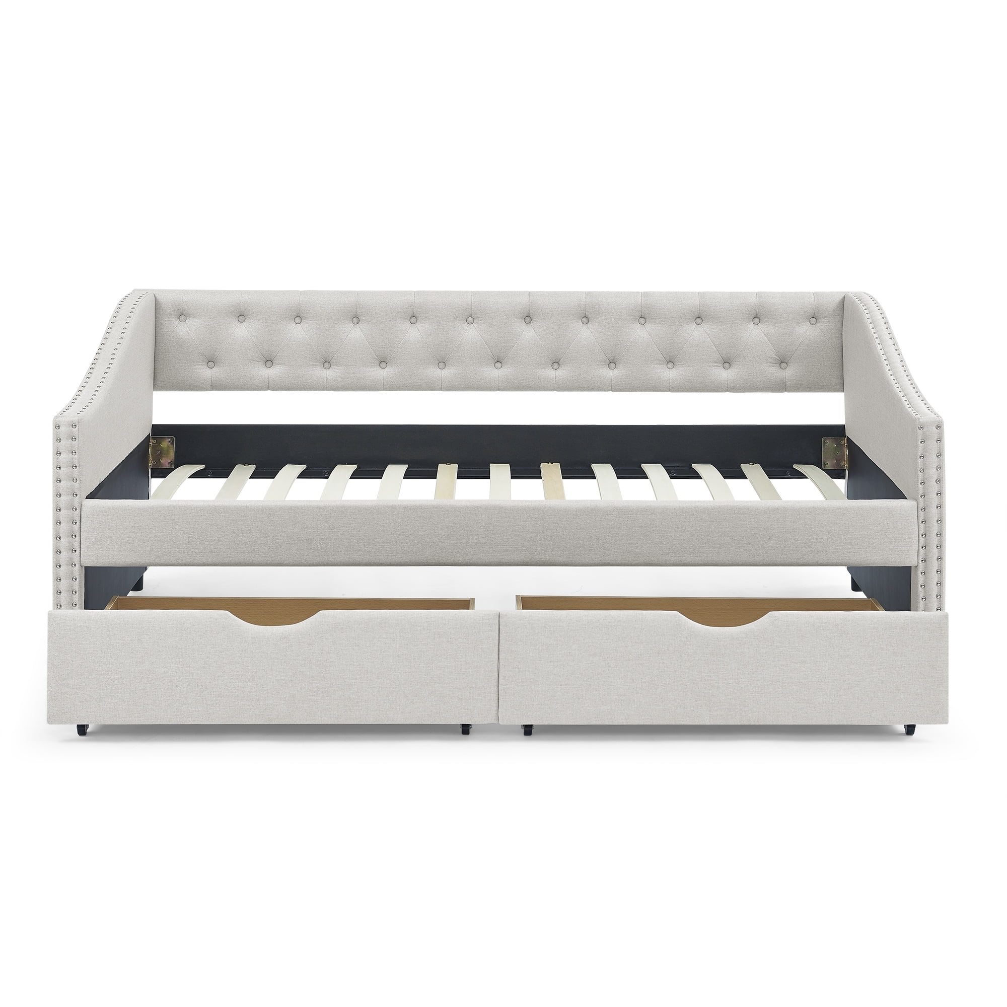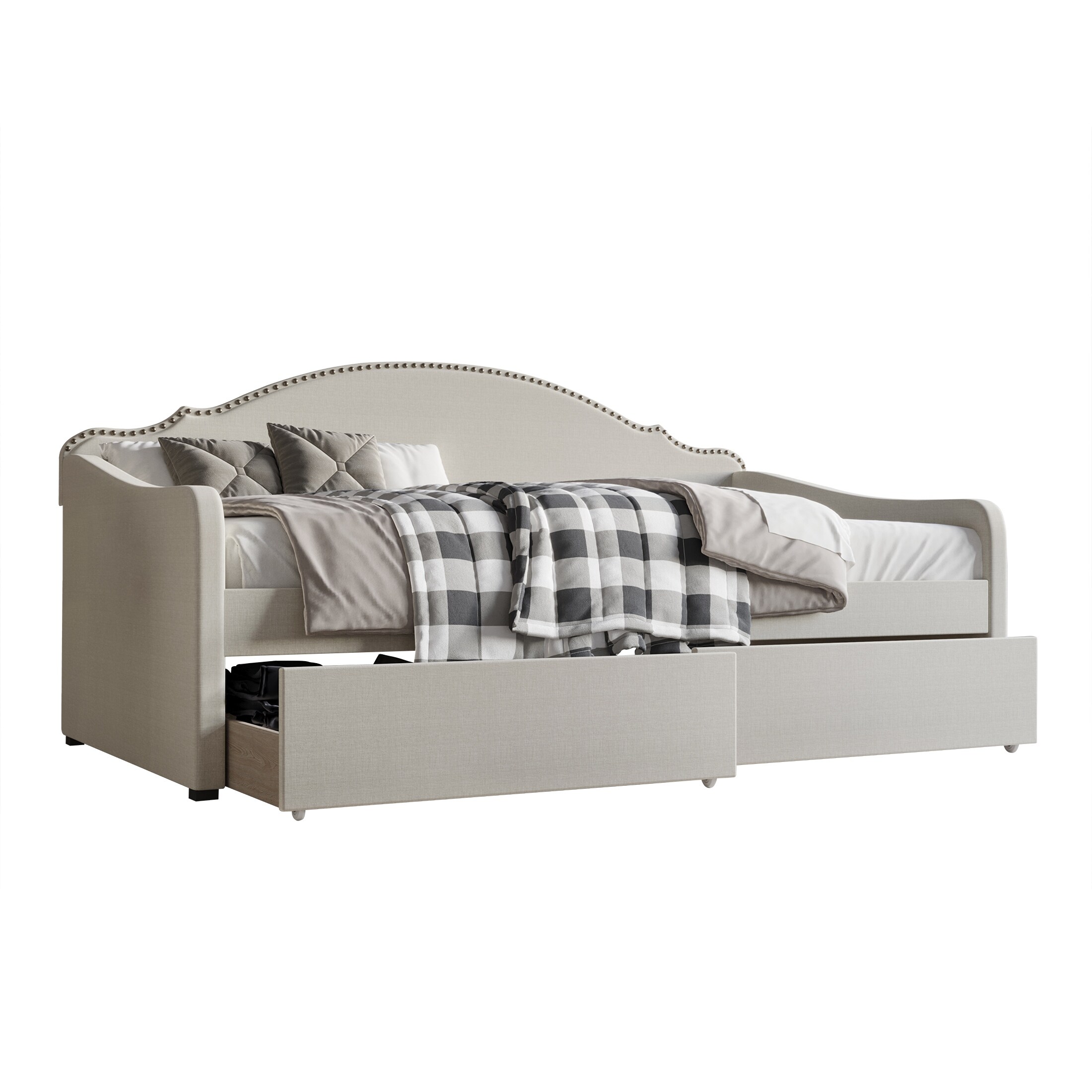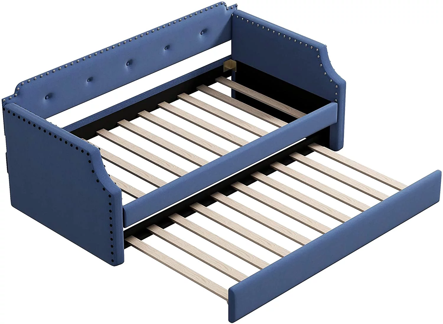 Daybed with Trundle Upholstered Tufted Sofa Bed,with Button and Copper Nail on Arms,both Twin Size,Grey(85.5"x42"x30.5")