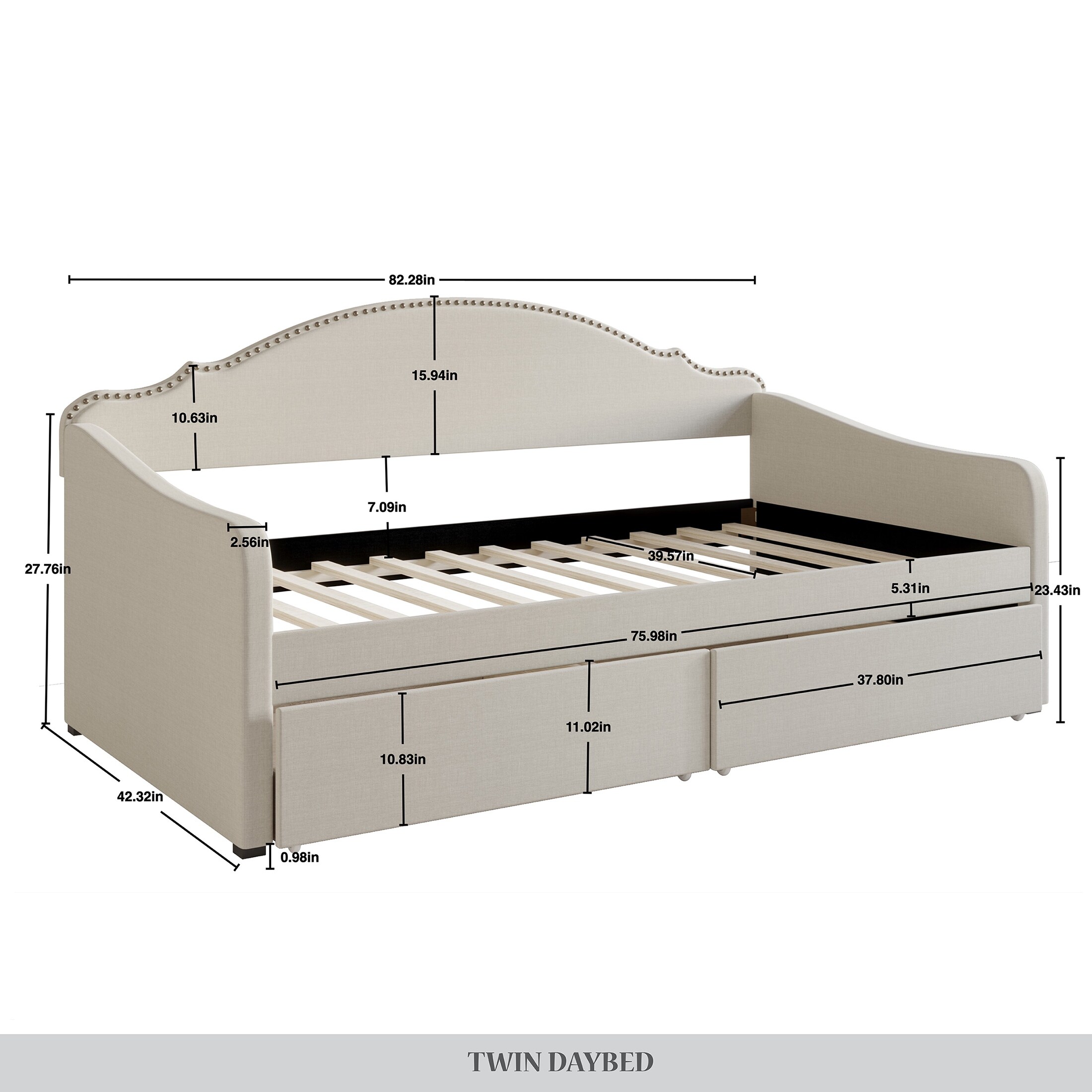 78 x 50 x 39 in. Cargo Storage Daybed & Trundle, Gunmetal - Twin Size