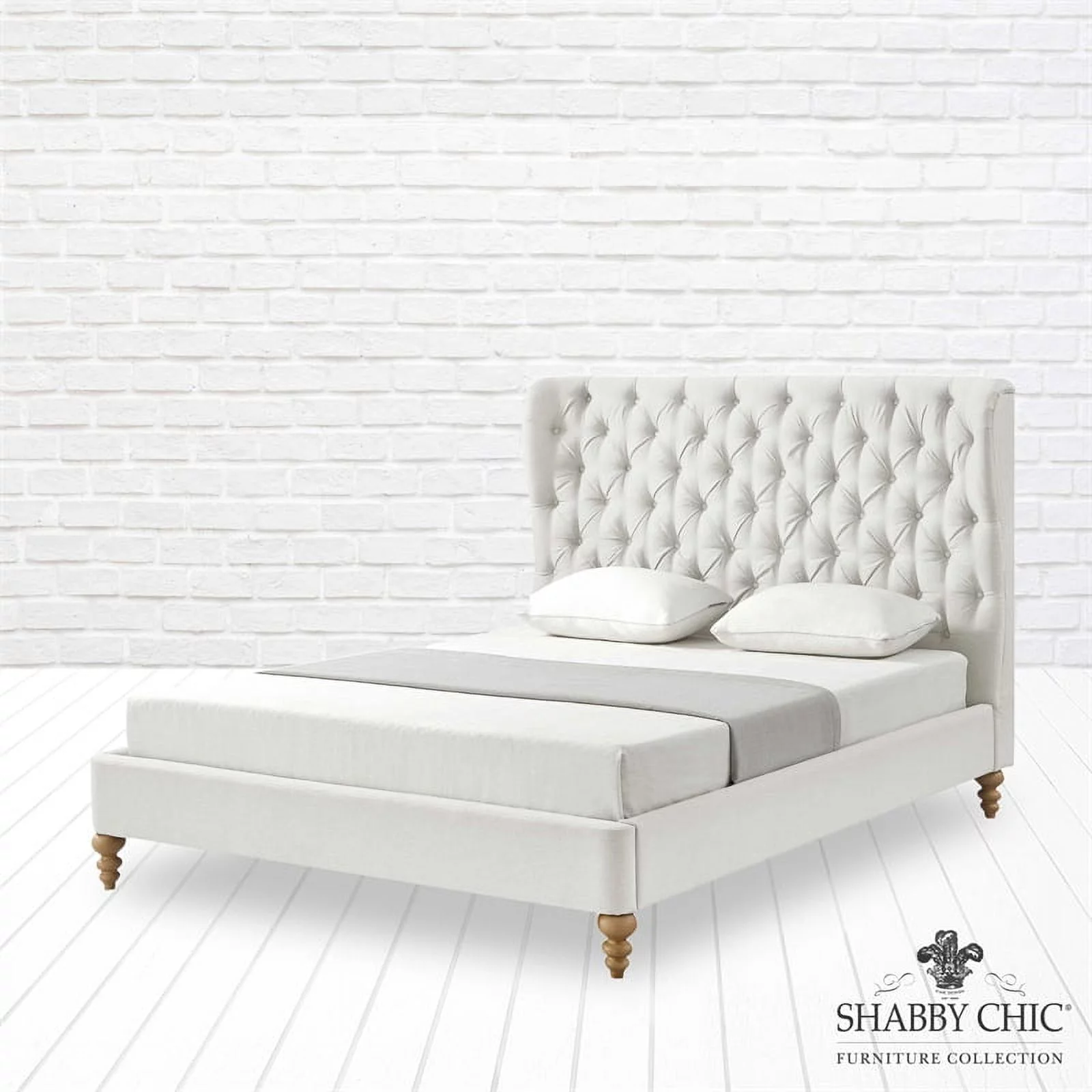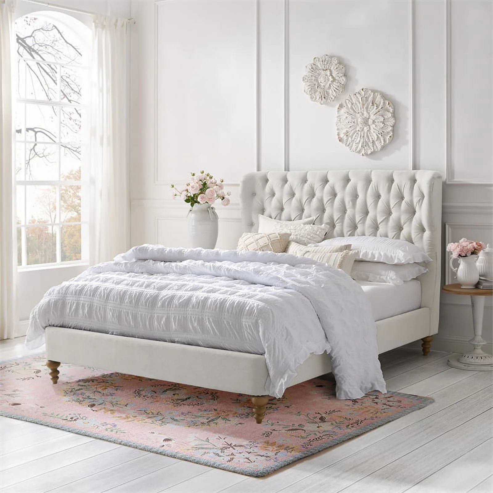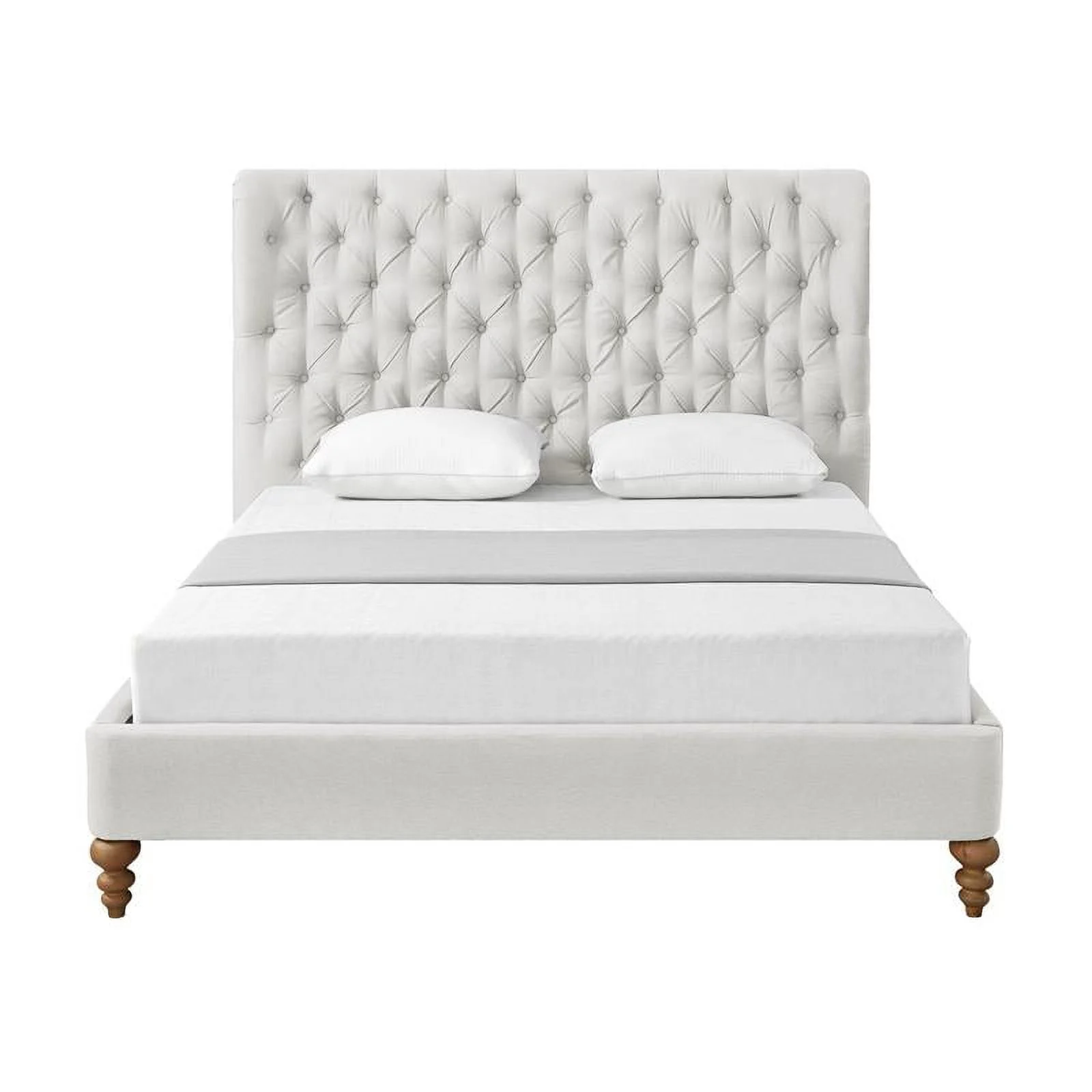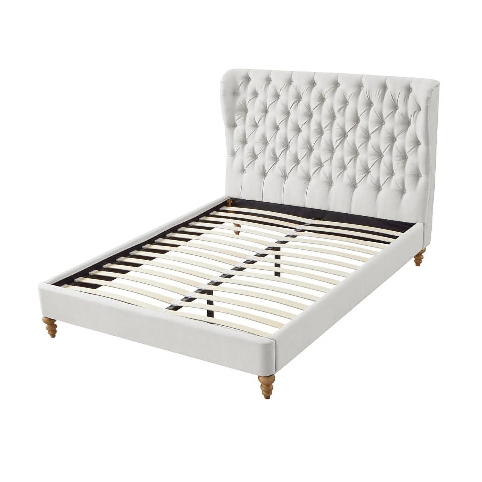 Aubriana Bed Cream White Linen Twin Button Tufted Headboard Wingback