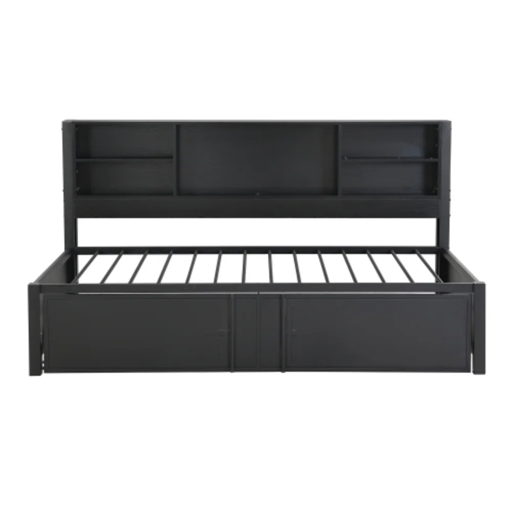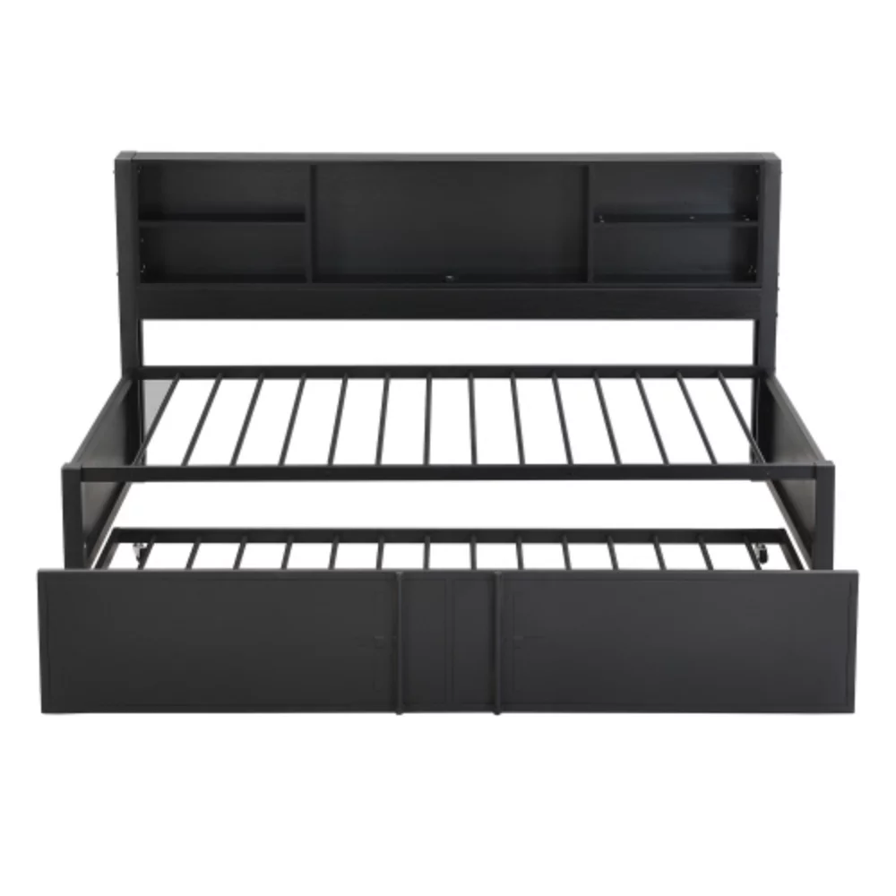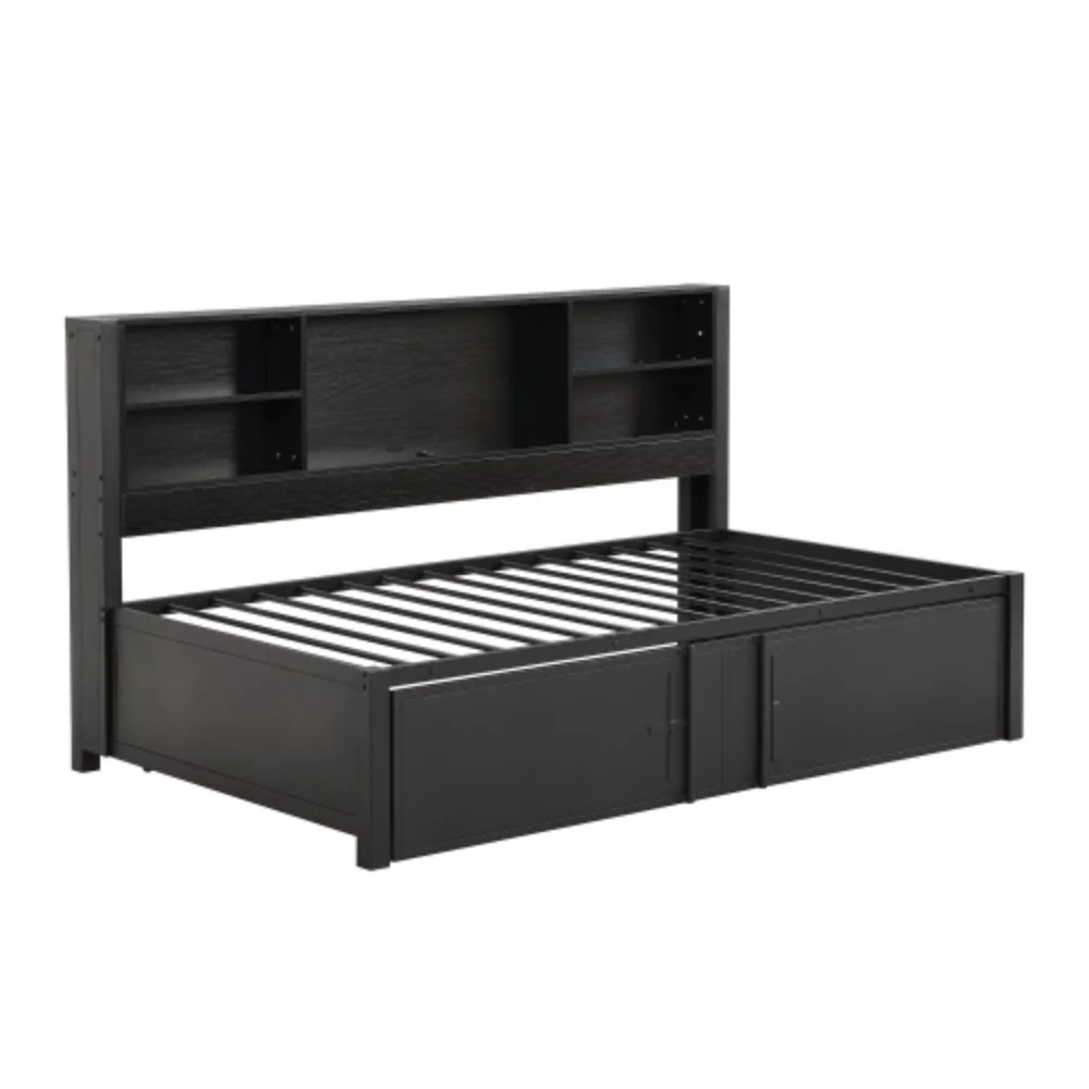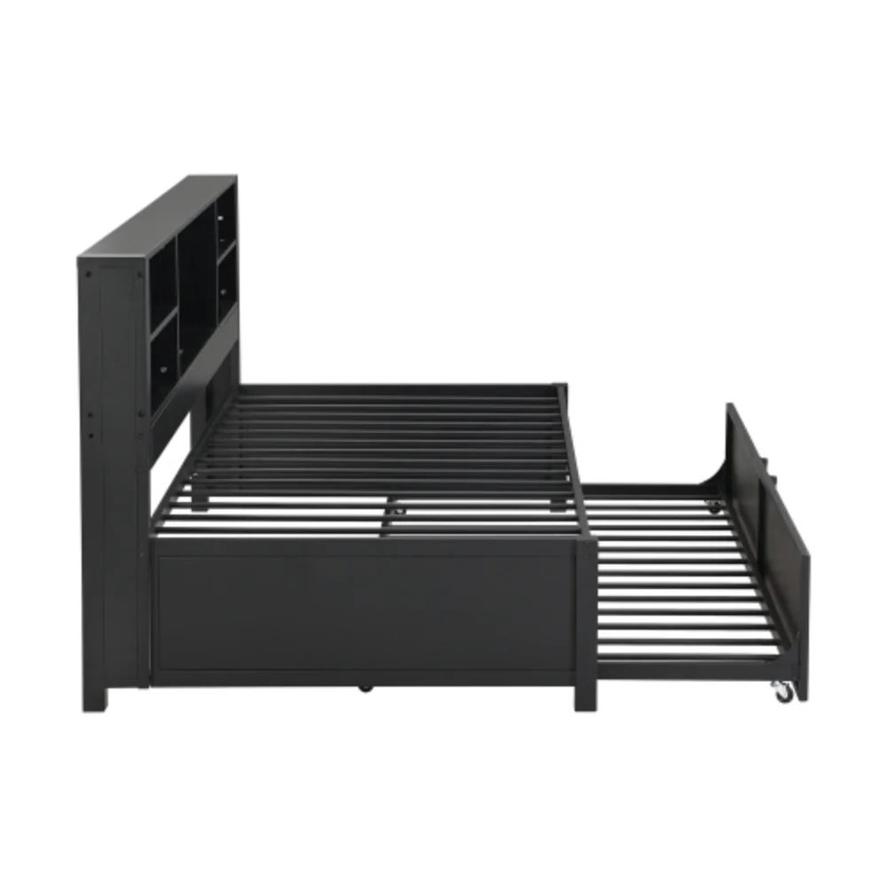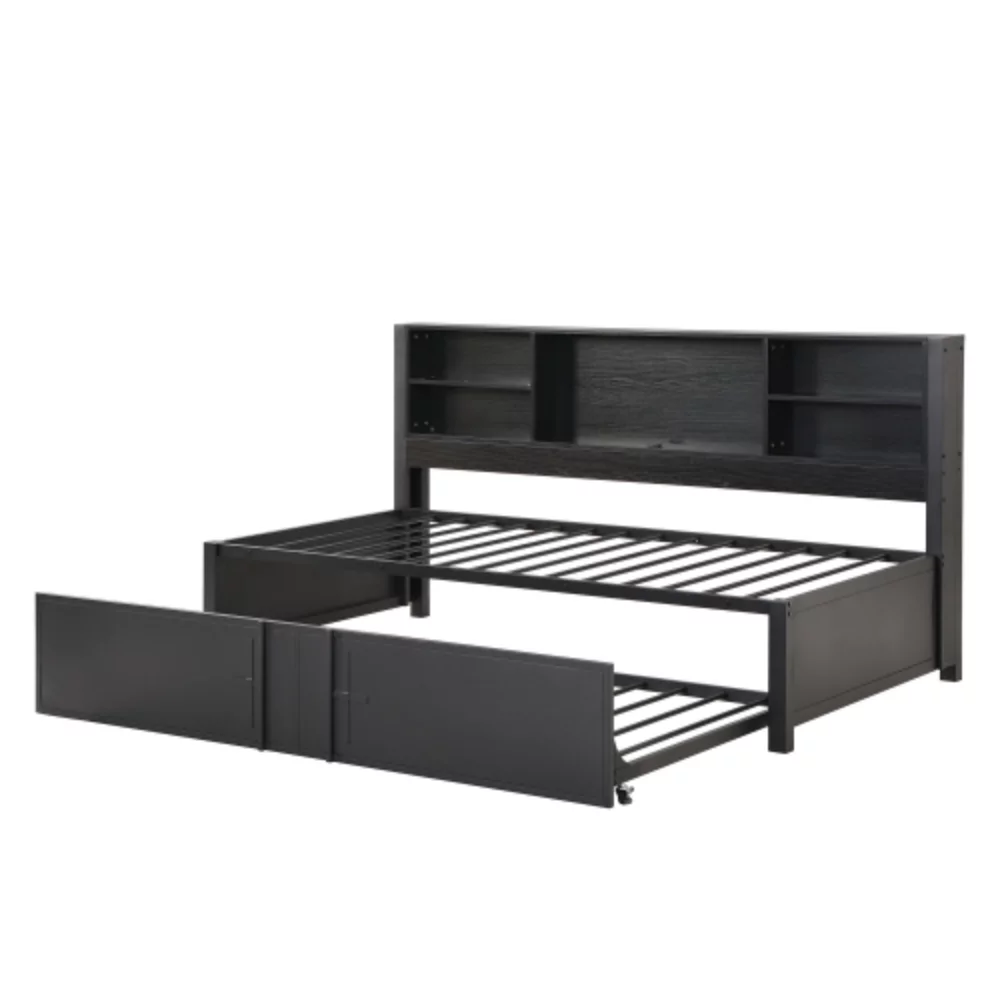 Twin Size Daybed with Twin Size Trundle, Storage Shelves and USB Ports, Black